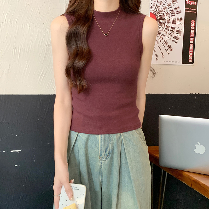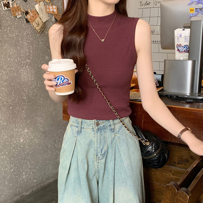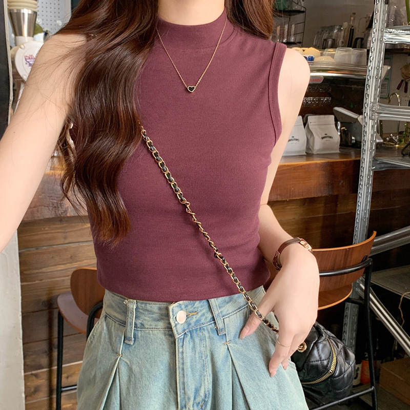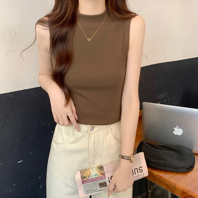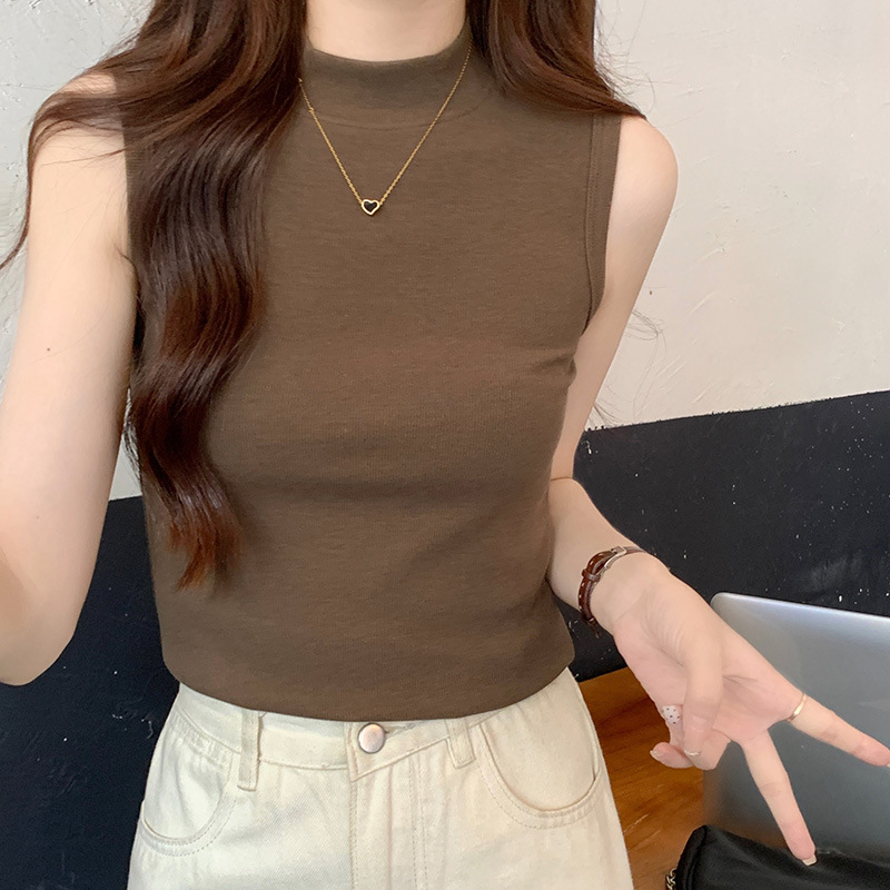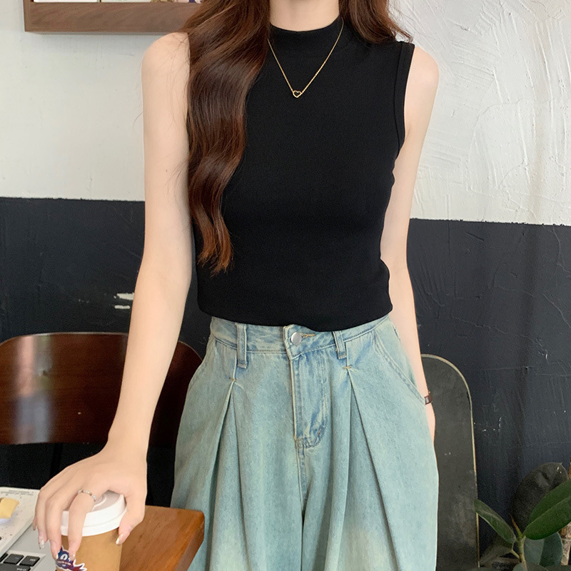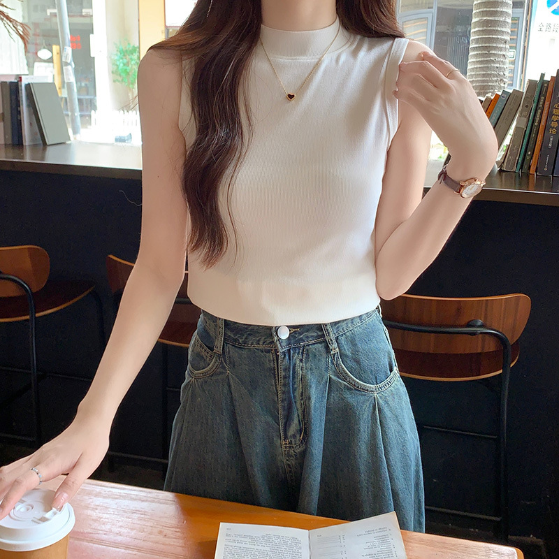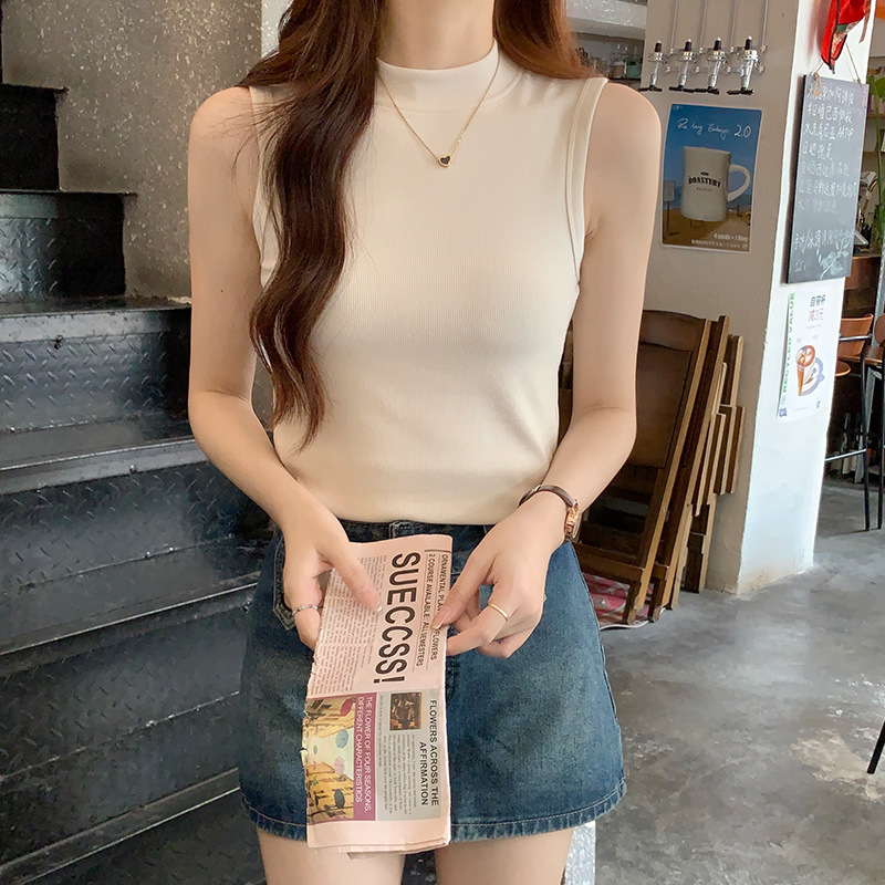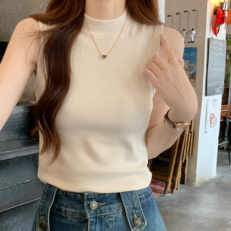JMA-160 实拍半高领白色吊带背心女2023初秋内搭修身显瘦无袖坎肩独特上衣