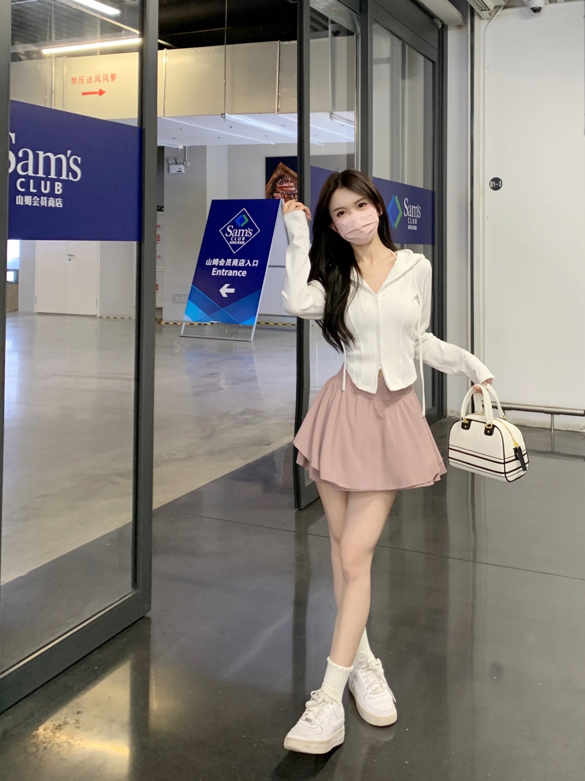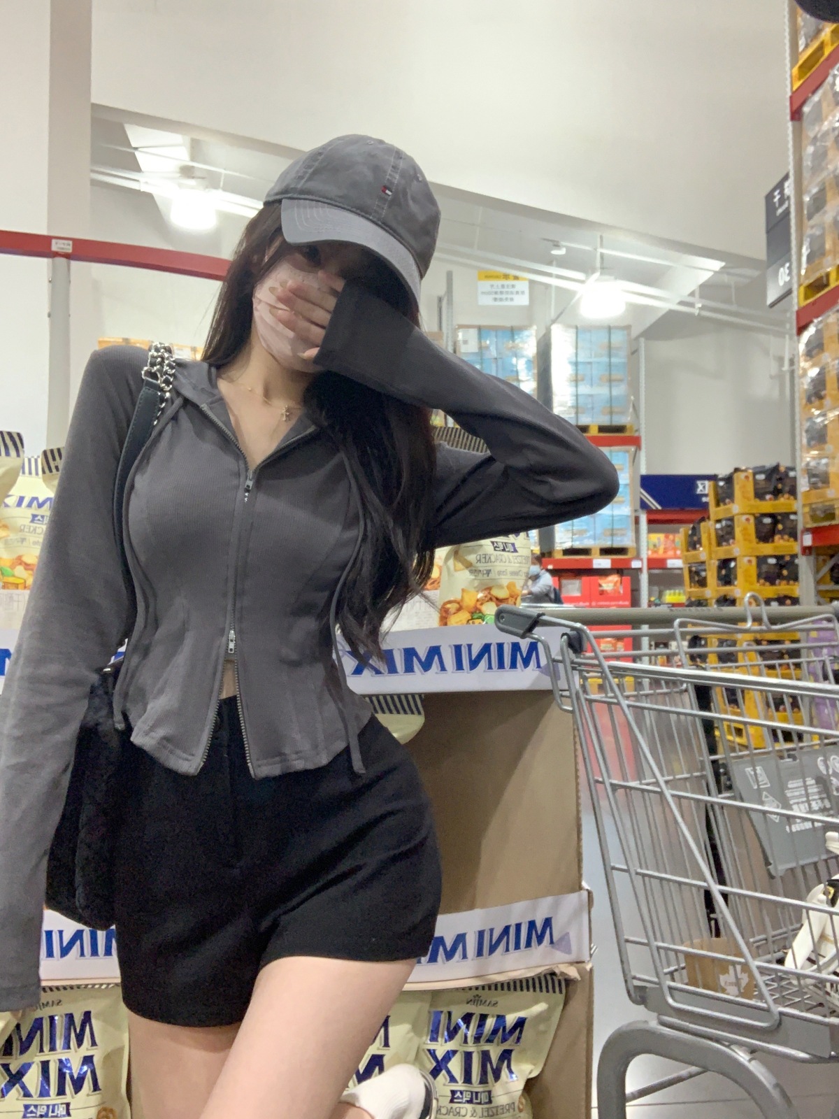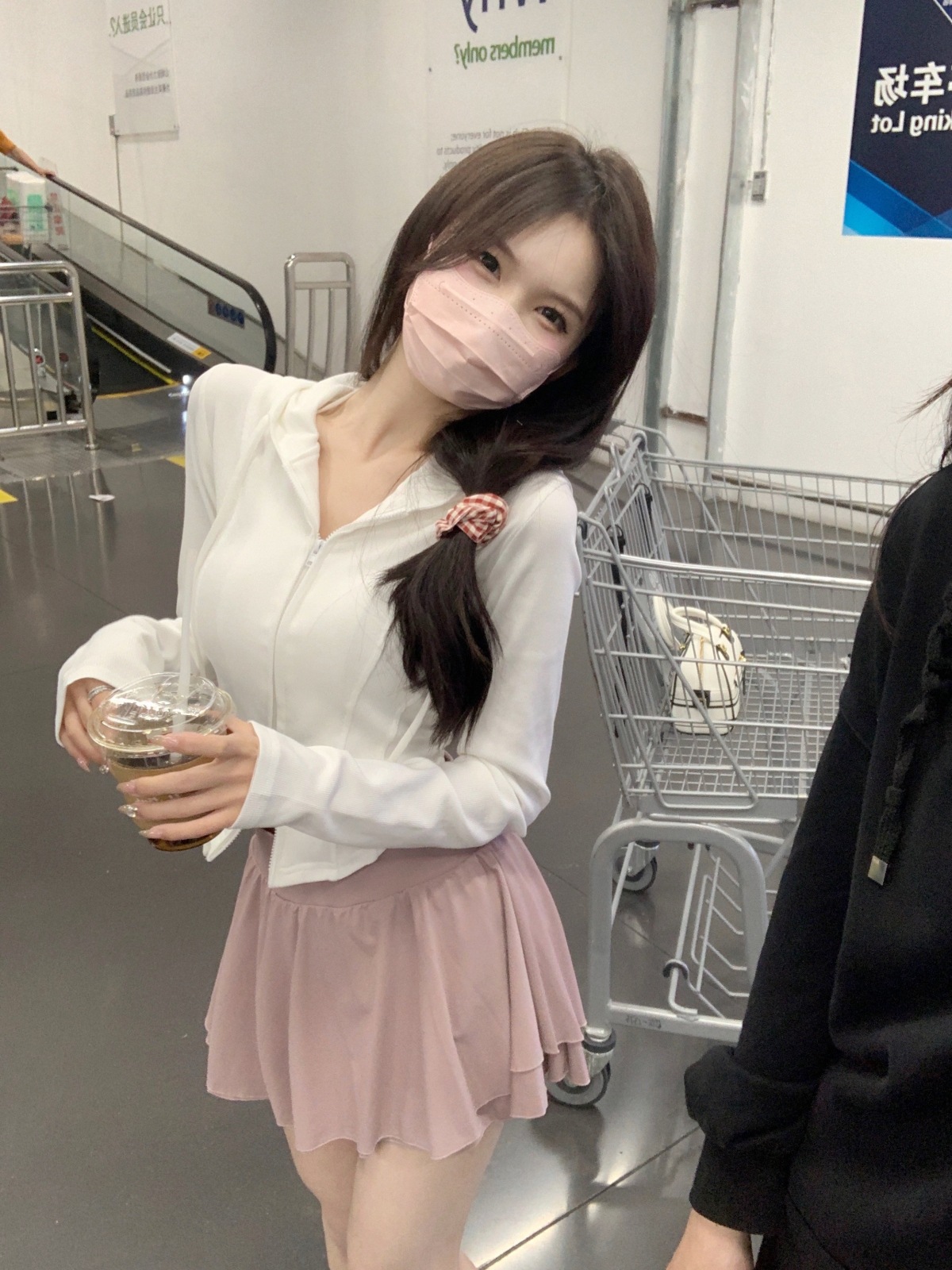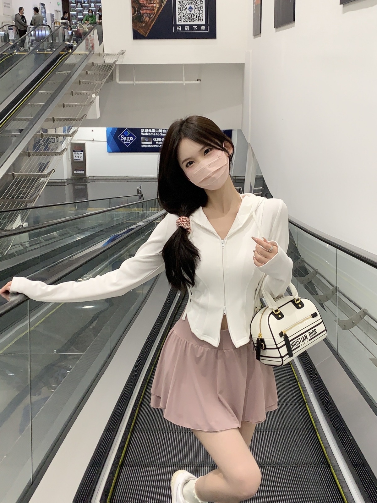 JMA-167 实拍 秋韩版修身鱼骨连帽双拉链设计感甜辣风长袖开衫T恤上衣外套