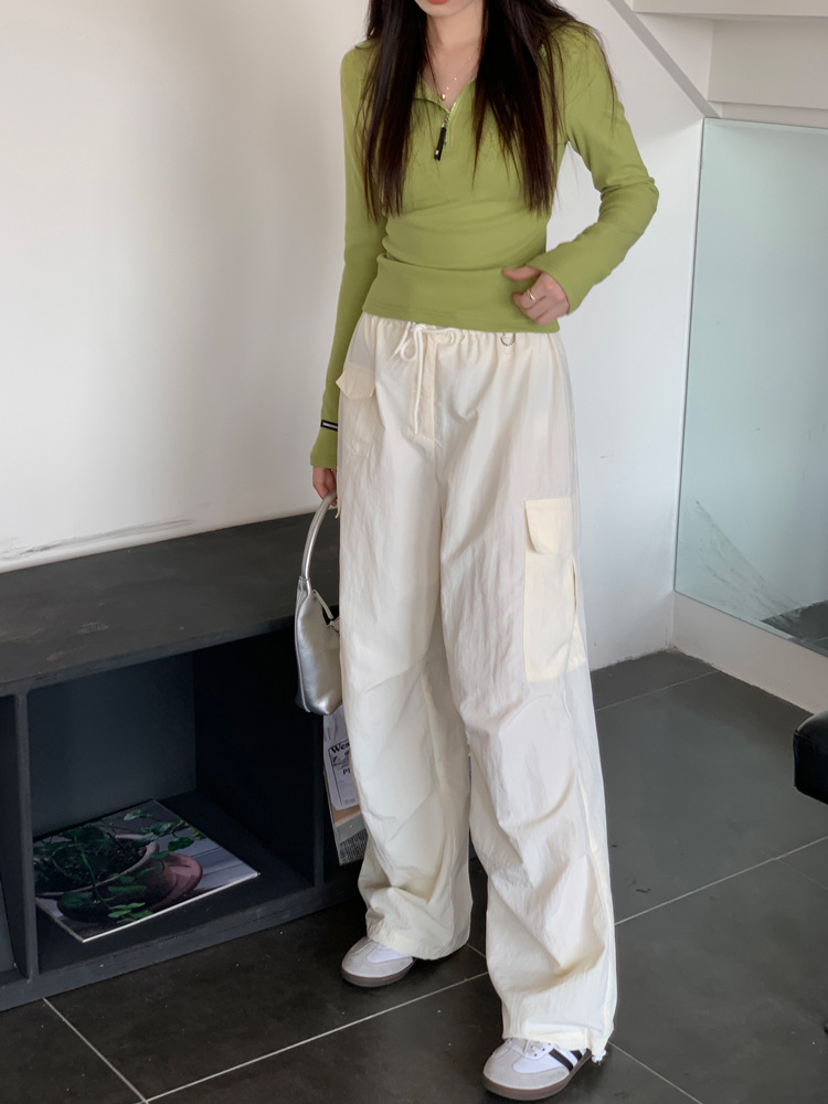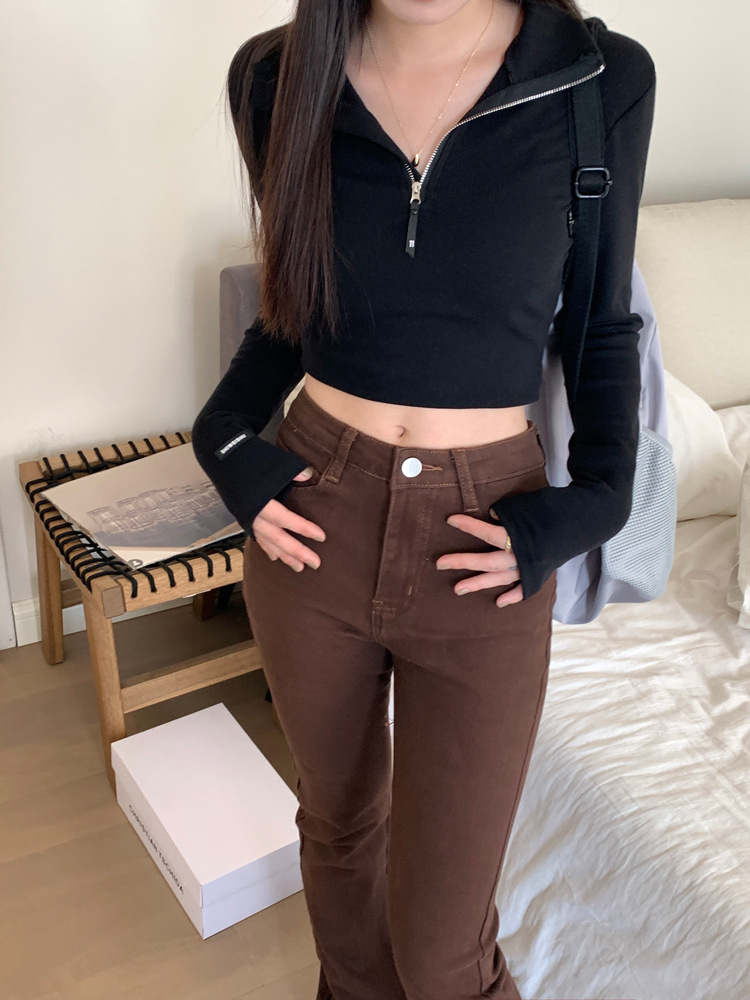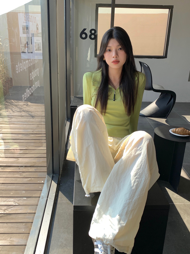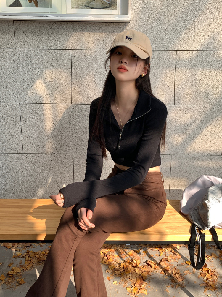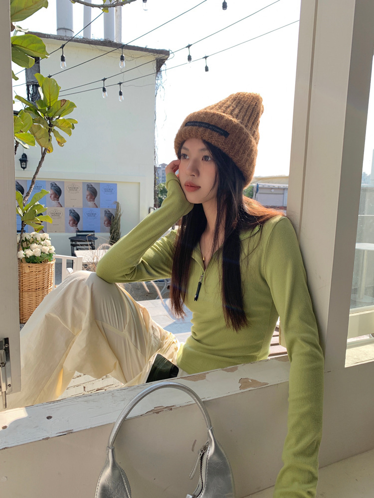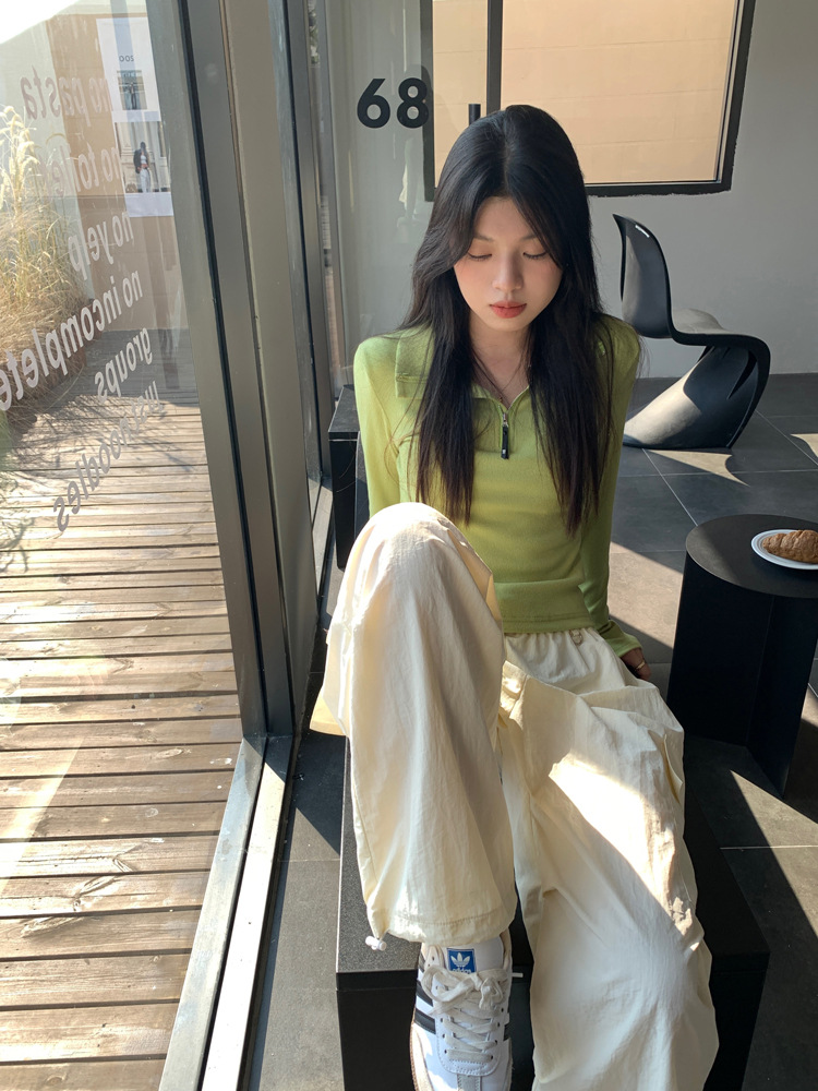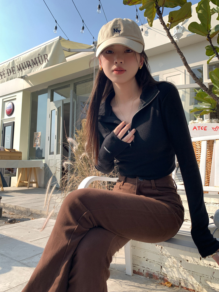 JMA-172 实拍 美式立领长袖T恤女2023秋季新款韩版气质修身长袖打底衫上衣