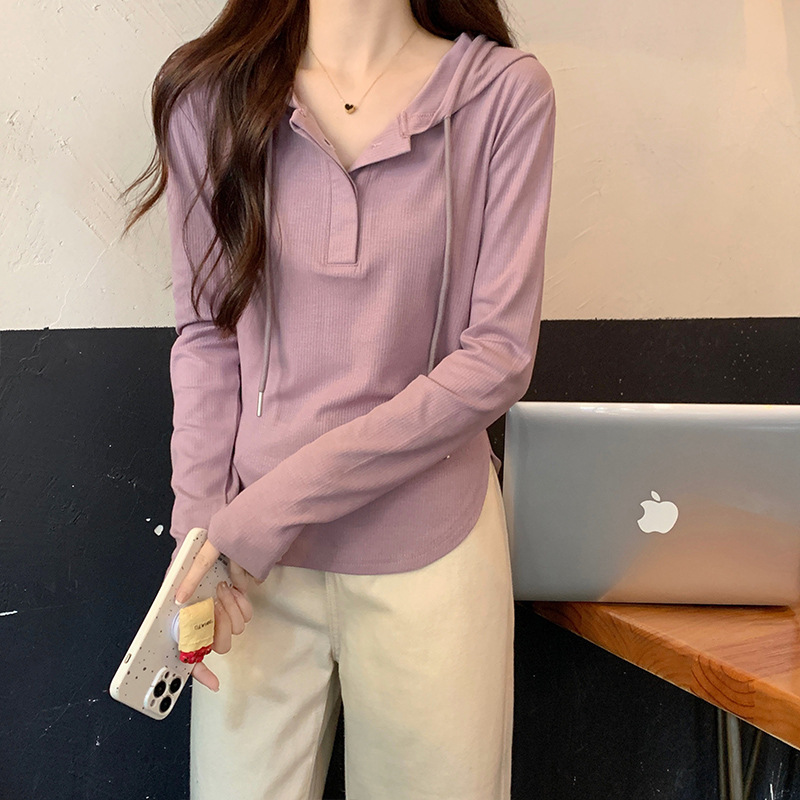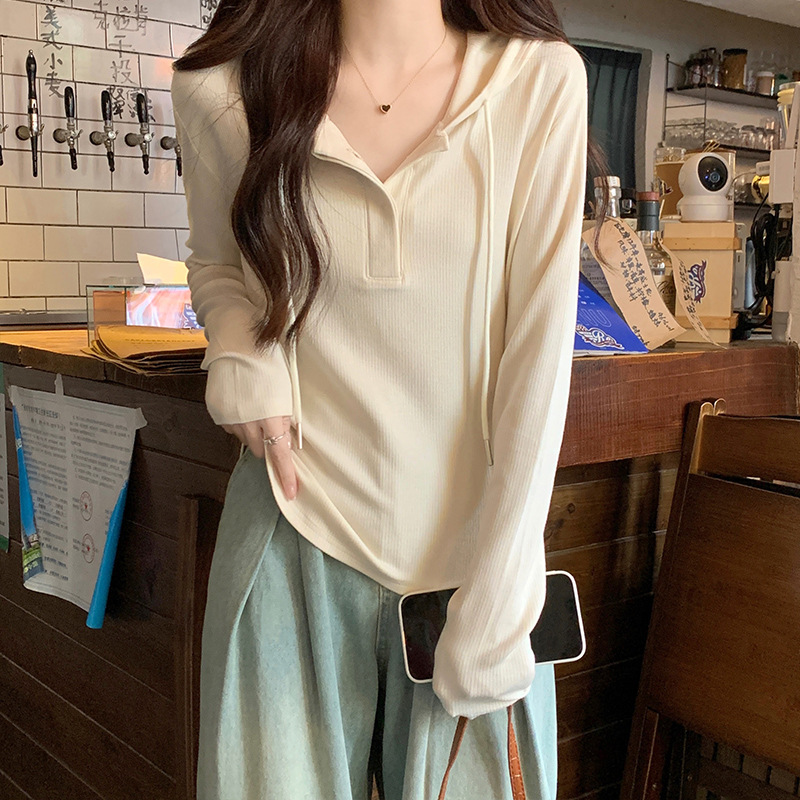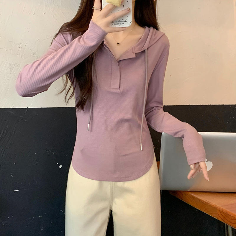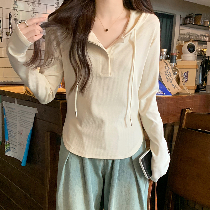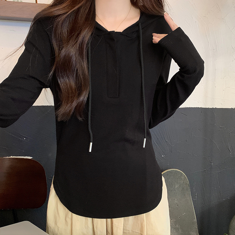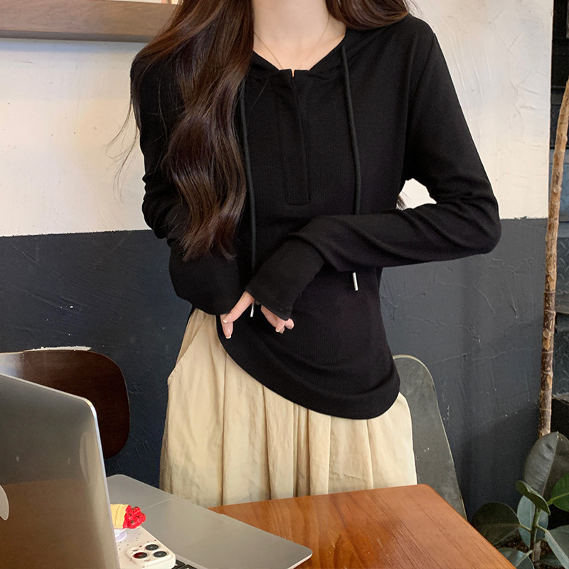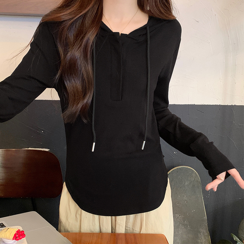 JMA-178 实拍 设计感连帽长袖t恤女2023秋季半开领修身短款正肩外套上衣潮