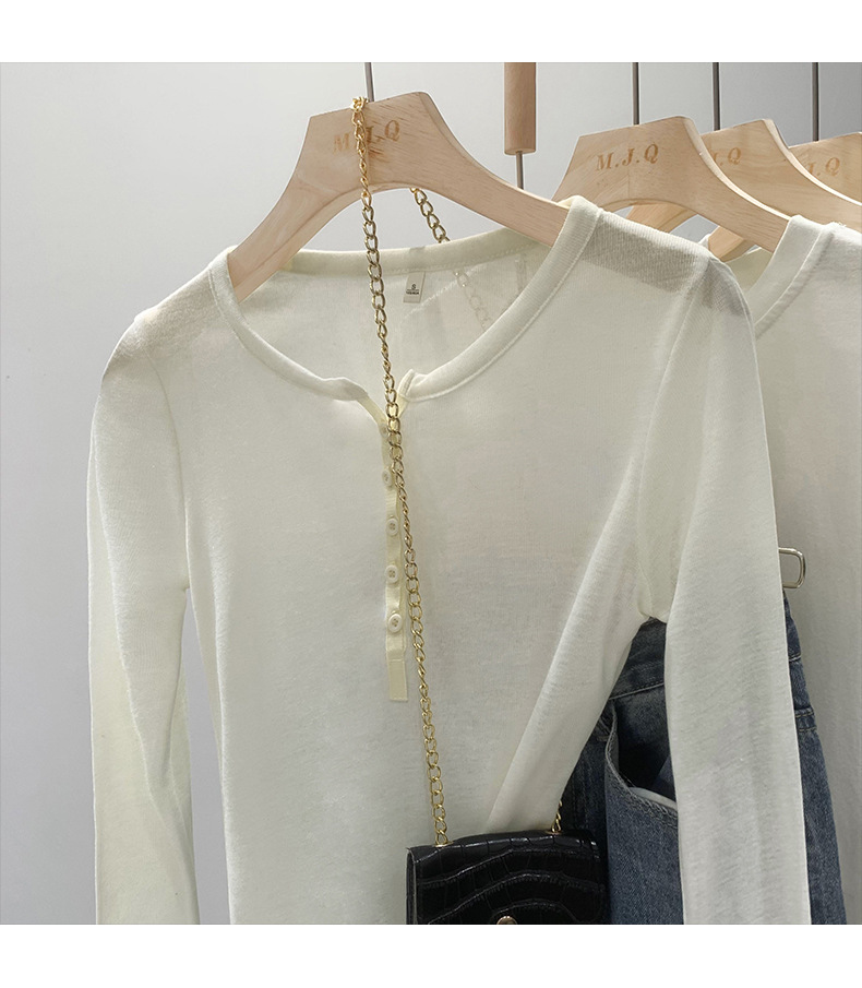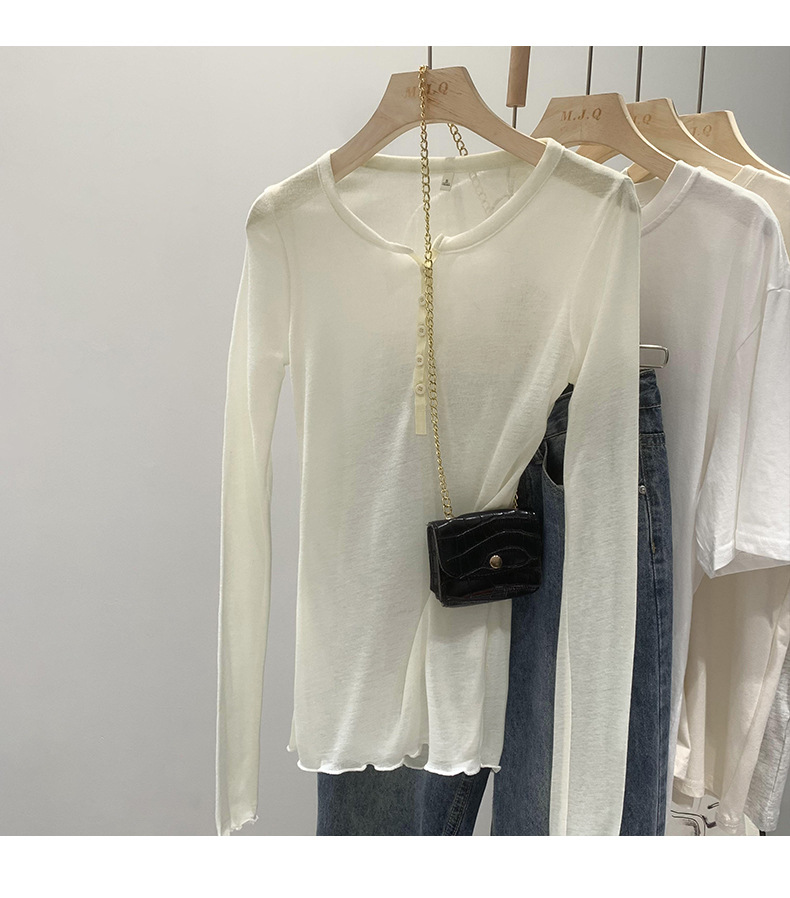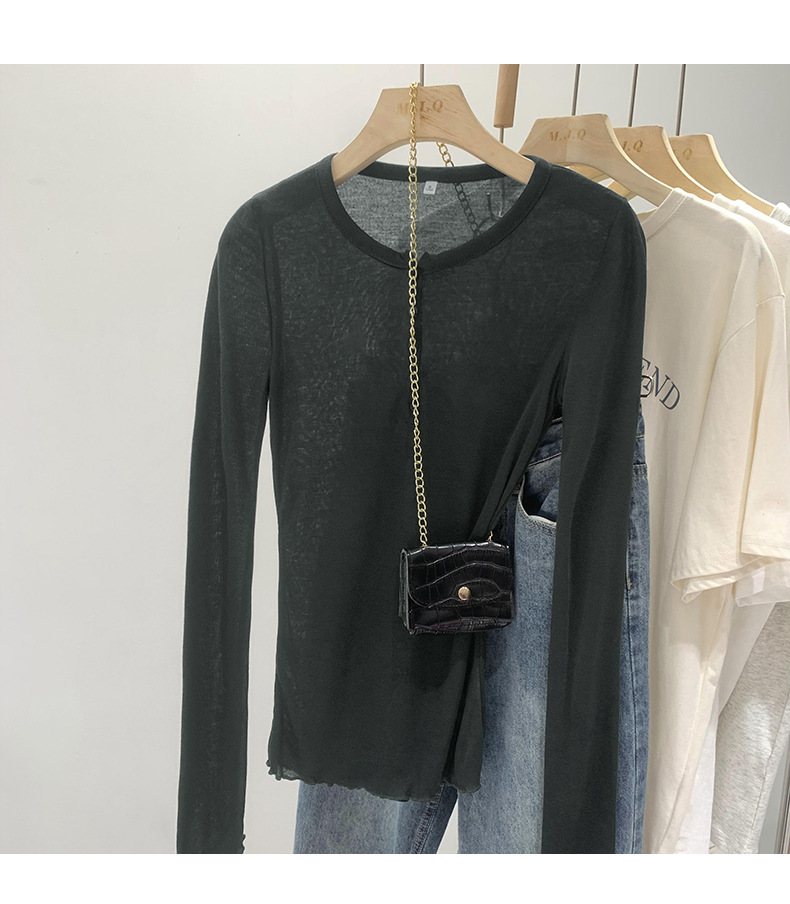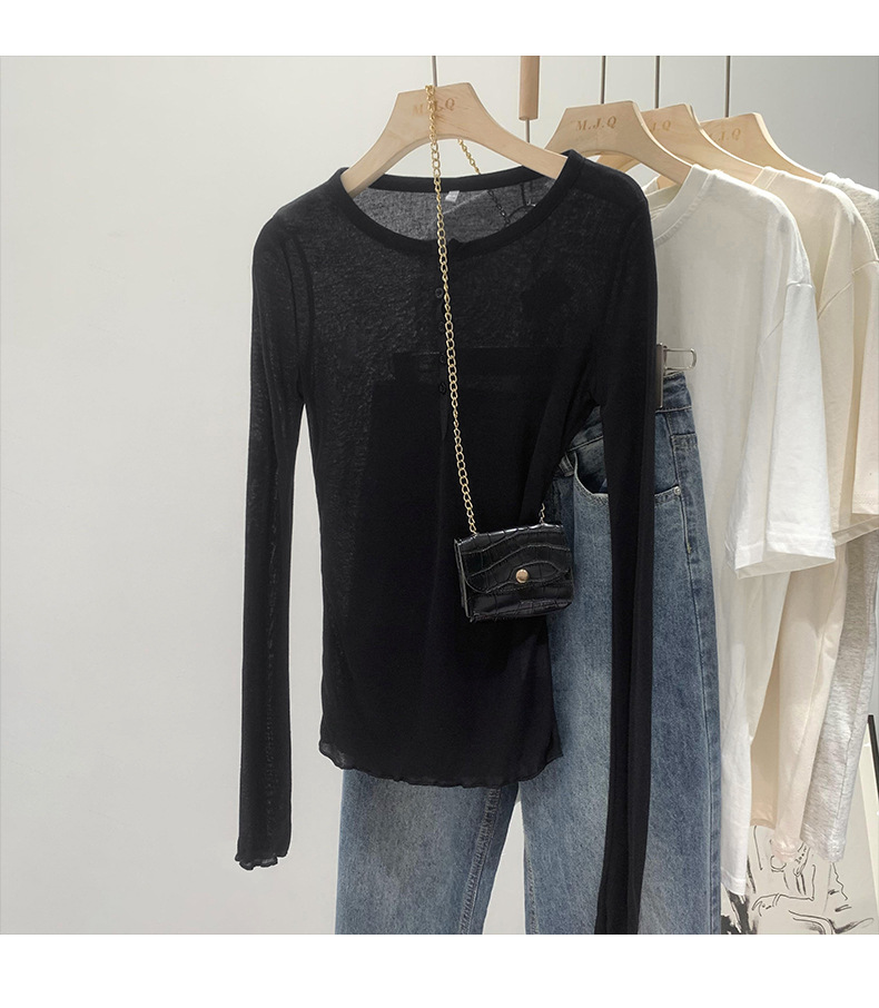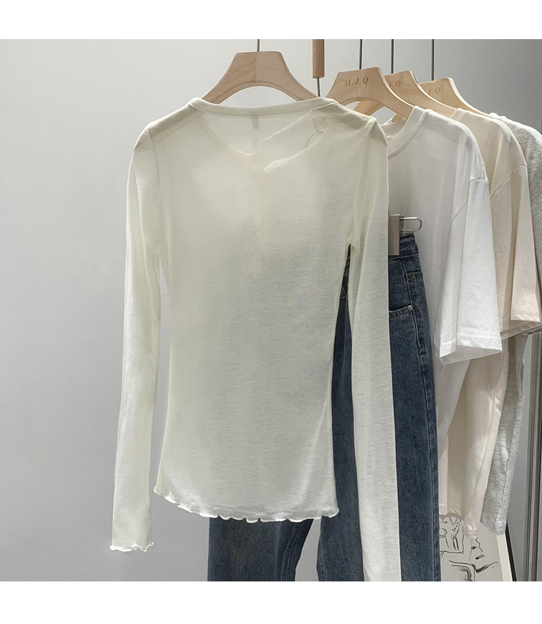 JMA-187 实拍 微透超薄纯欲打底长袖T恤女2023秋季新款罩衫简约百搭上衣潮