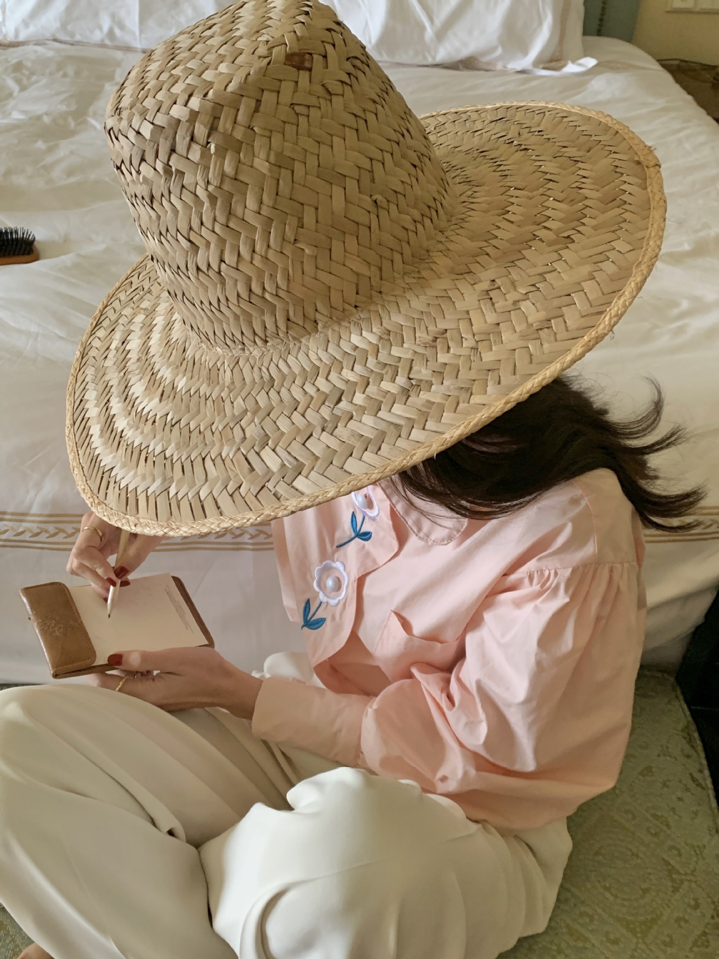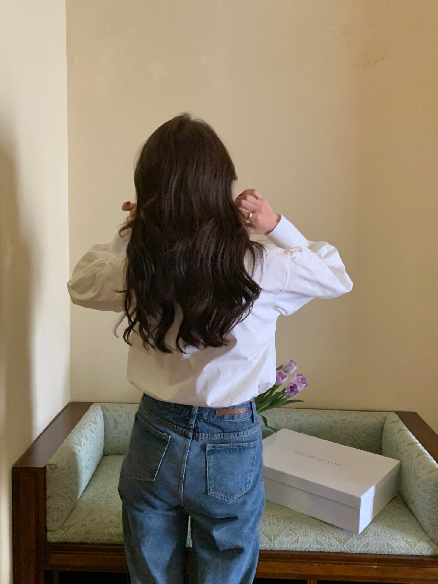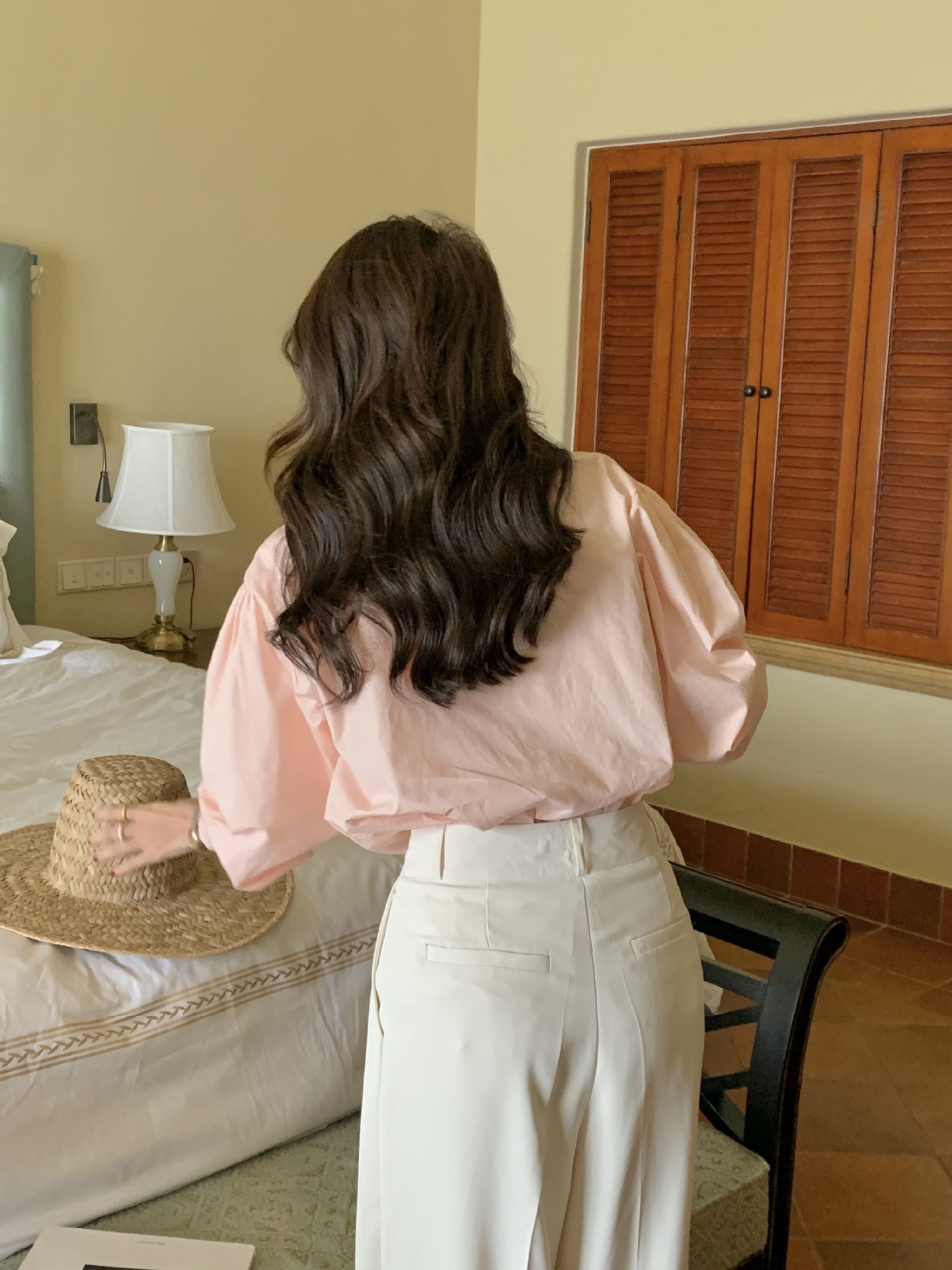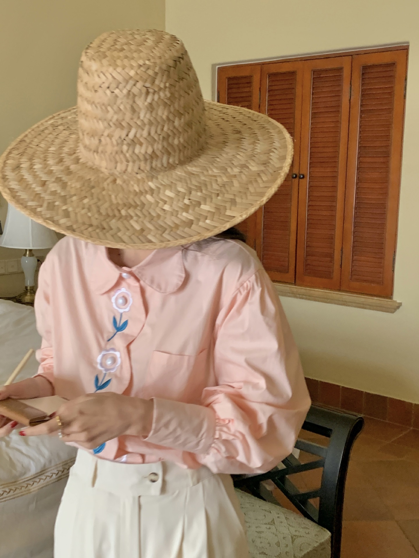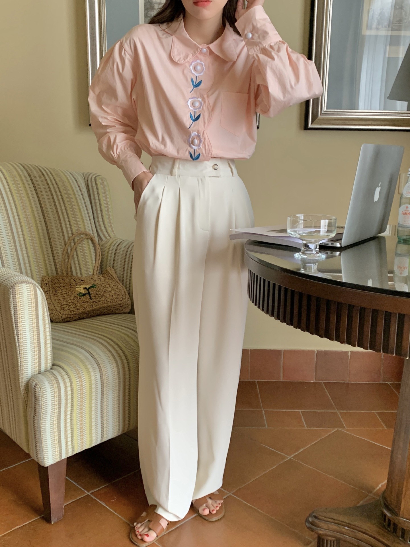 JMA-190 实拍2023秋季韩系甜美减龄刺绣重工小众口袋珍珠扣波浪领宽松衬衫
