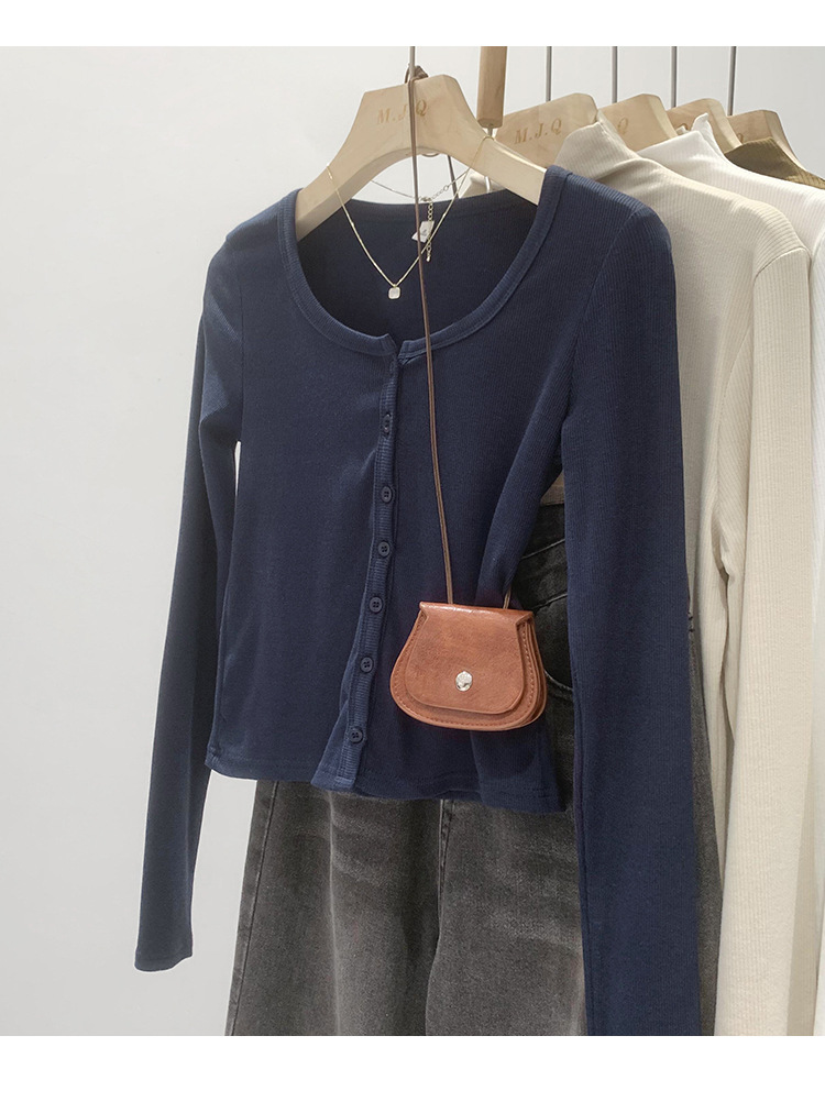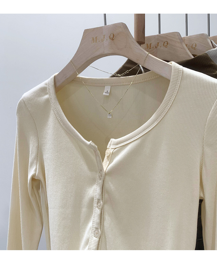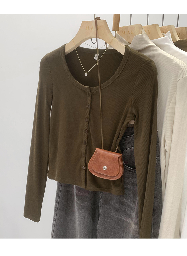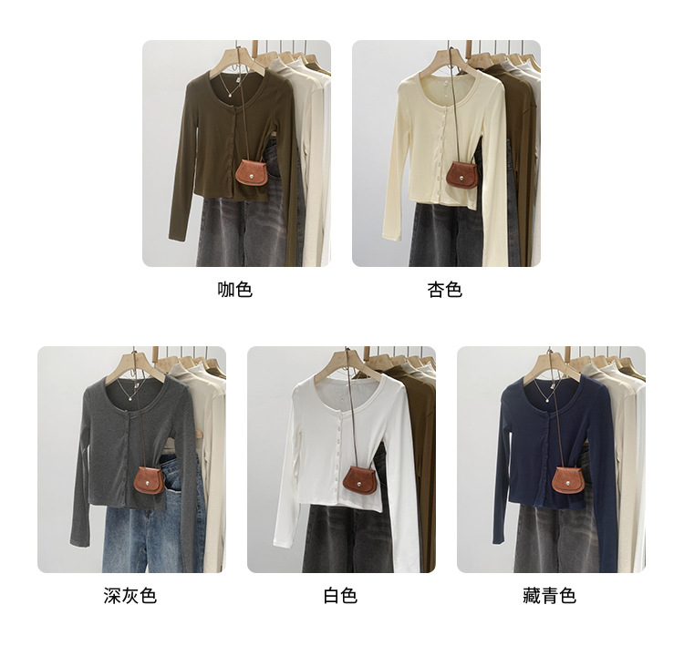 JMA-199 实拍图短款正肩长袖T恤女秋季2023年新款开衫修身显瘦打底上衣