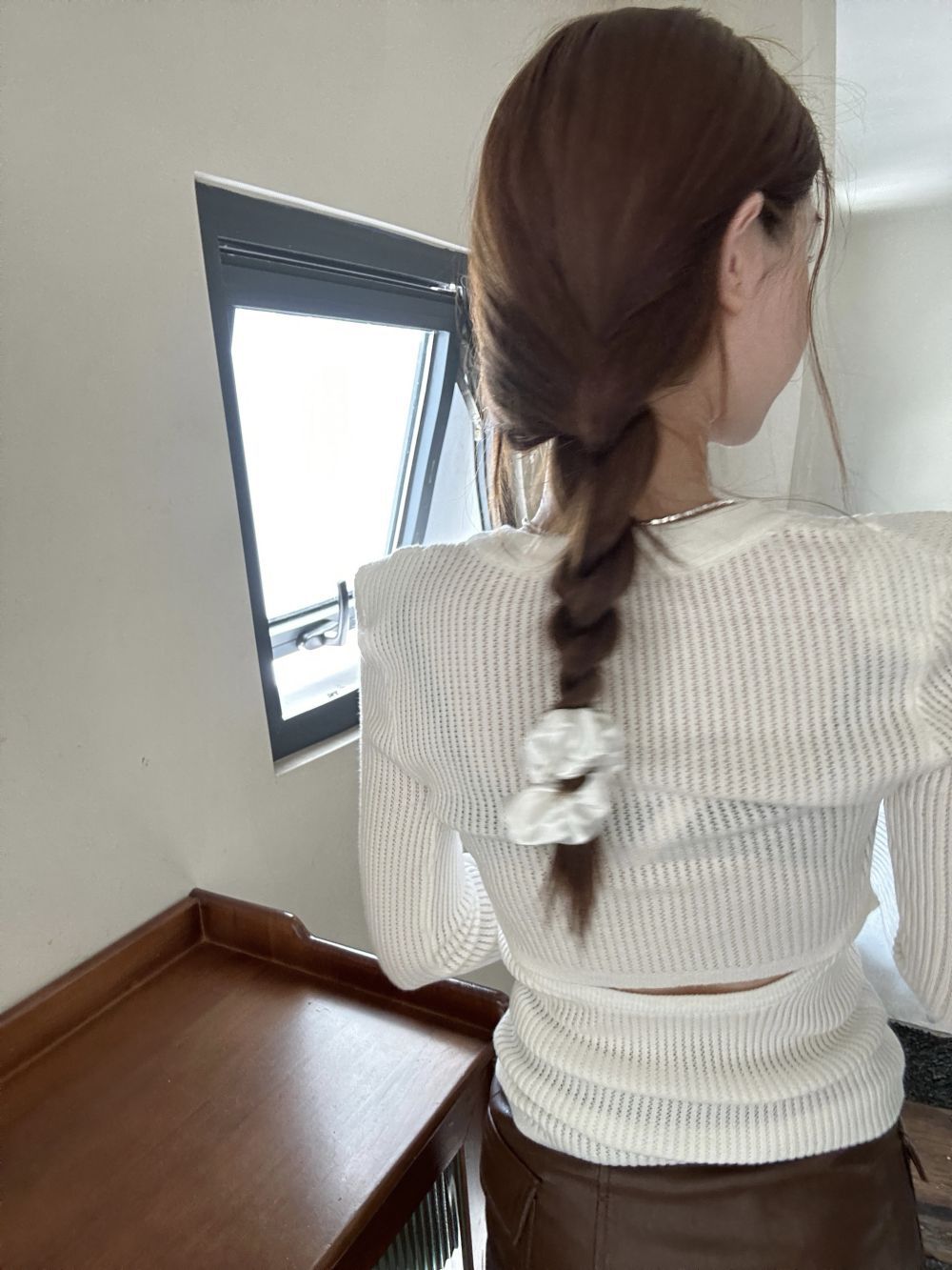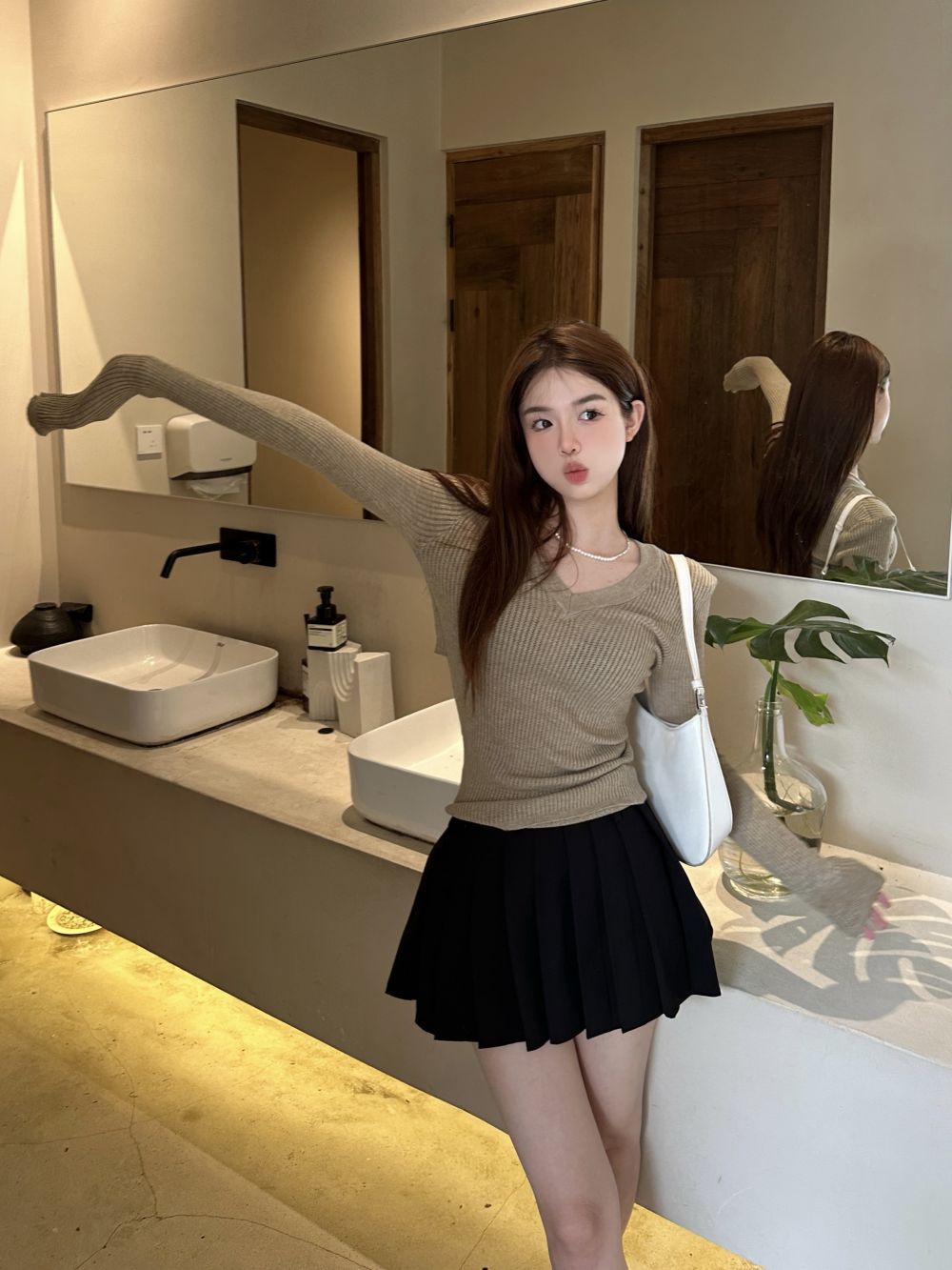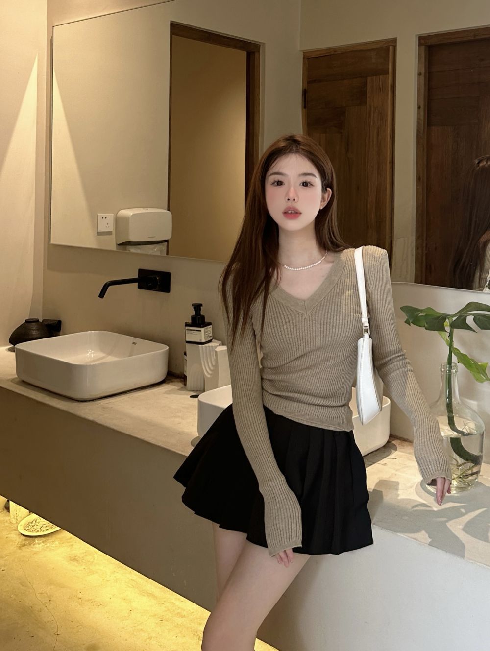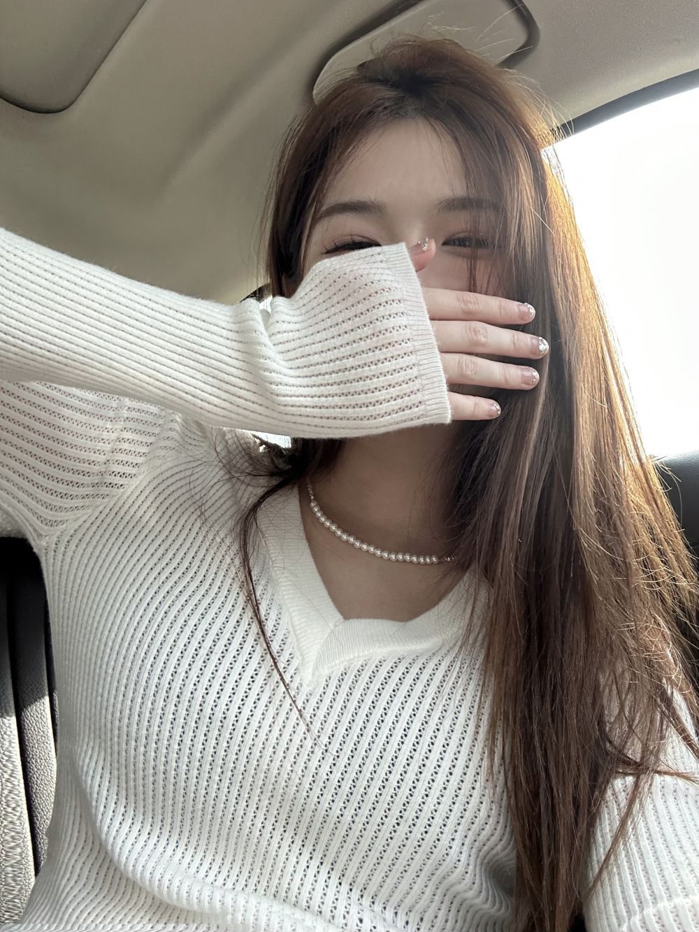 JMA-207 实拍 2023秋季新款韩版设计感背后破洞纯色V领针织衫打底衫上衣女