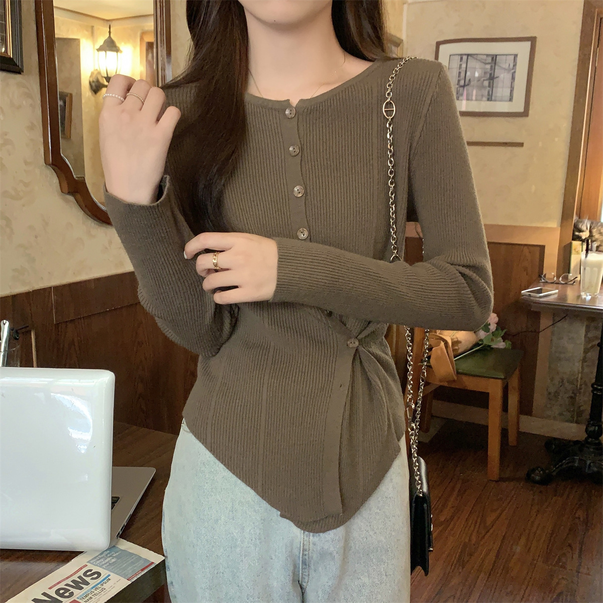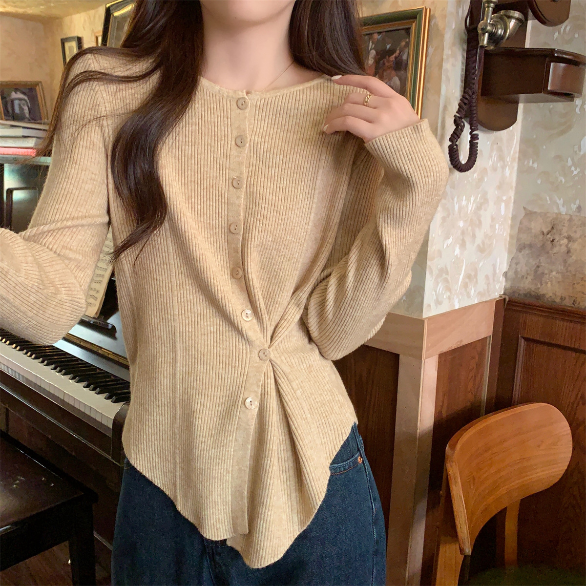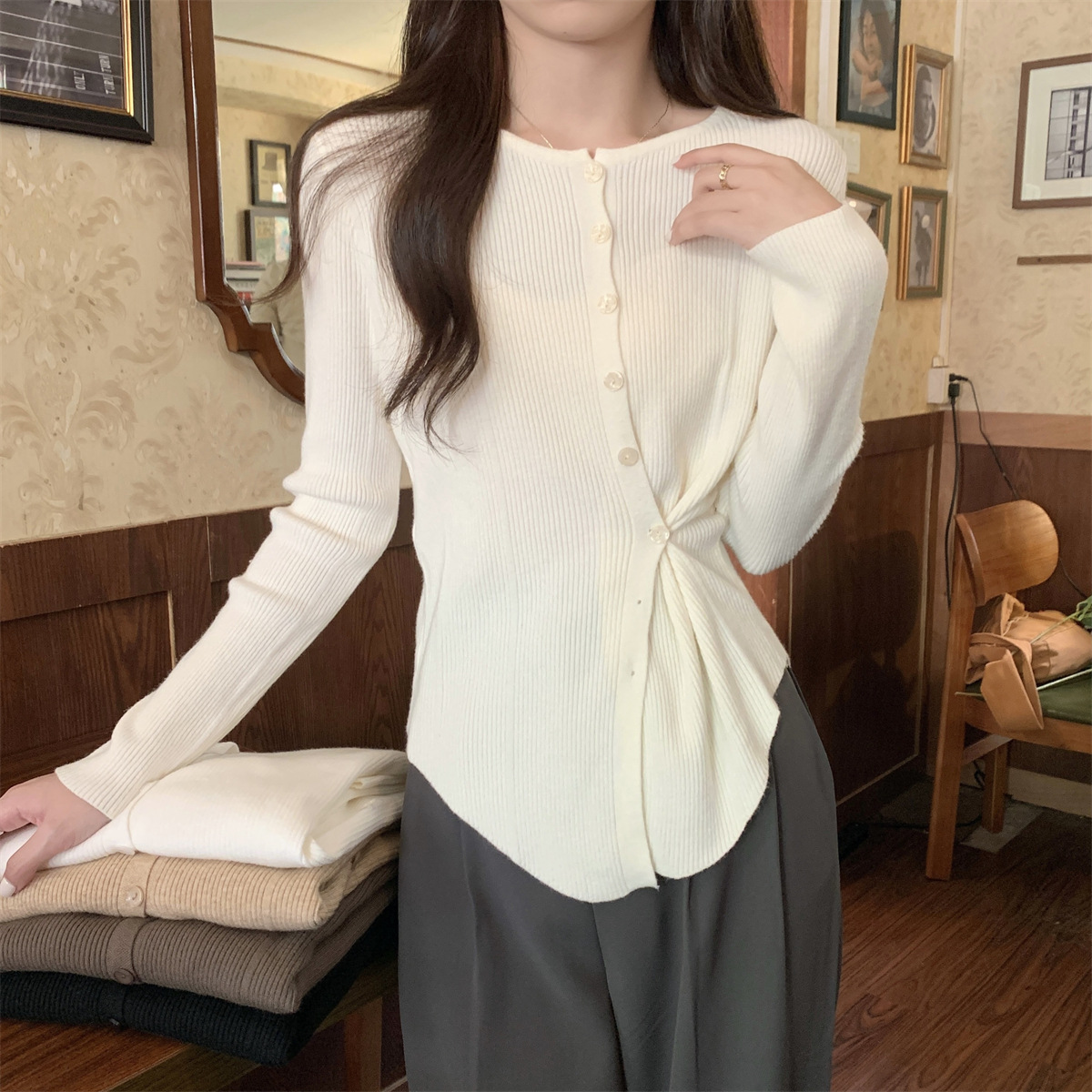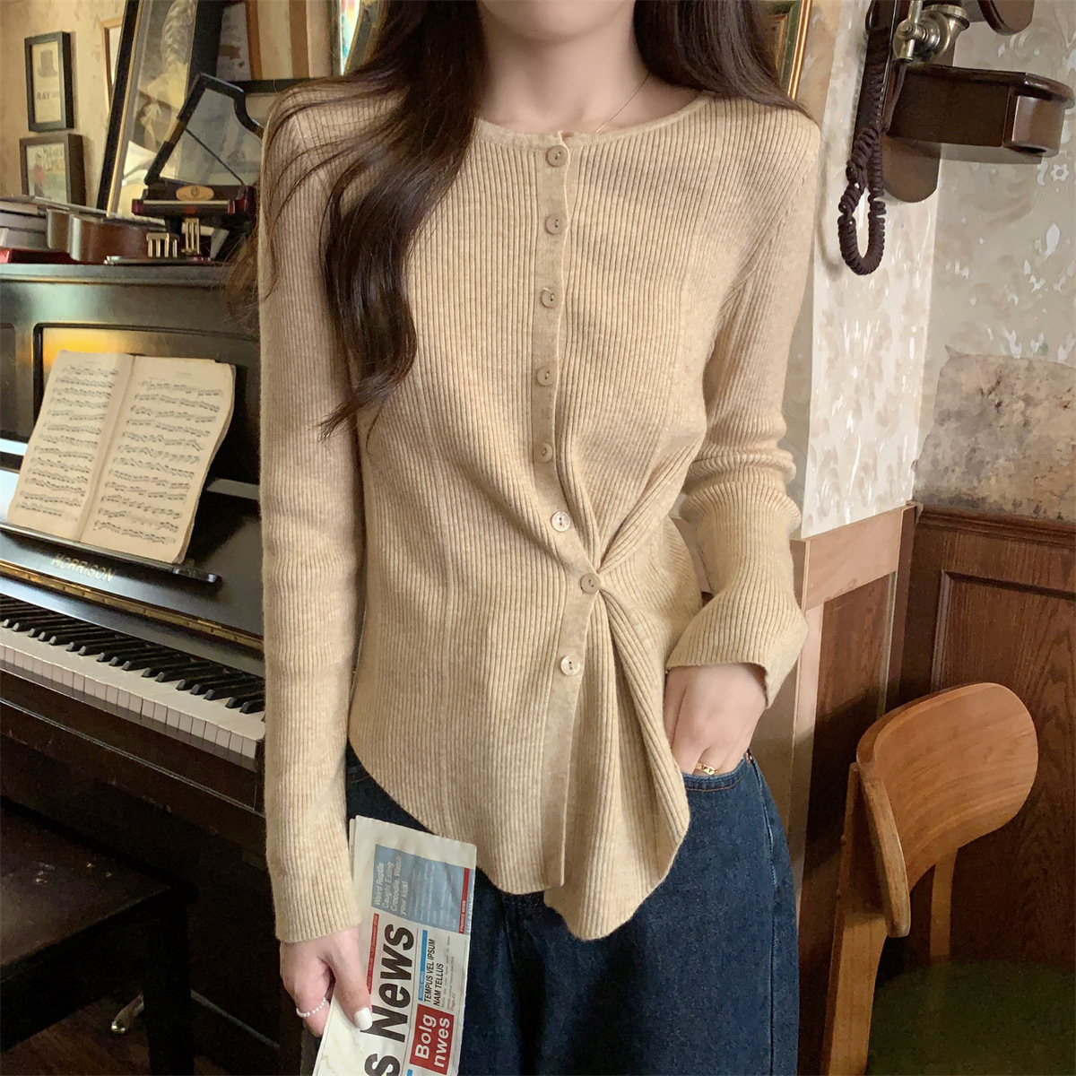 JMA-210 实拍 2023秋冬韩版收腰纯色鱼骨设计感安迪绒开衫针织毛衣女外套