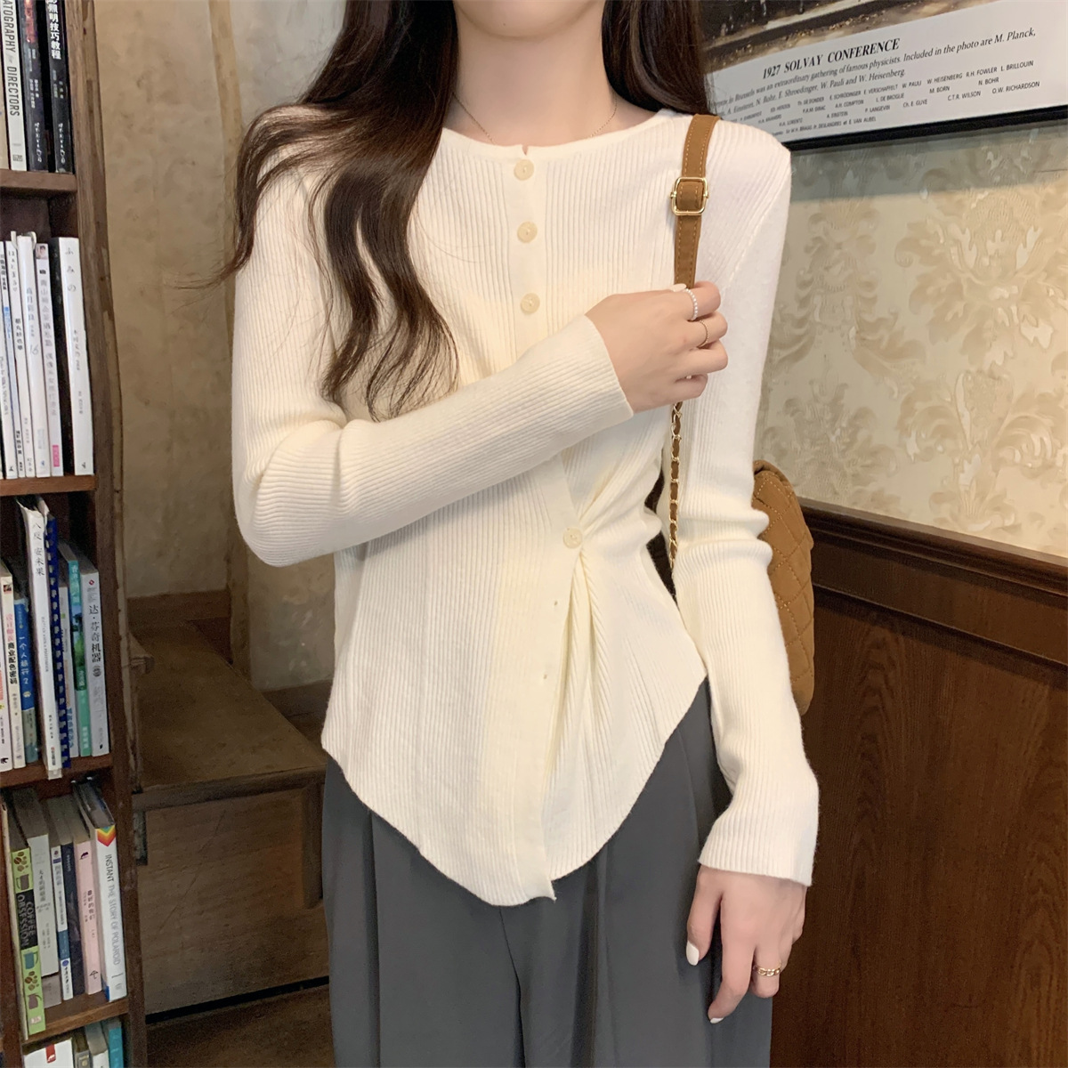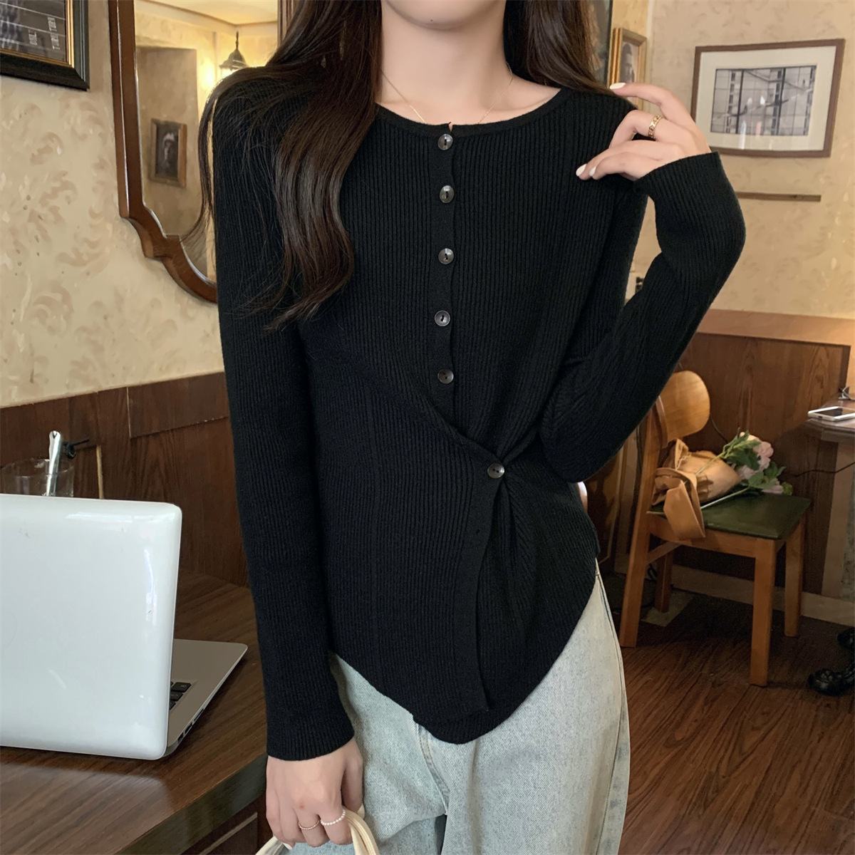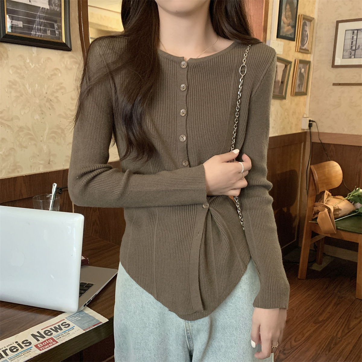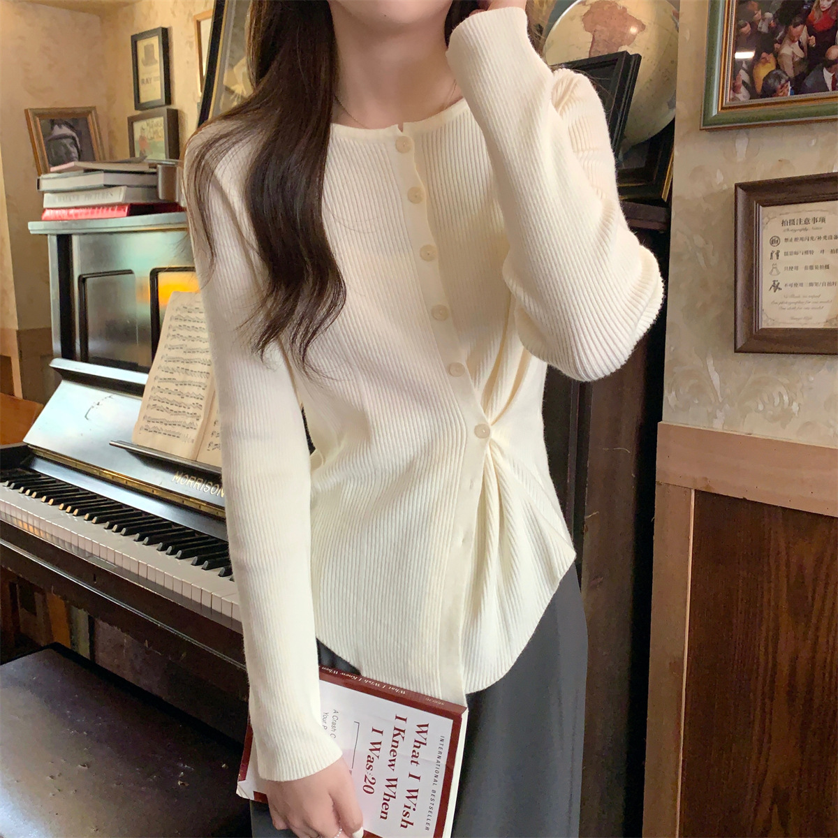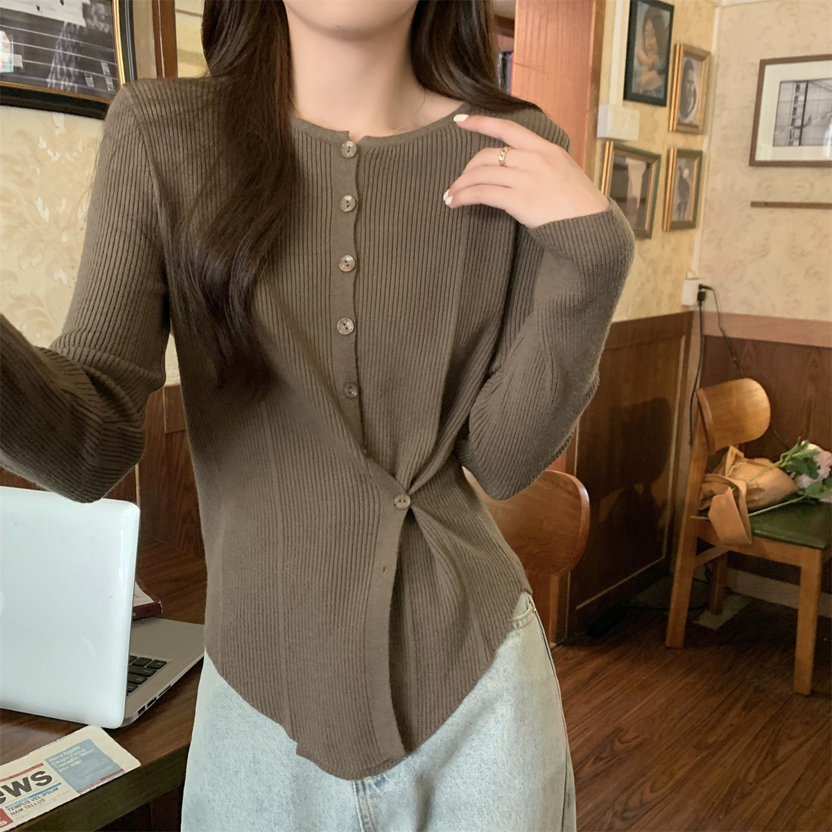 JMA-210 实拍 2023秋冬韩版收腰纯色鱼骨设计感安迪绒开衫针织毛衣女外套