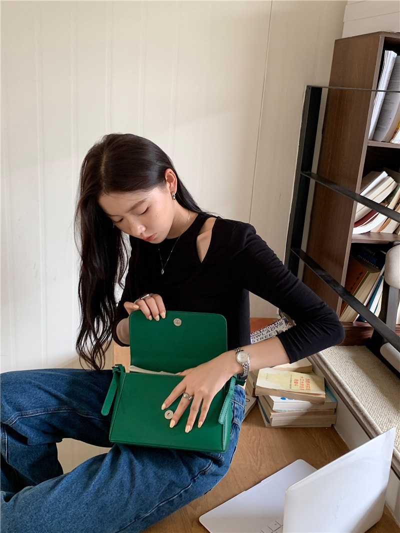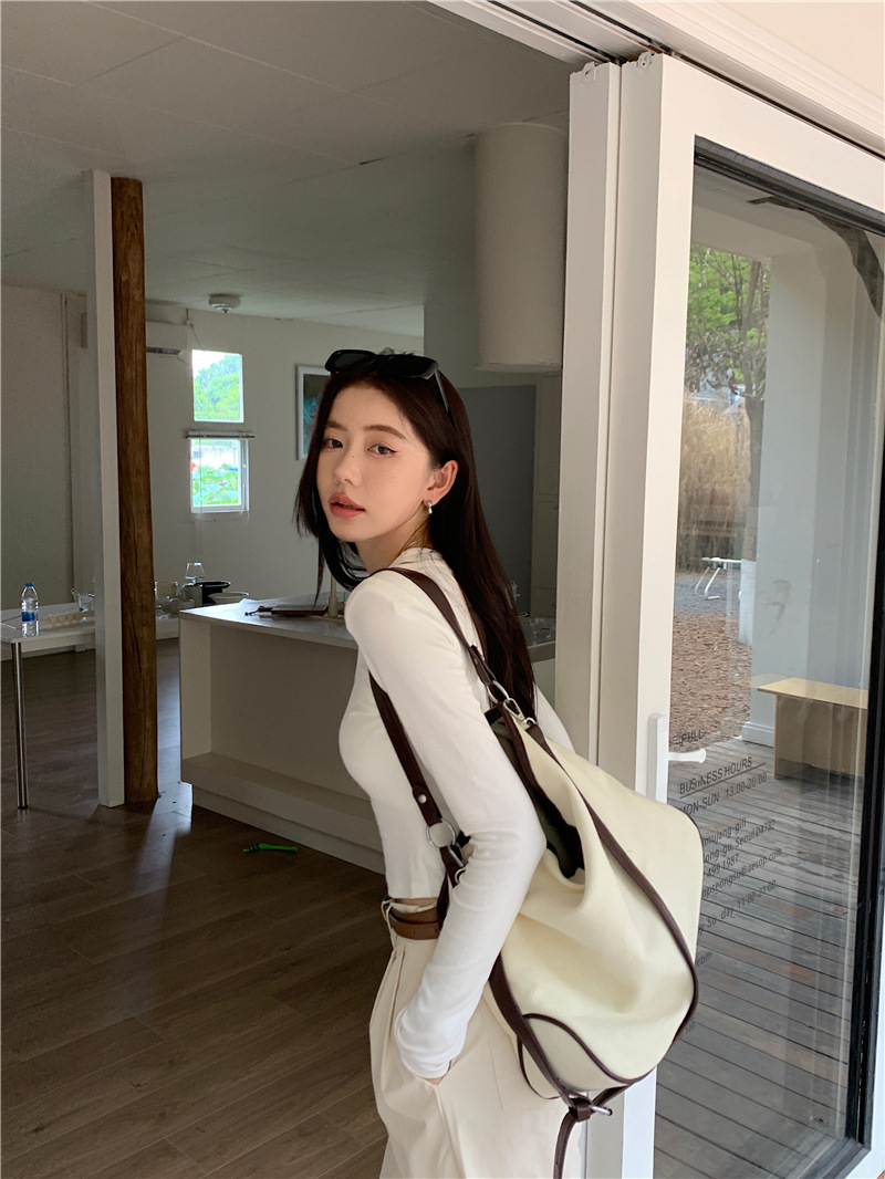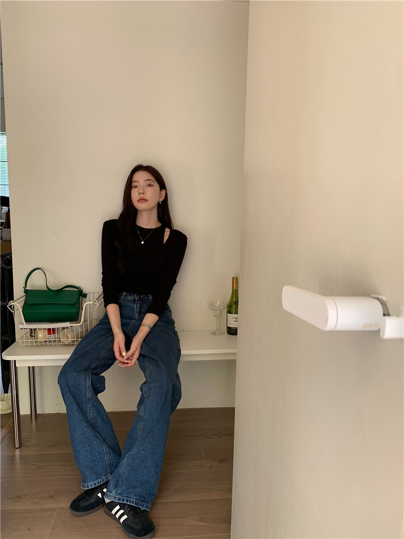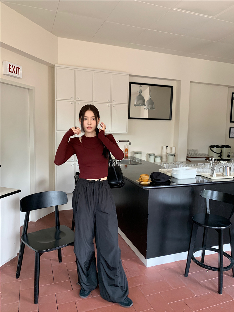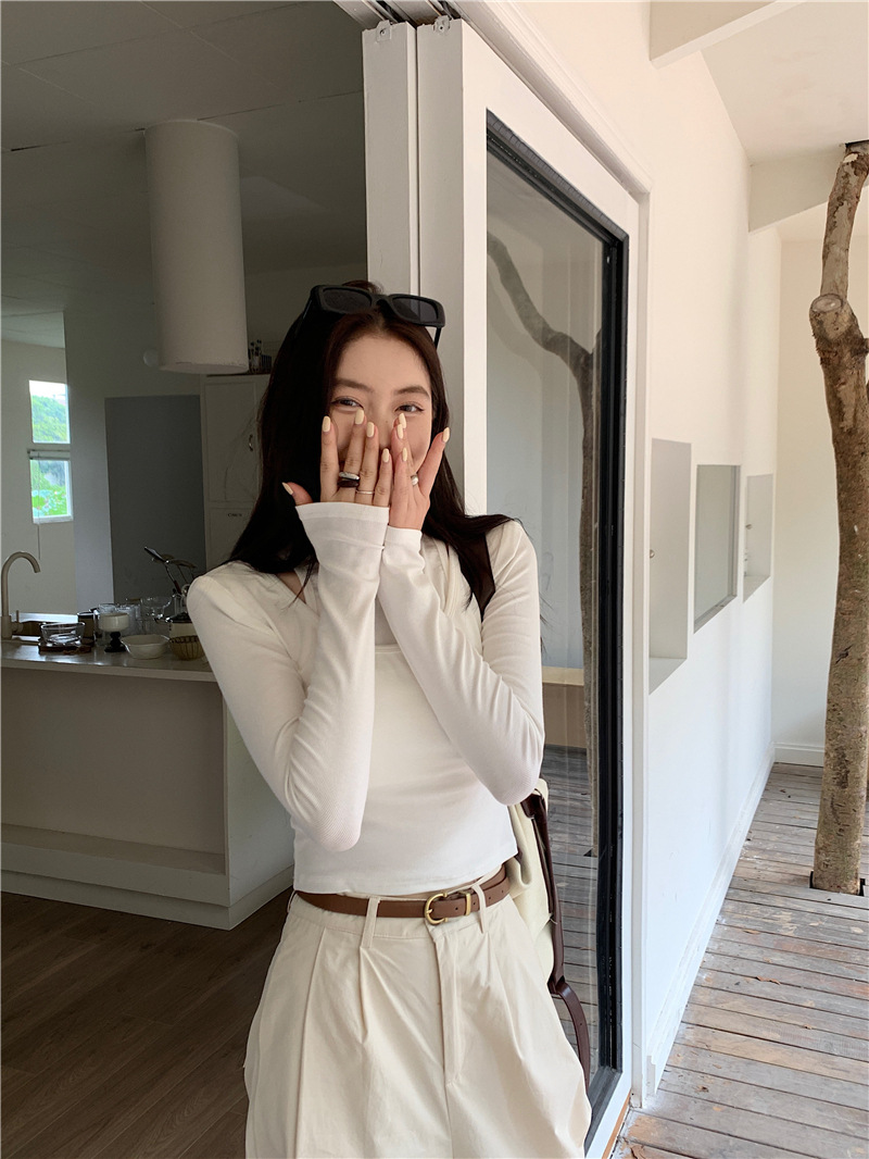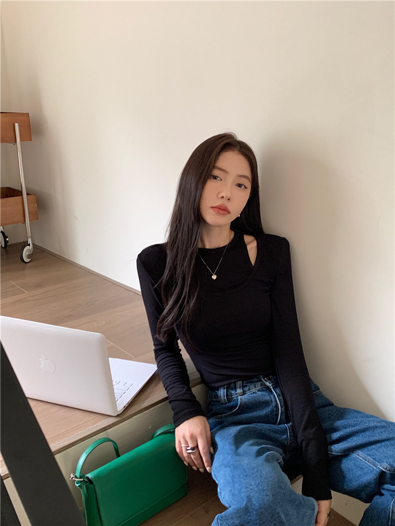JMA-213 实拍 2023韩国早秋新款设计感修身显瘦假两件短款长袖T恤女上衣潮
