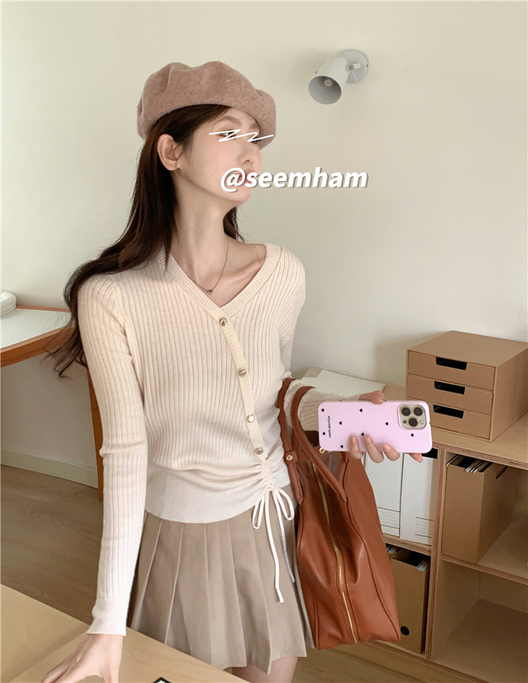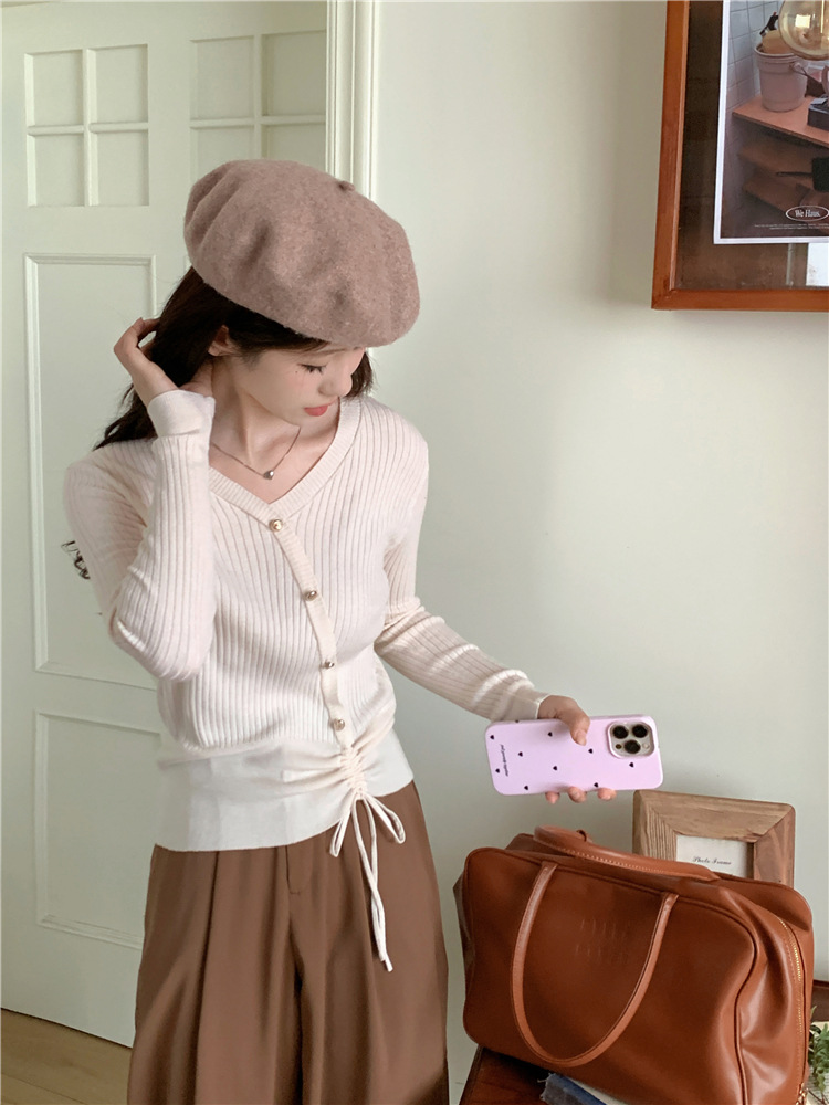 千篇一律的针织衫里斜门襟设计多了几分个性