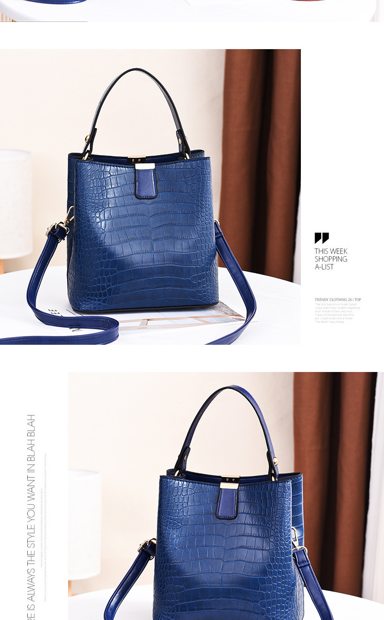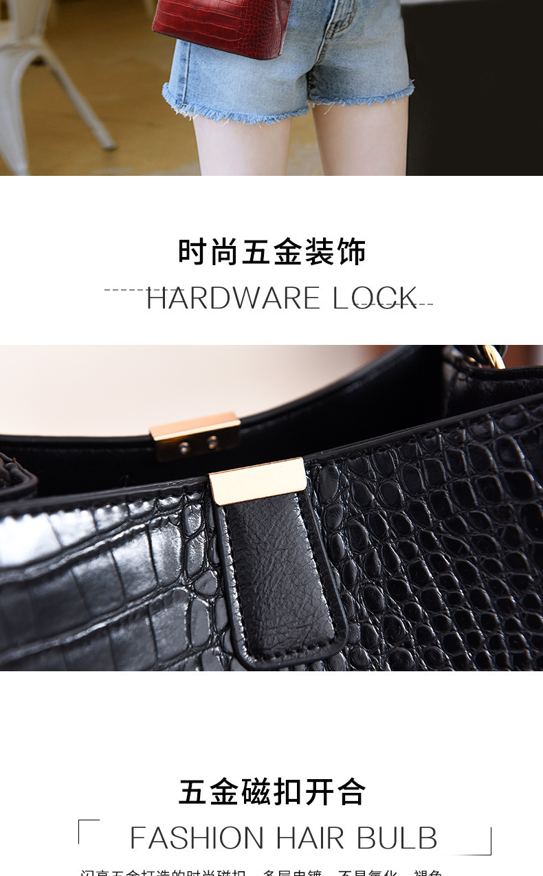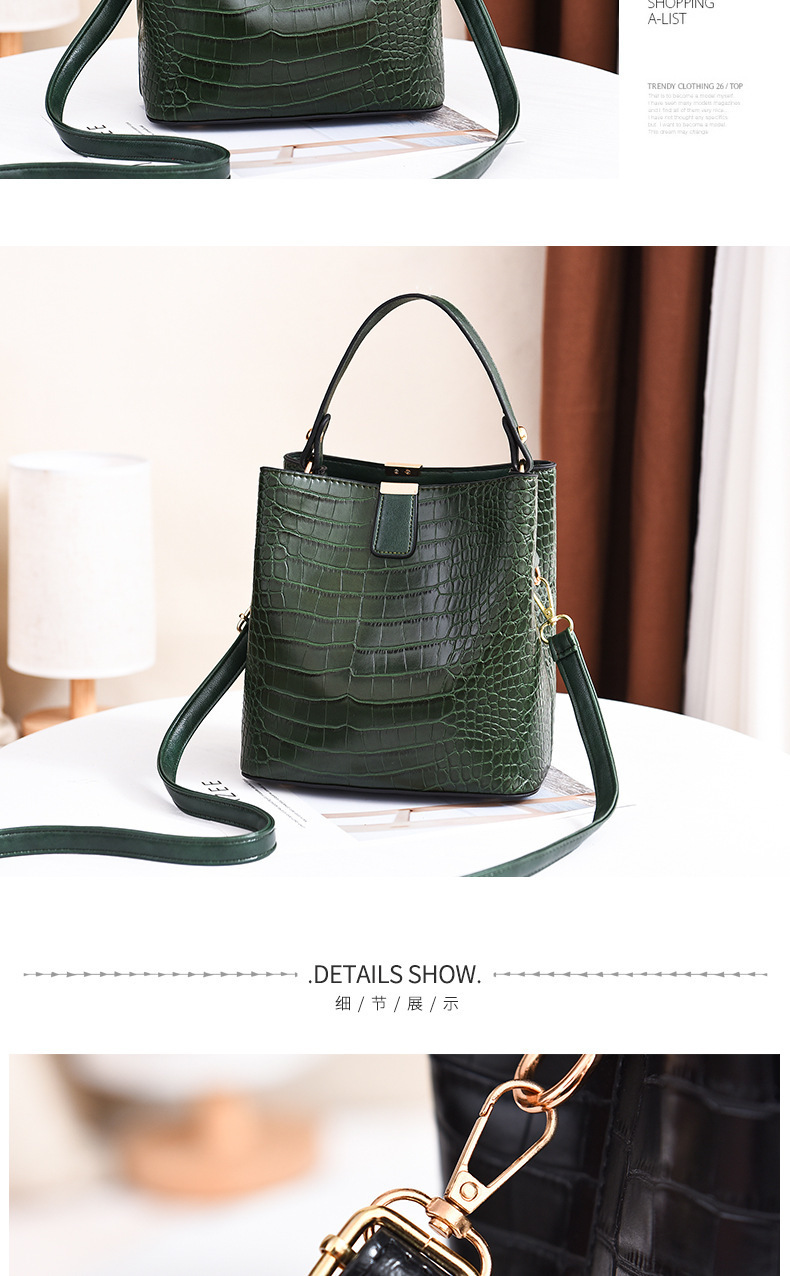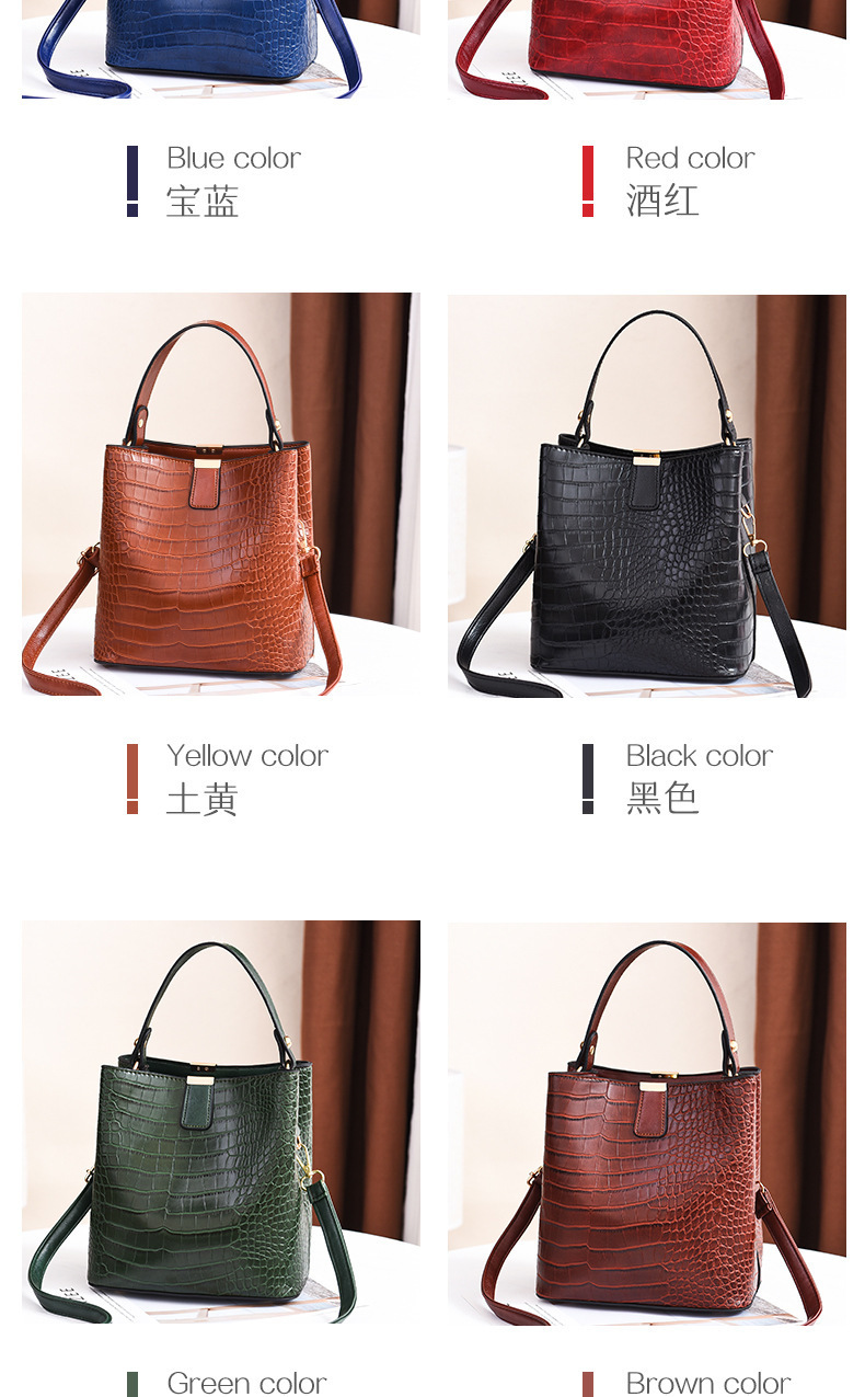 JM-674 厂家直供包包女新款时尚女士手提包鳄鱼纹百搭水桶包潮单肩斜挎包