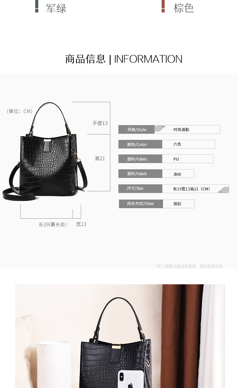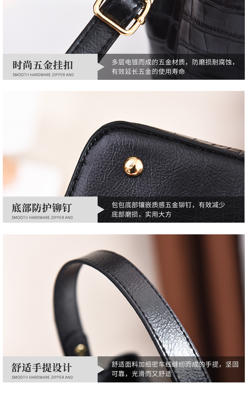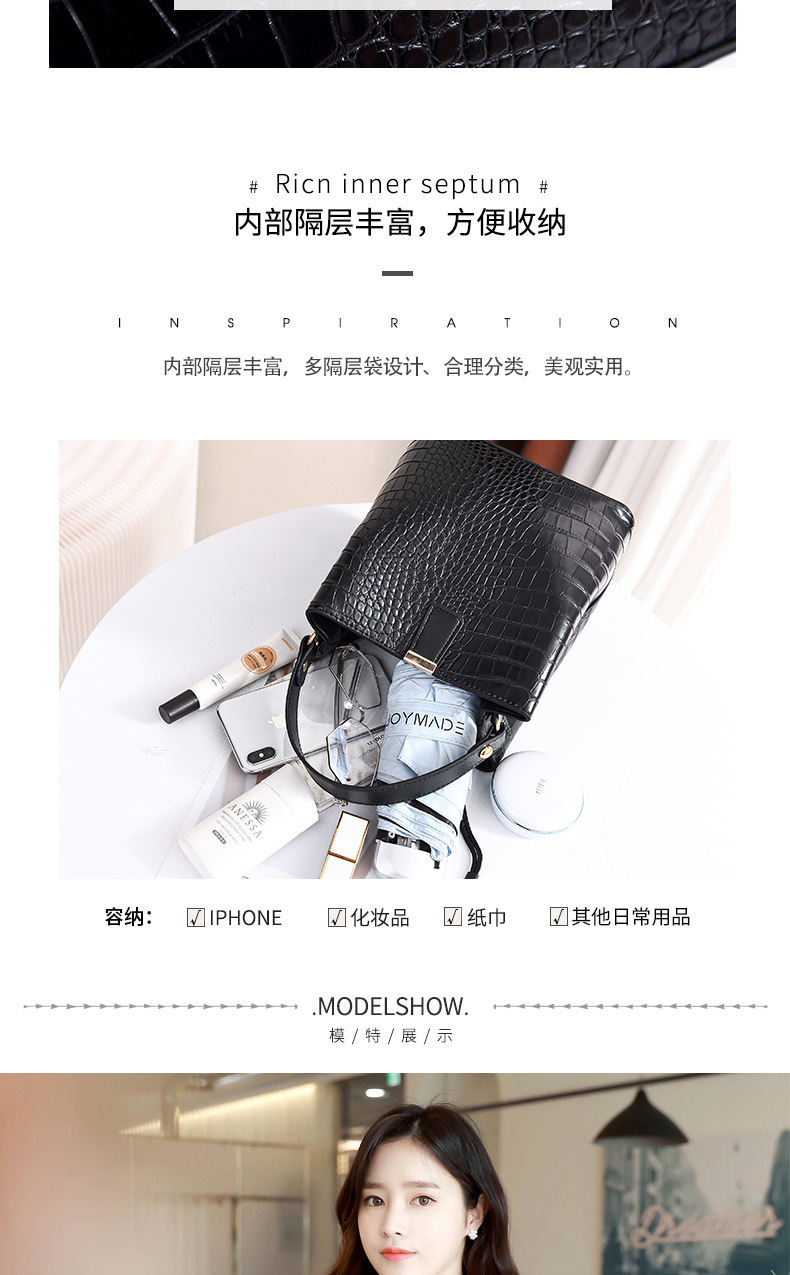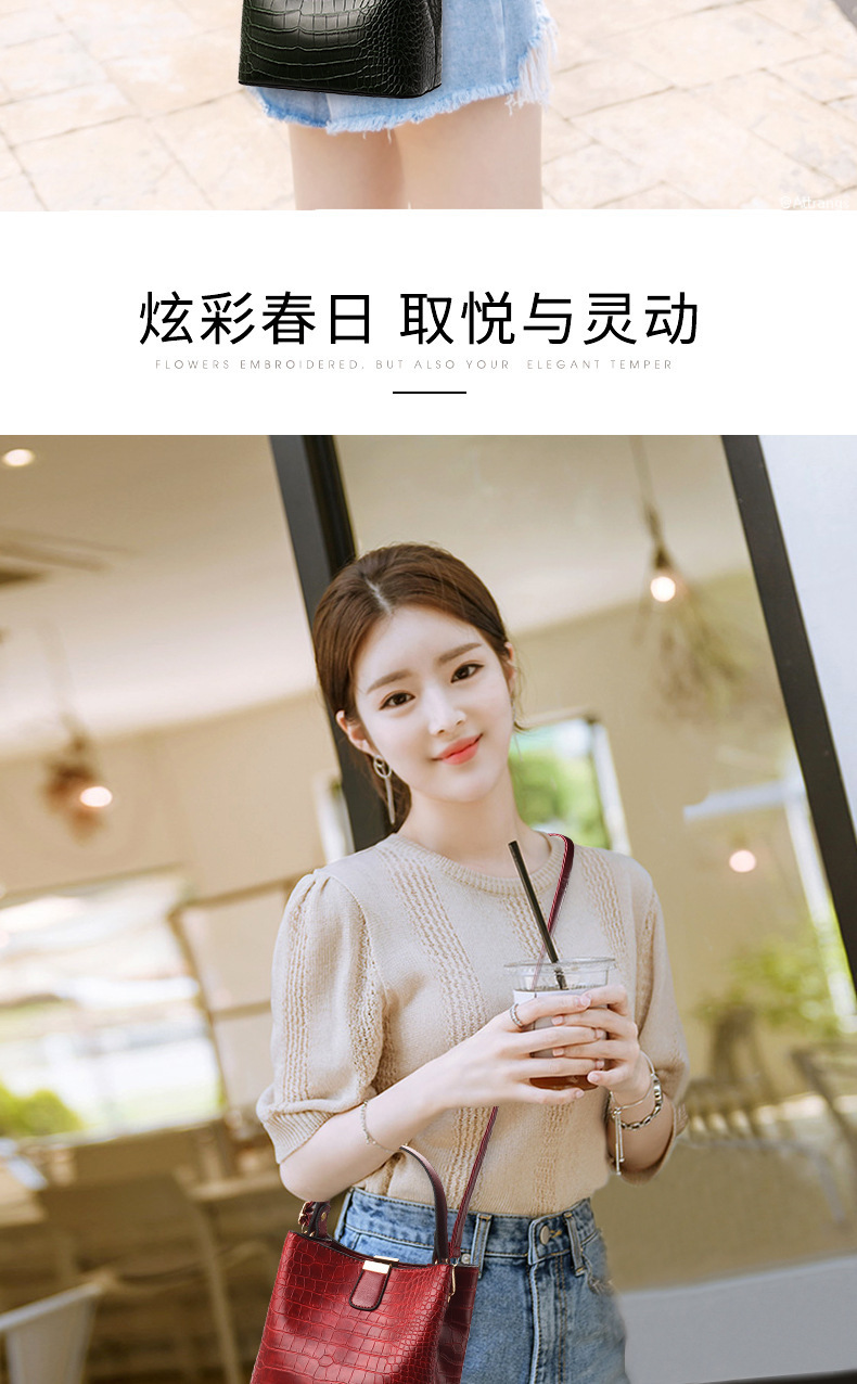 JM-674 厂家直供包包女新款时尚女士手提包鳄鱼纹百搭水桶包潮单肩斜挎包