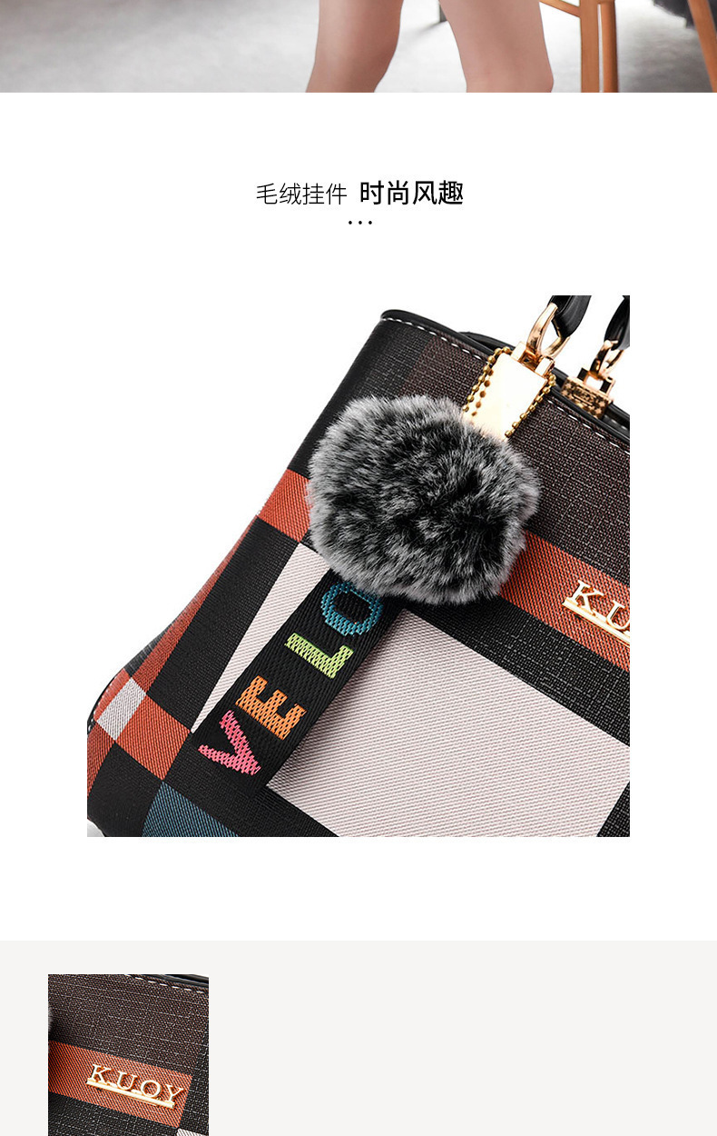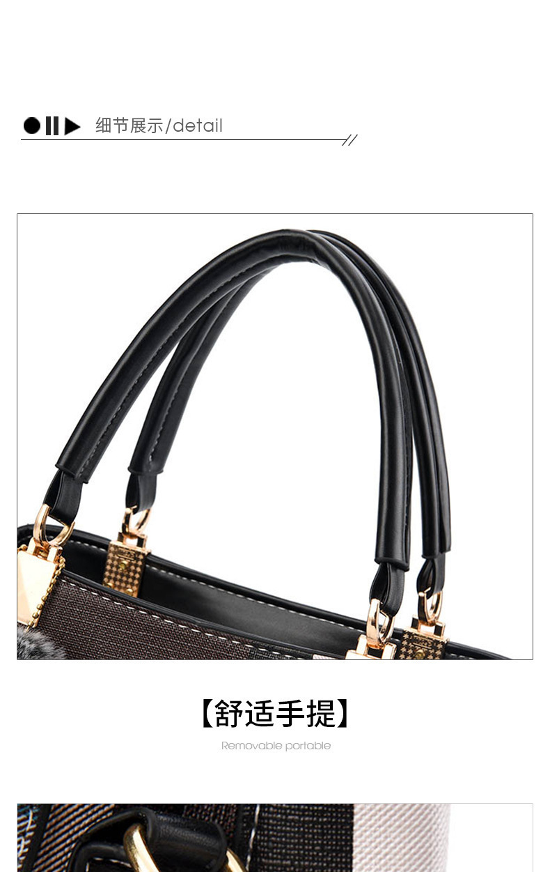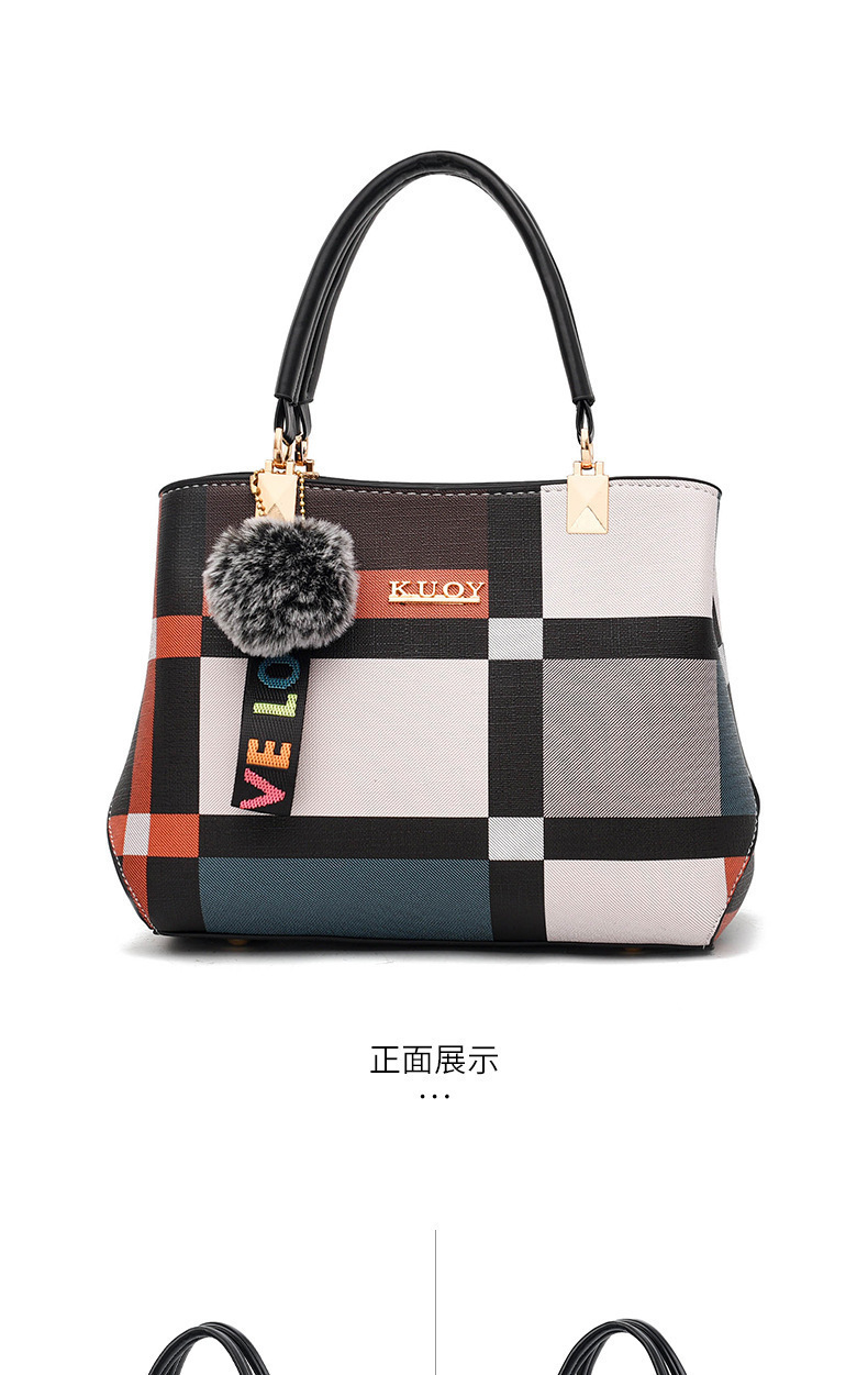 JM-680 手提包女包2021新款韩版格纹时尚中年女士妈妈单肩斜挎包