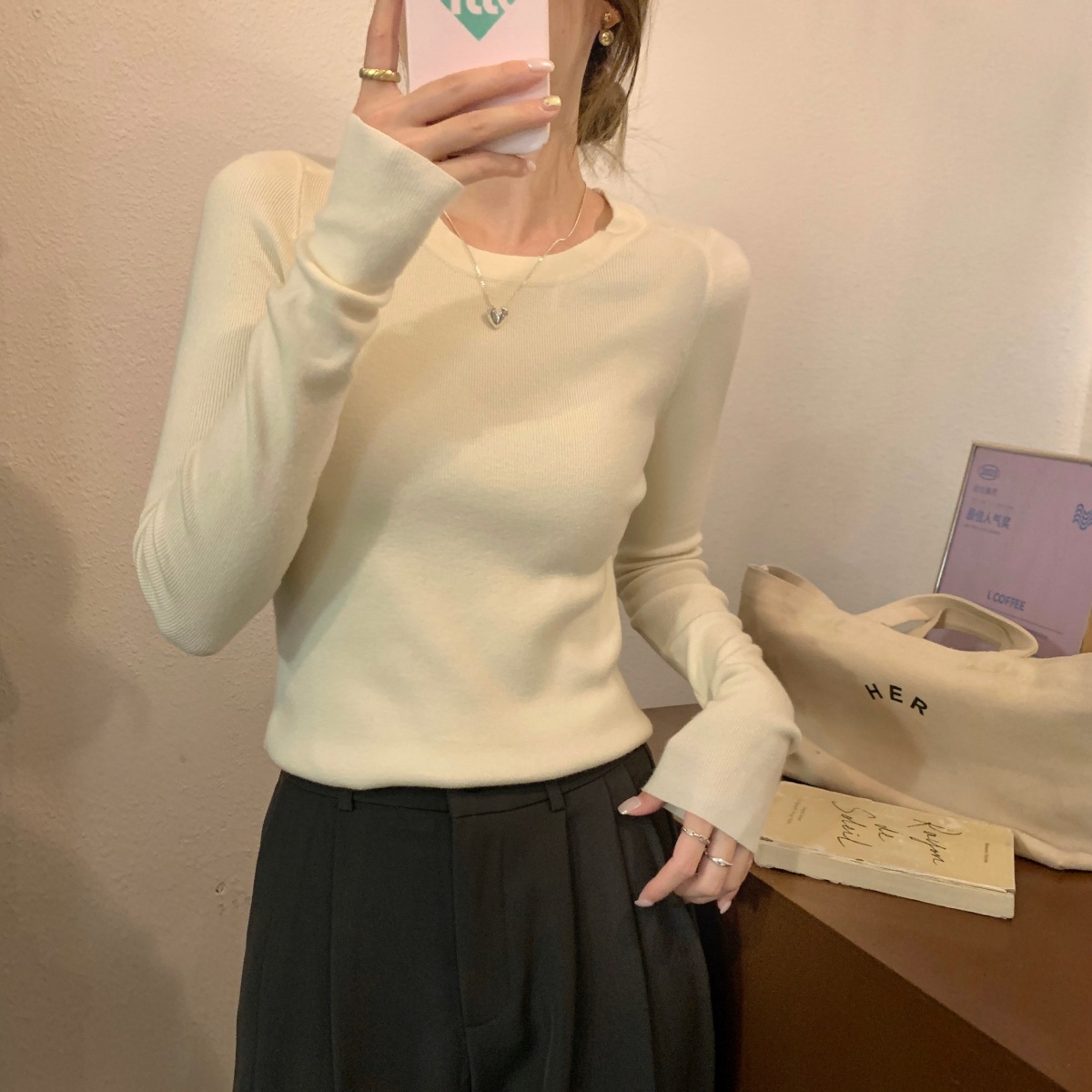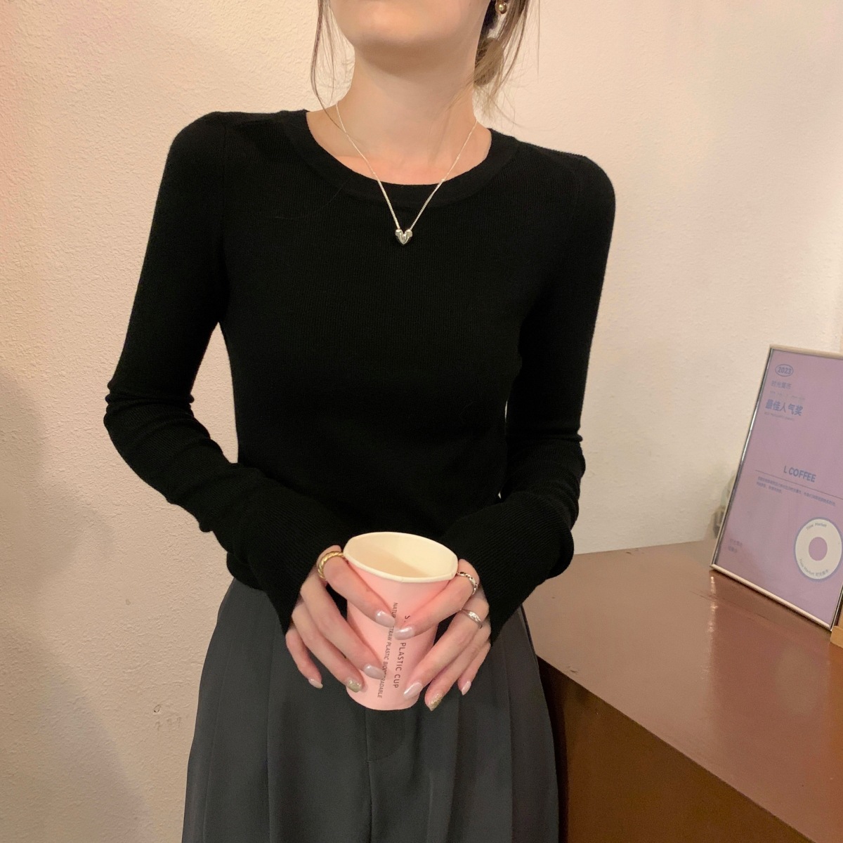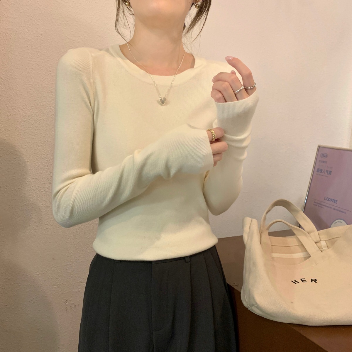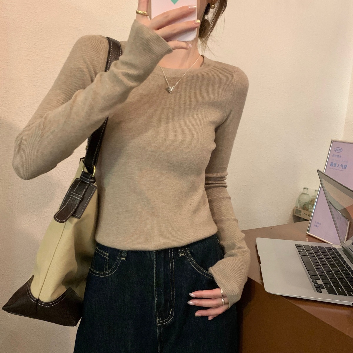JMA-264 实拍 2023秋冬韩版圆领纯色气质百搭基础内搭针织长袖打底衫毛衣