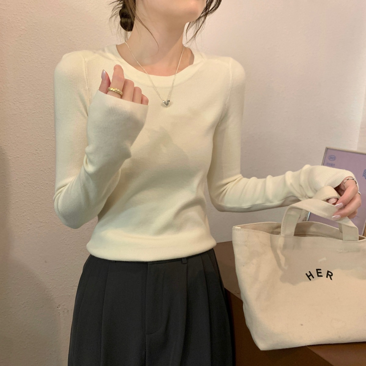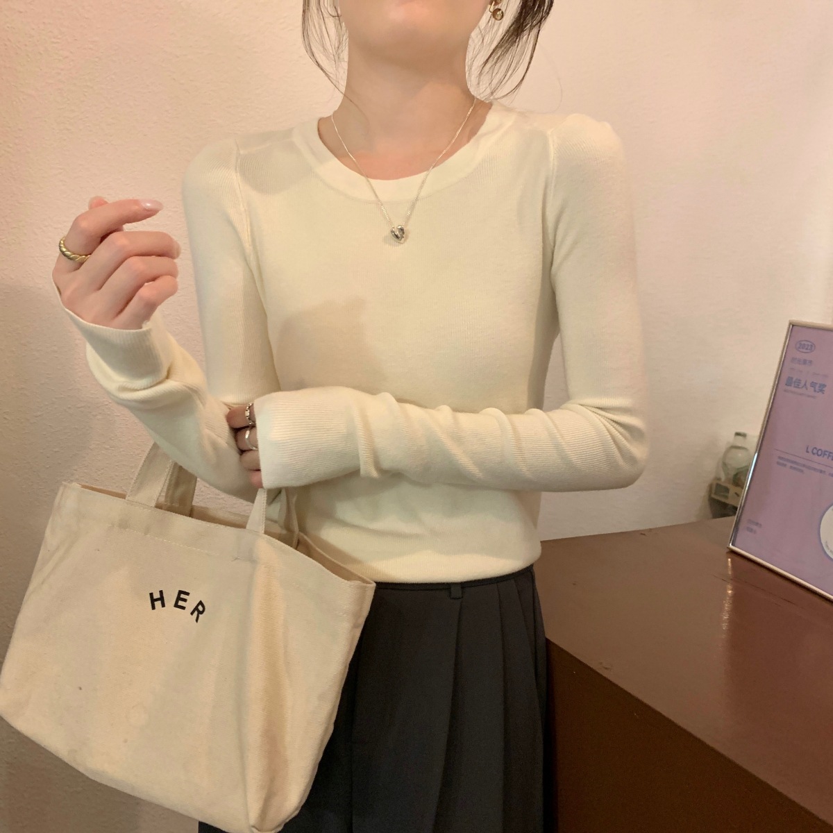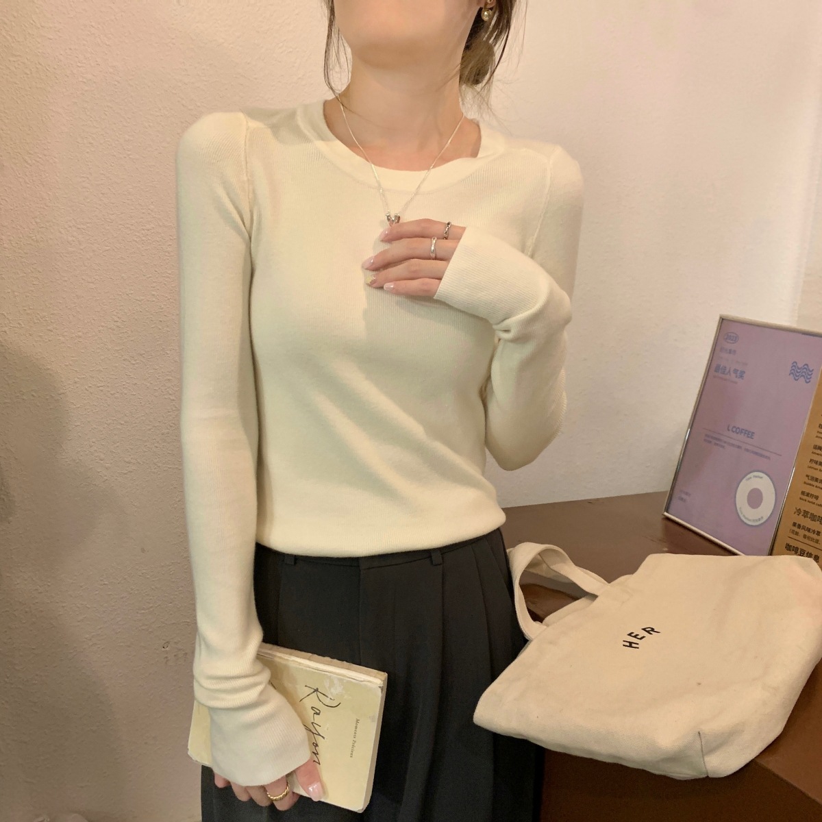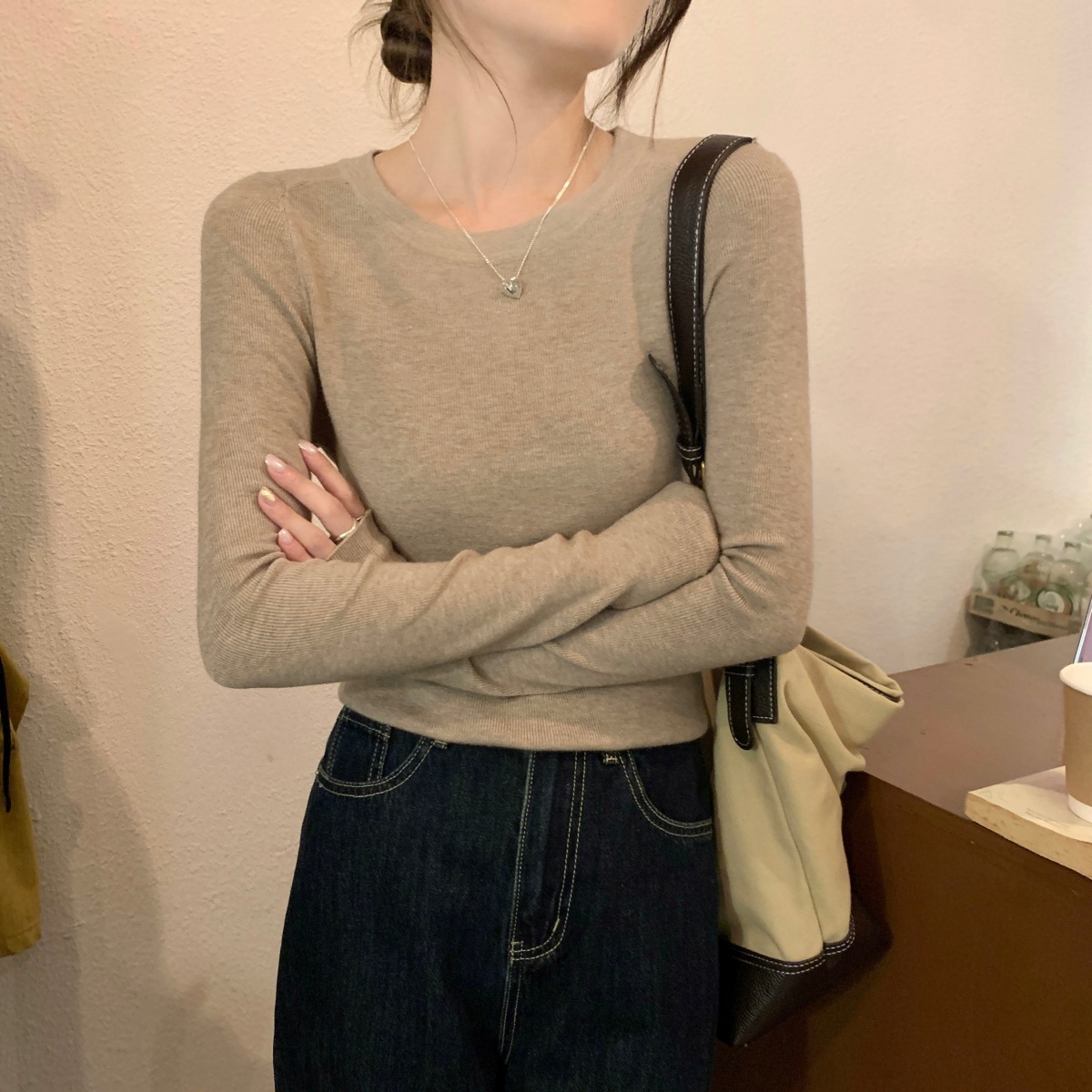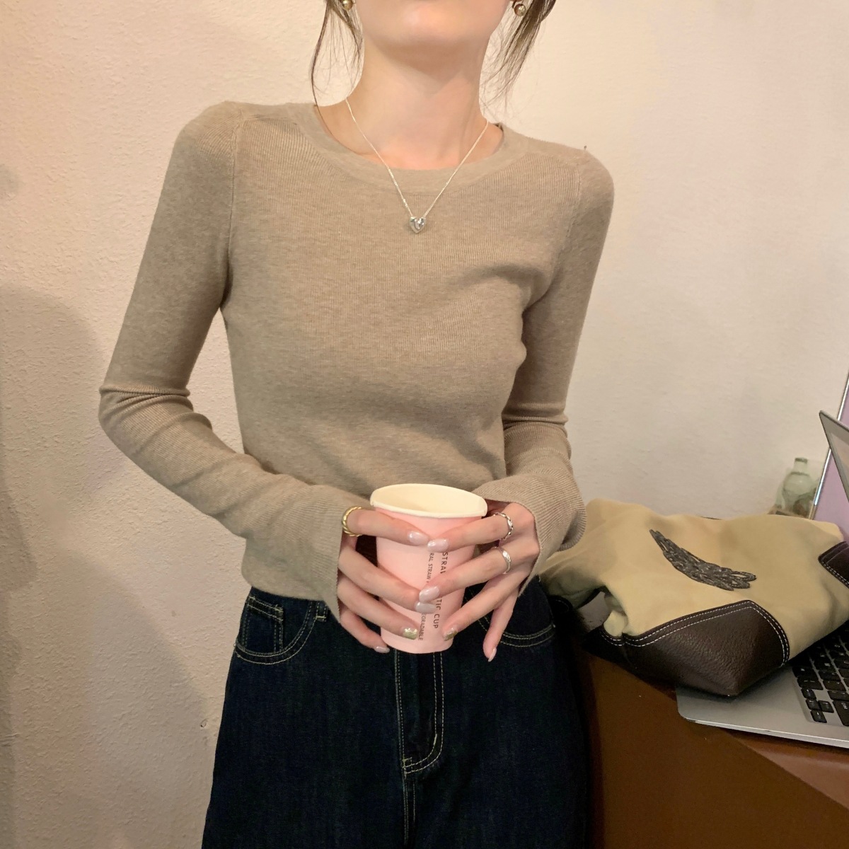 JMA-264 实拍 2023秋冬韩版圆领纯色气质百搭基础内搭针织长袖打底衫毛衣