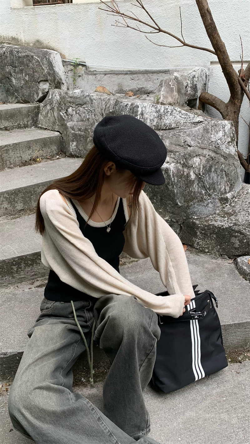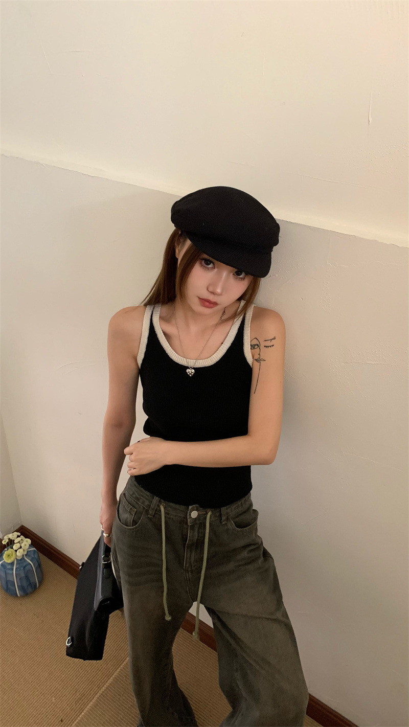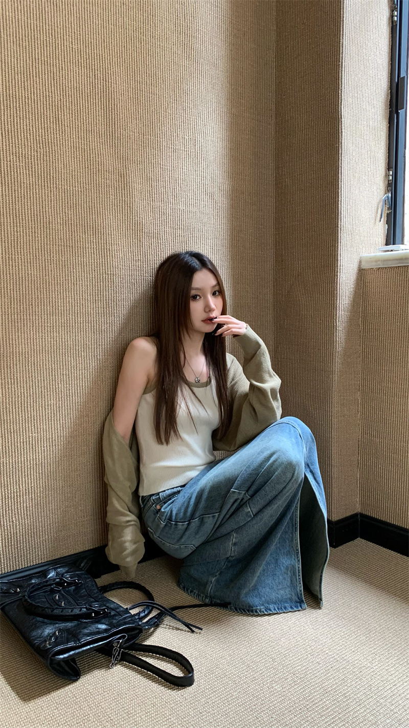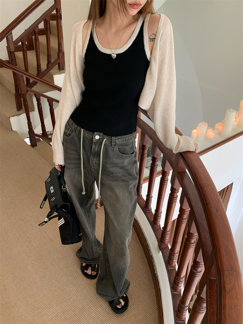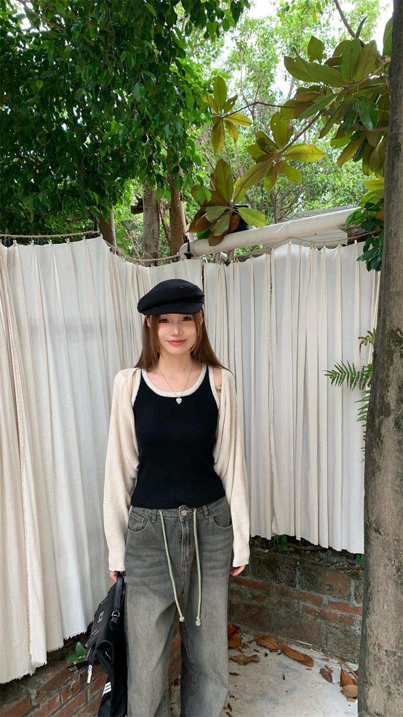 JMA-266 实拍 2023秋季新款韩版百搭撞色针织吊带背心+长袖针织开衫两件套