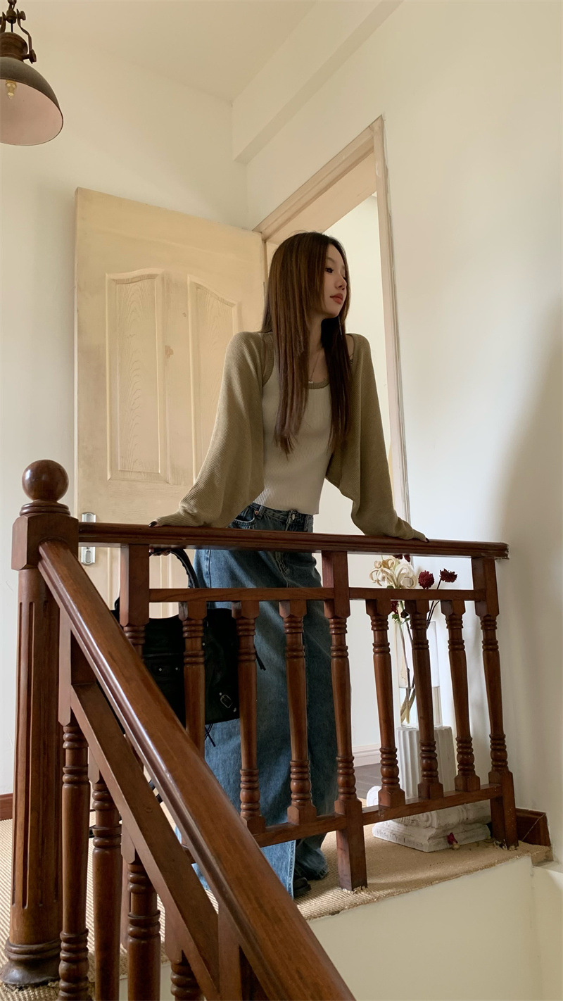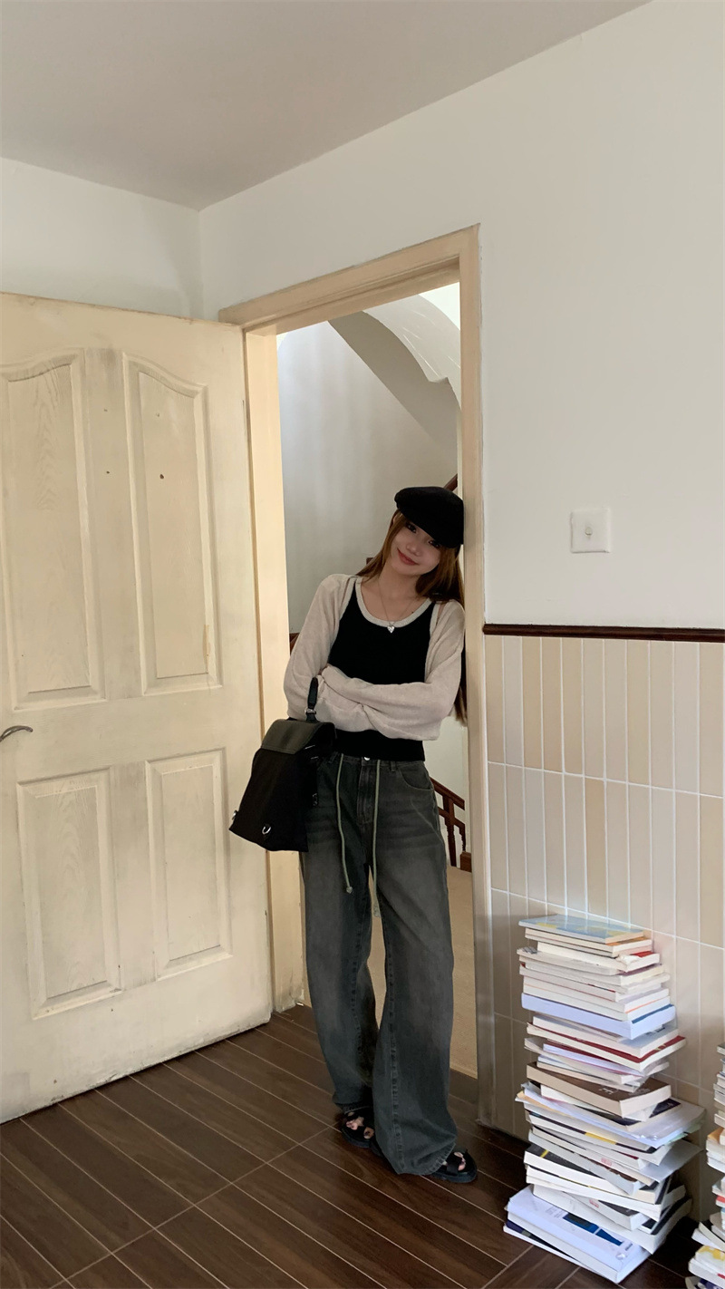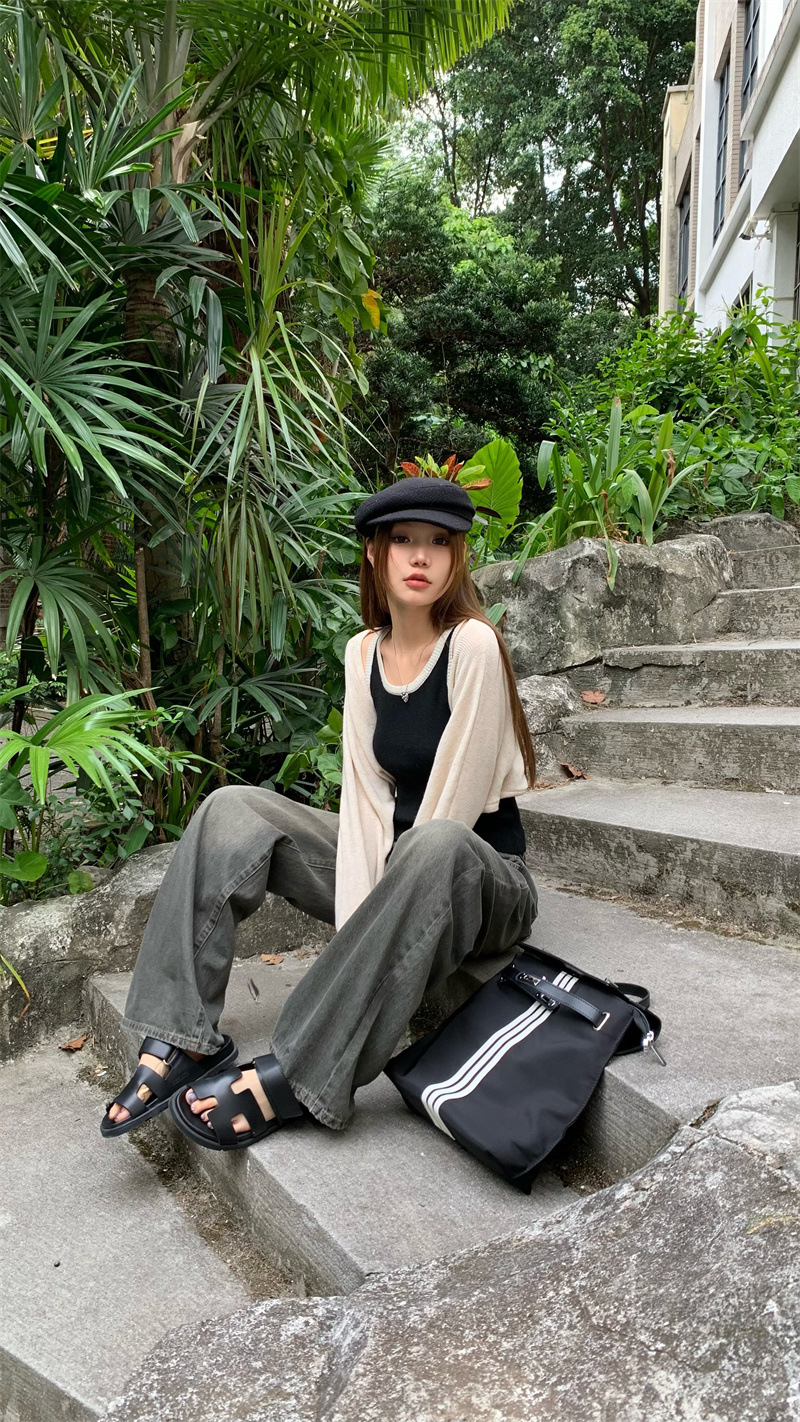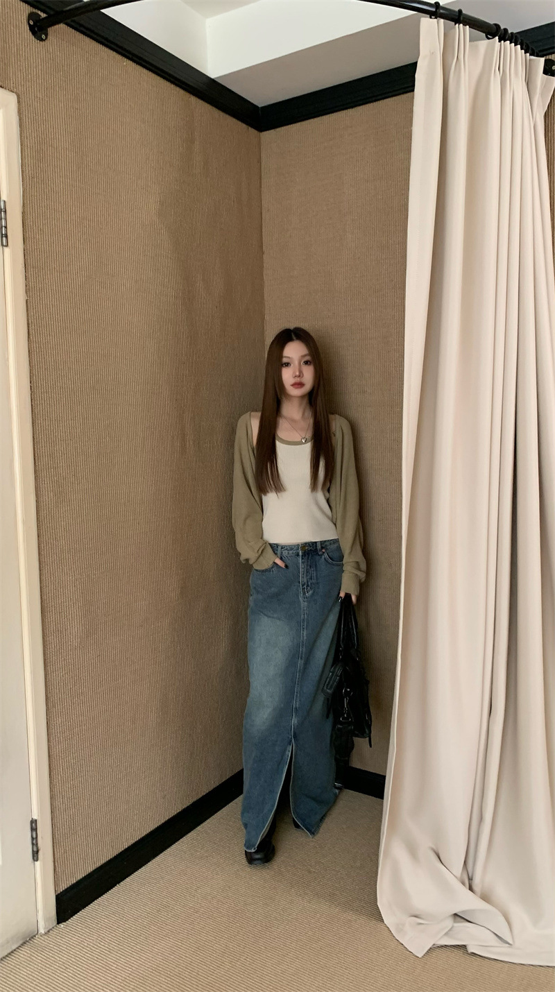 JMA-266 实拍 2023秋季新款韩版百搭撞色针织吊带背心+长袖针织开衫两件套