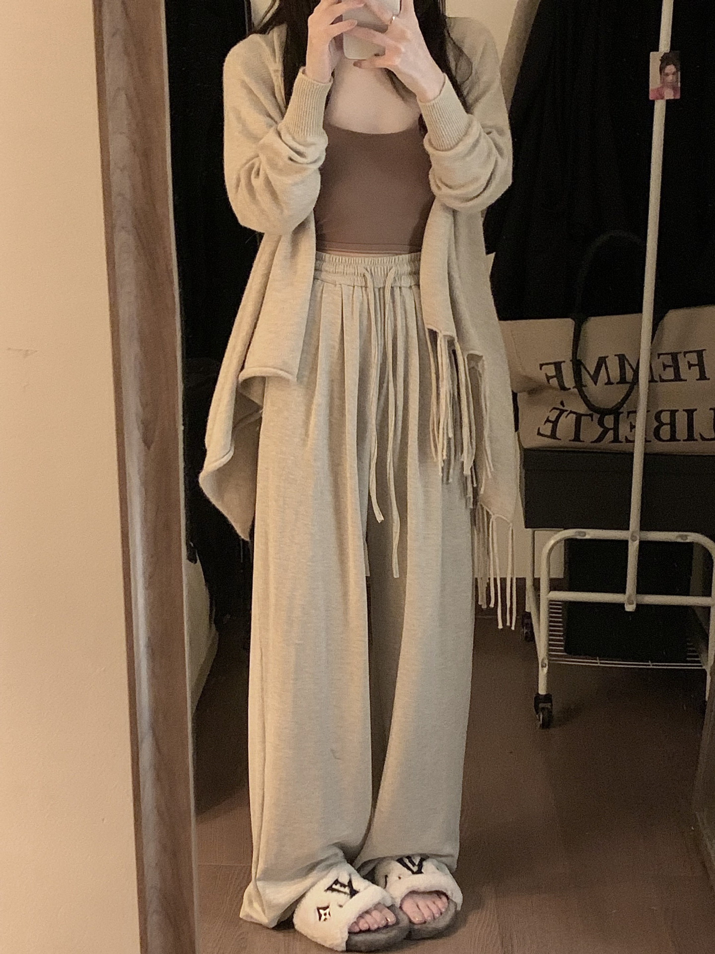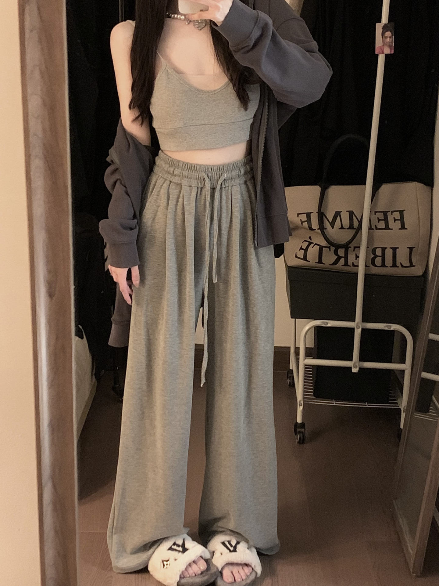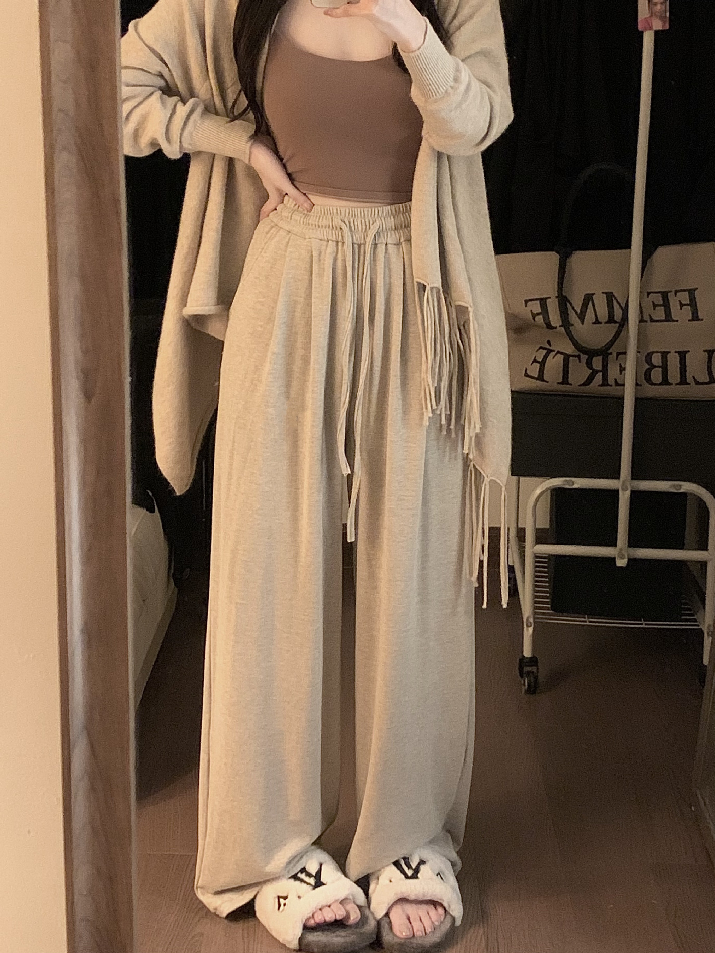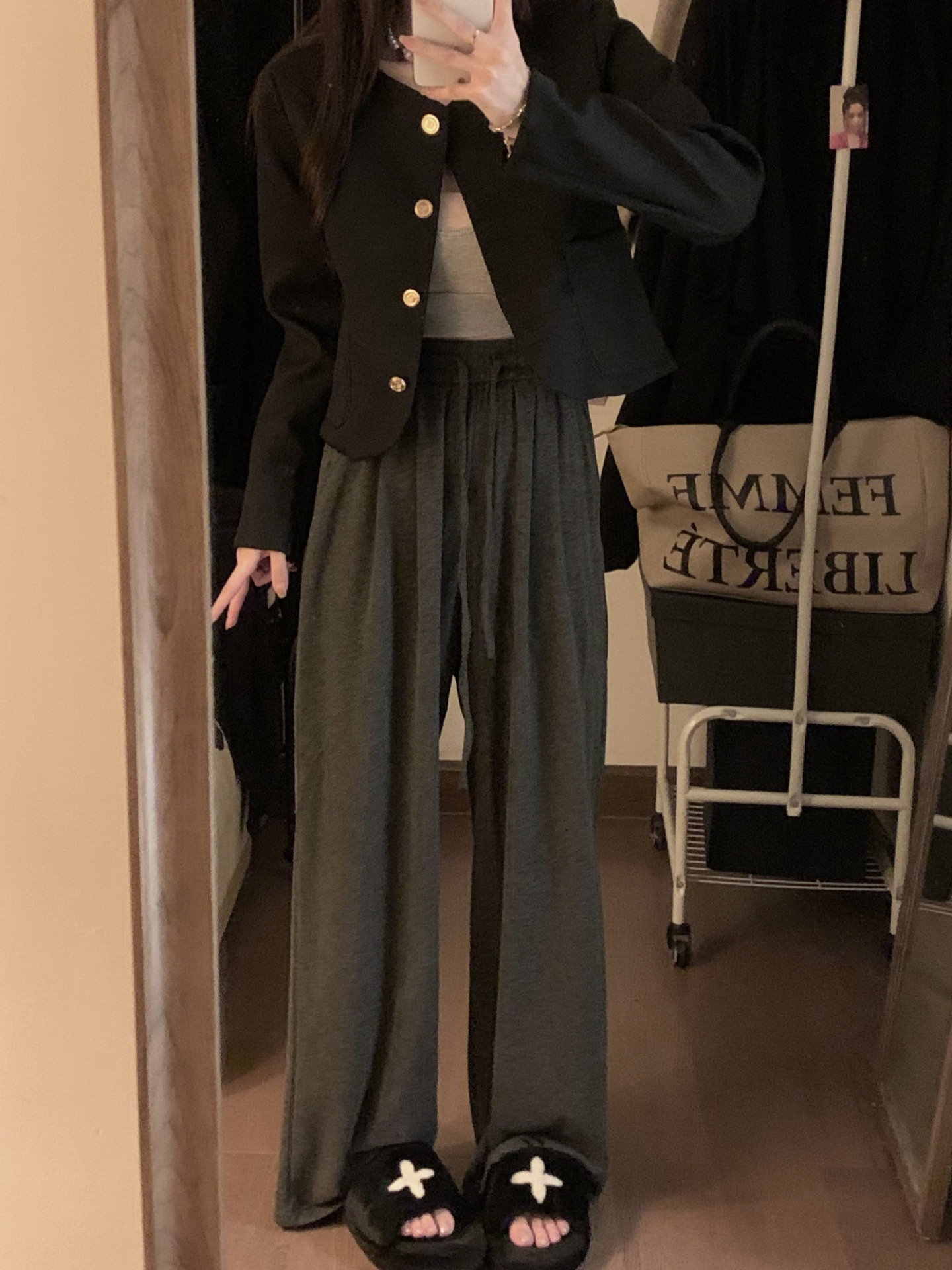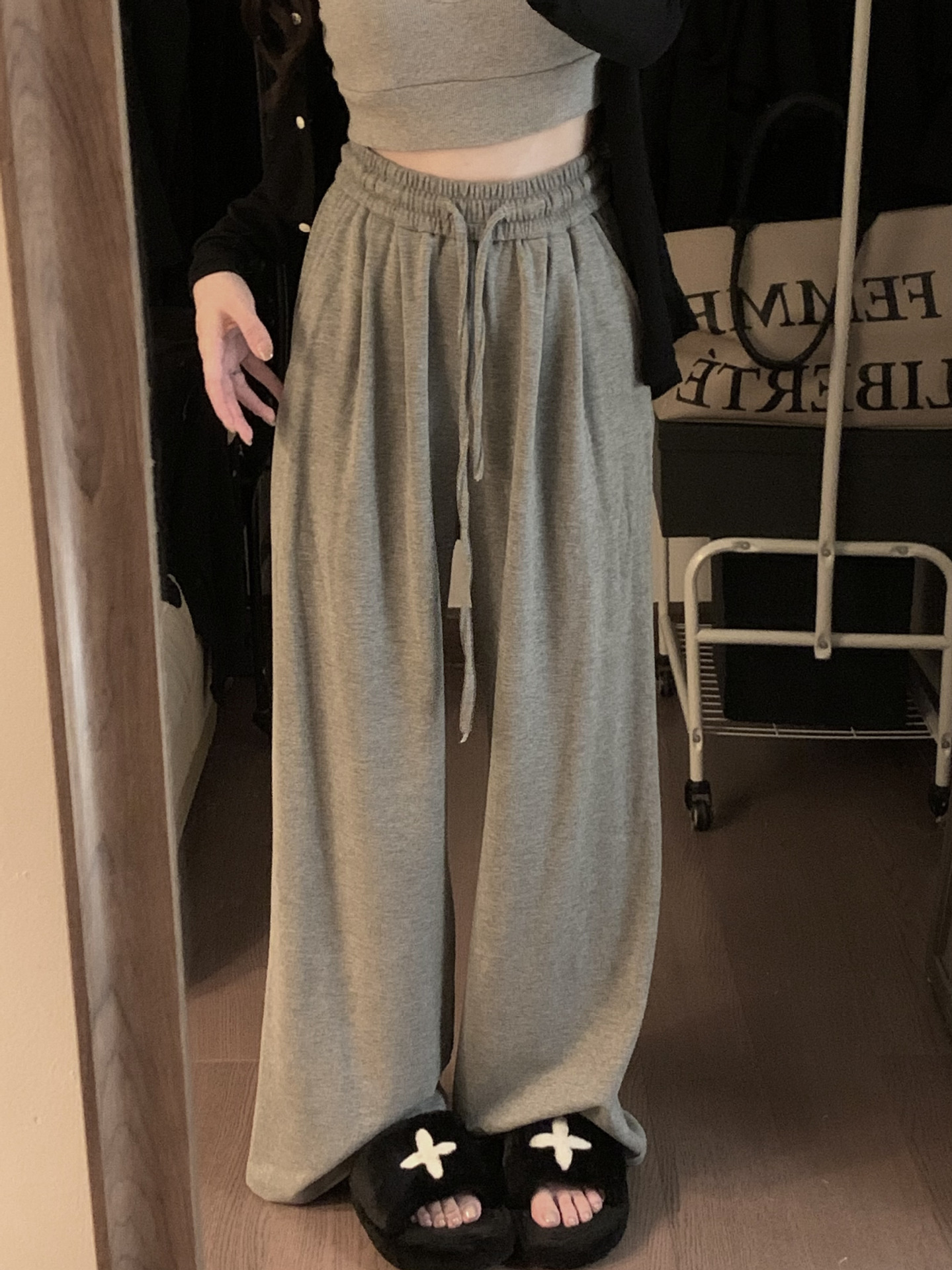 JMA-269 实拍 2023秋季新款韩版高腰显瘦垂感松紧腰直筒休闲裤阔腿裤长裤