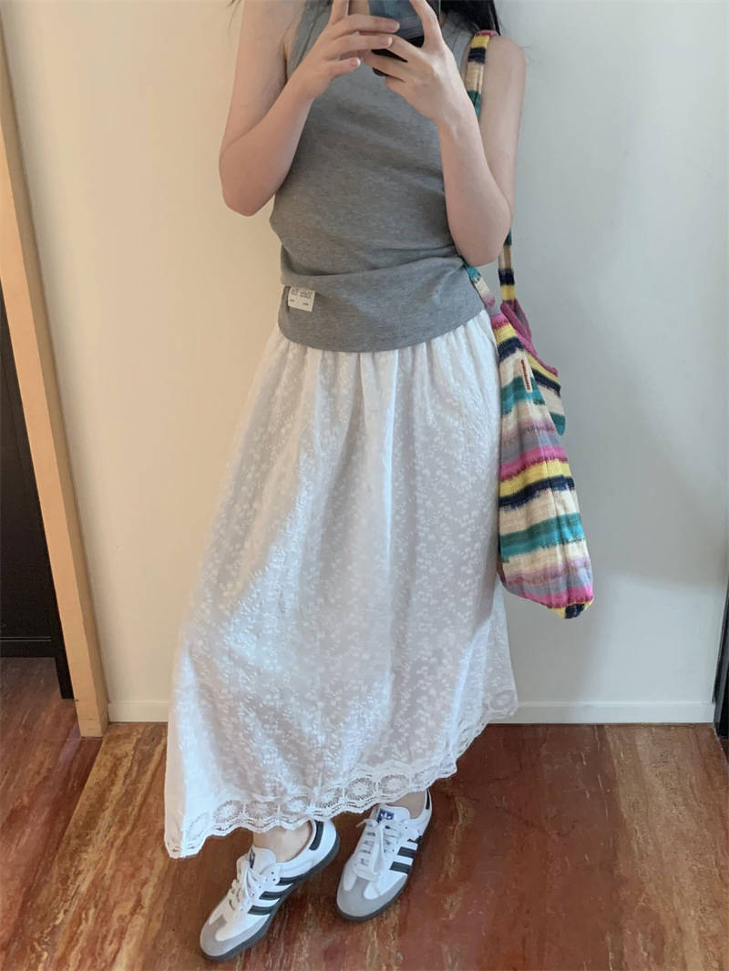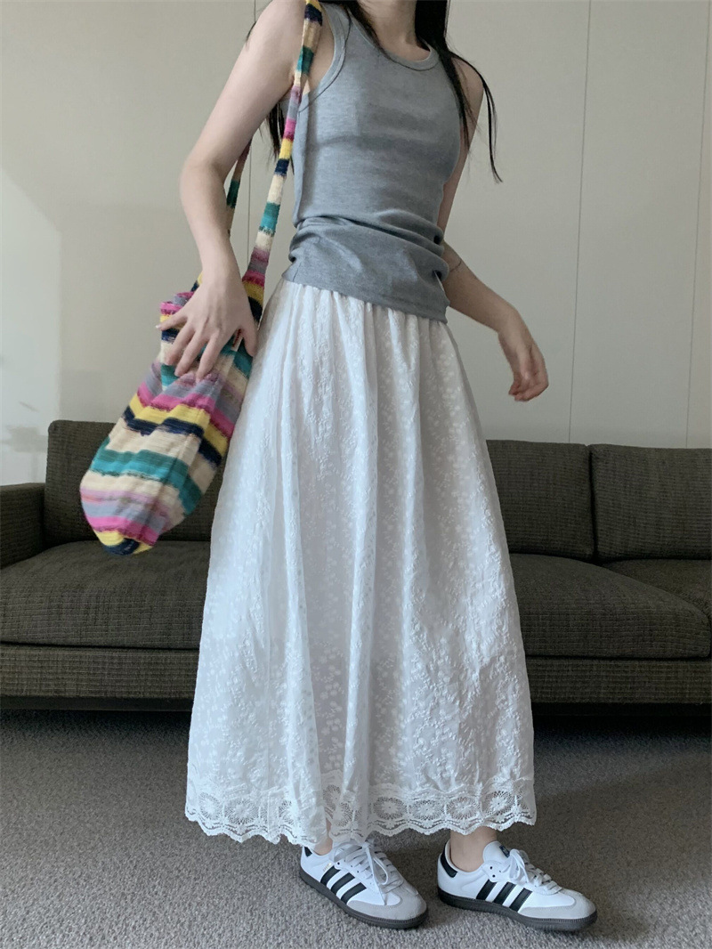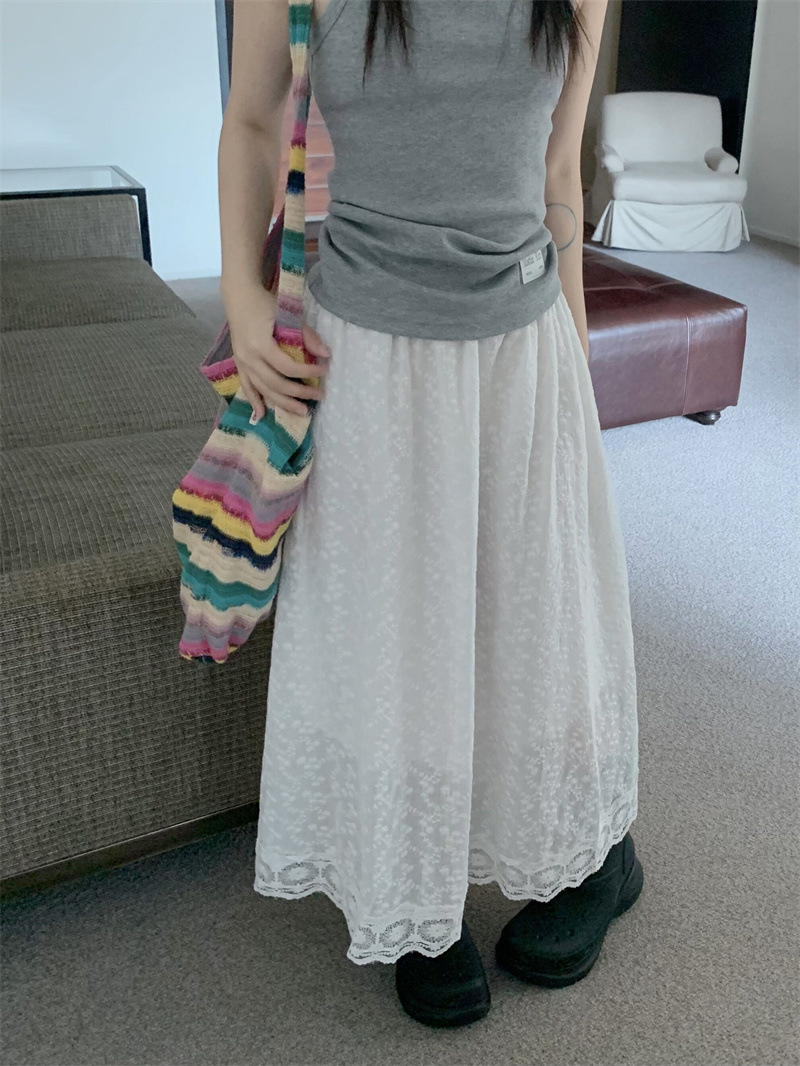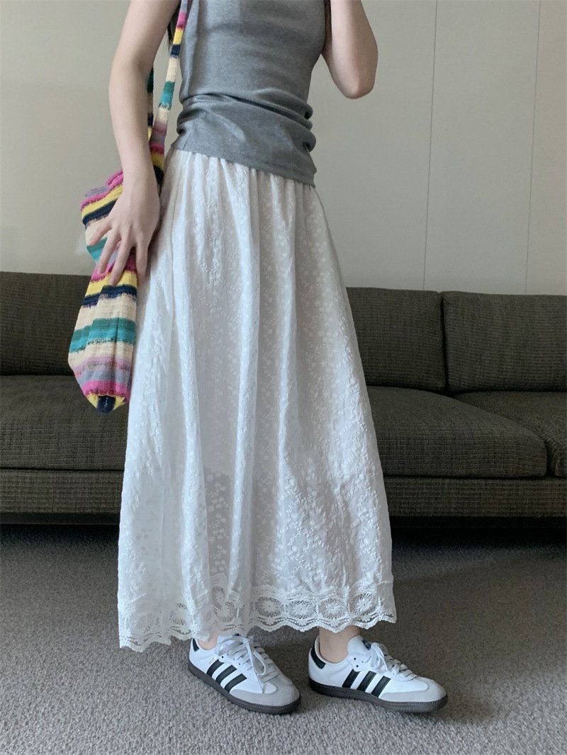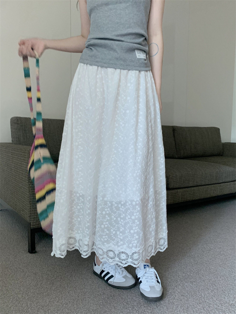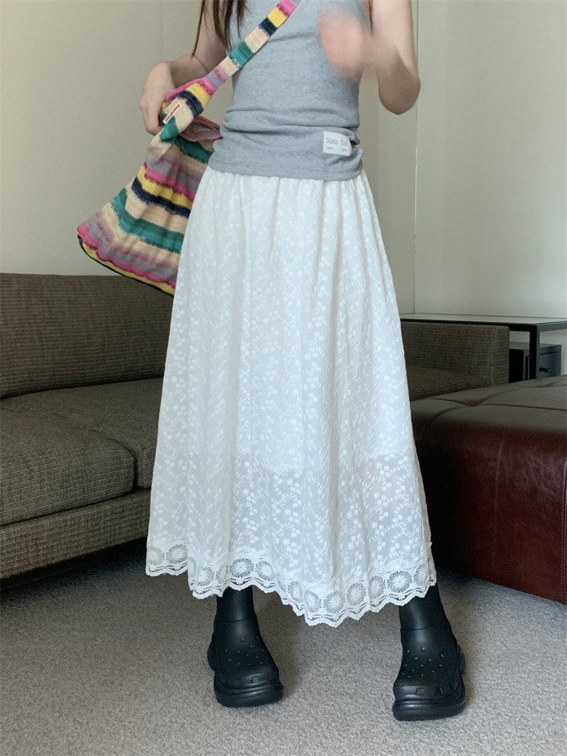 JMA-287 实拍 2023夏季新款韩版重工刺绣白色蕾丝半身裙法式高腰伞裙长裙