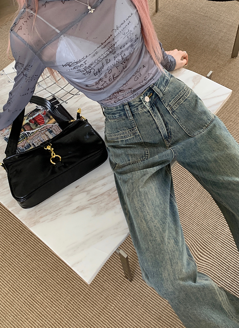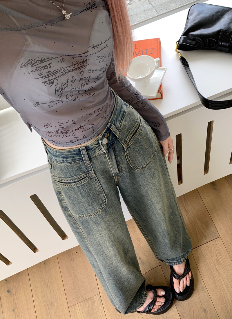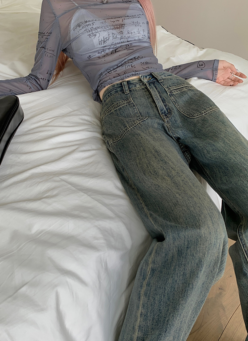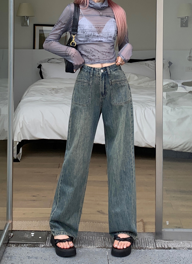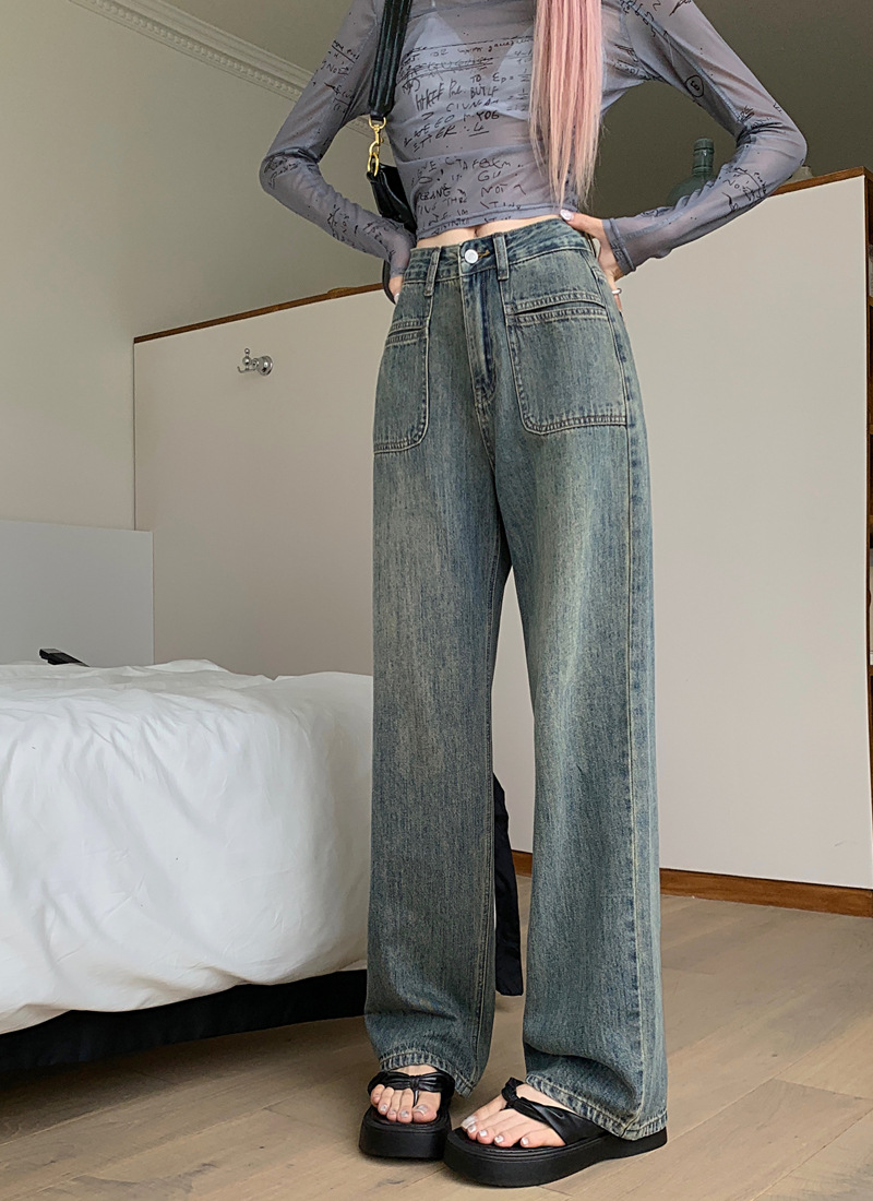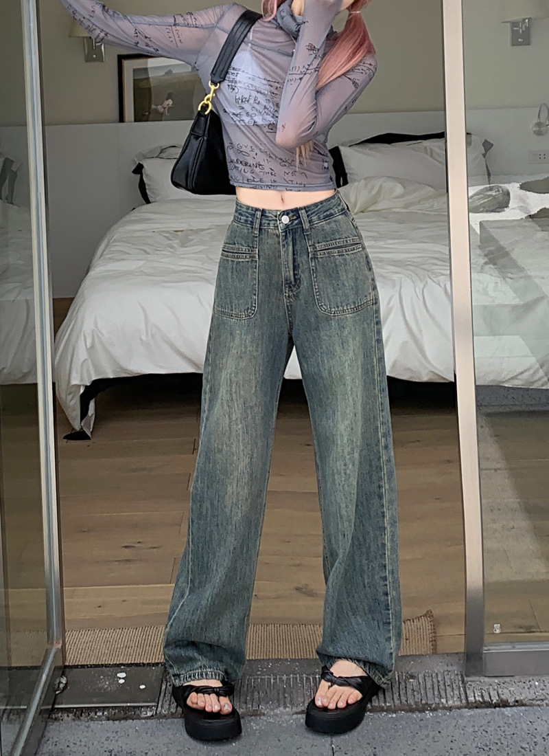 JMA-310 实拍 美式窄版直筒牛仔裤女2023秋季新款韩版高腰复古简约阔腿裤