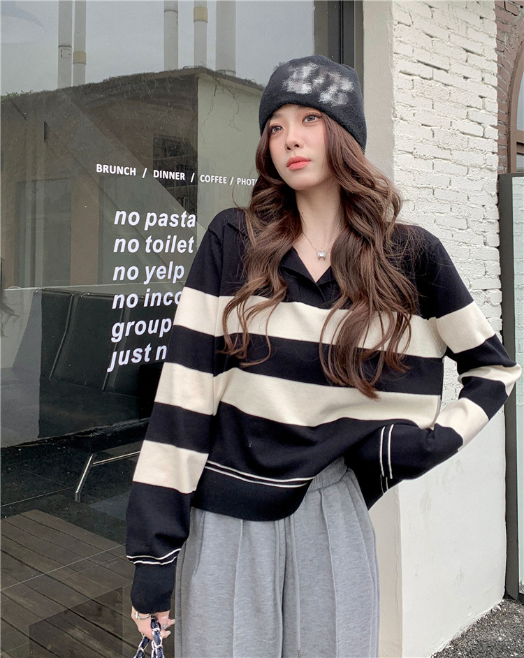 一件搭N件的polo领撞色条纹毛衣谁能不爱呢~