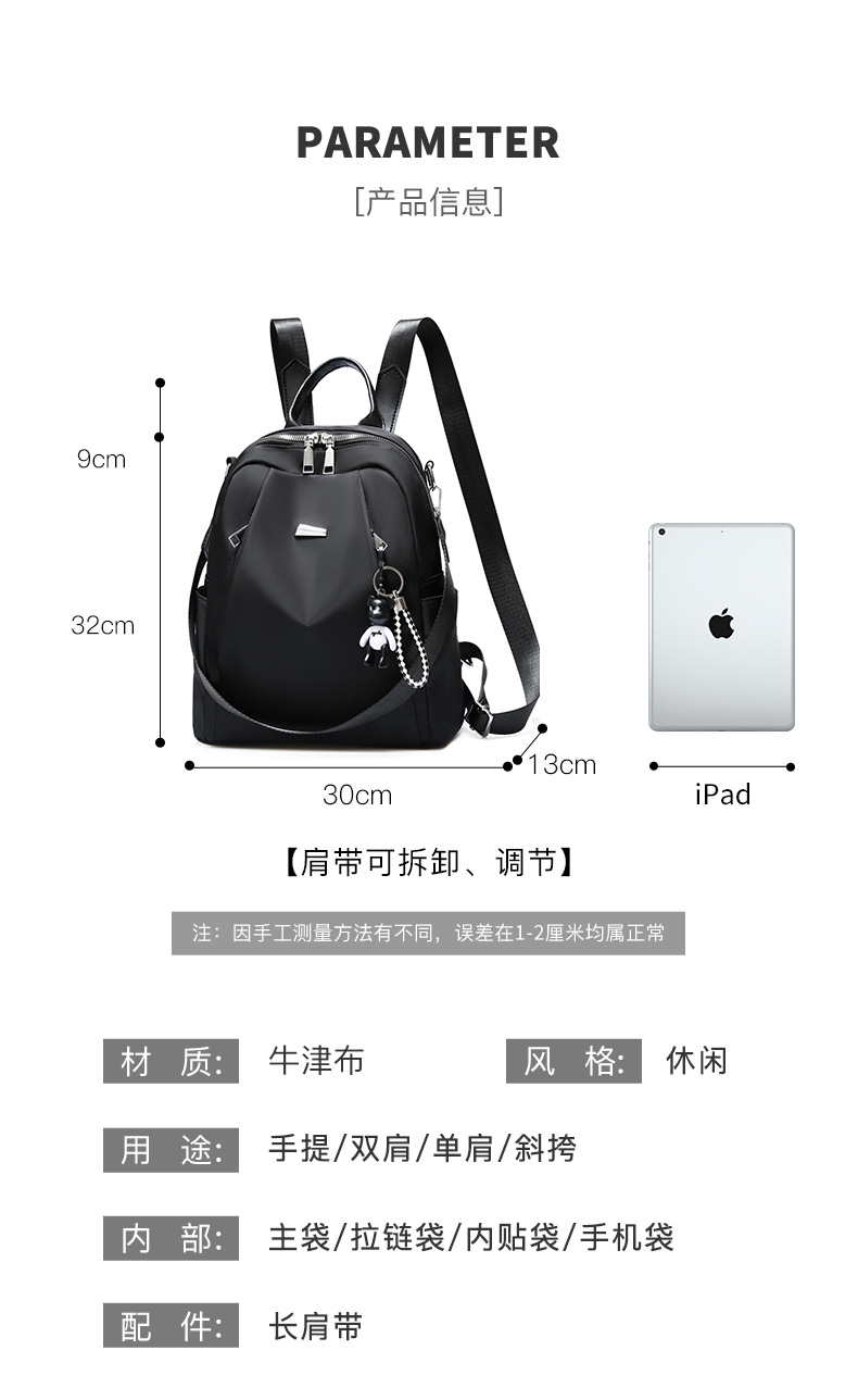 JM-737 牛津布双肩包女2023新款时尚百搭包包书包女士背包大容量旅行小包