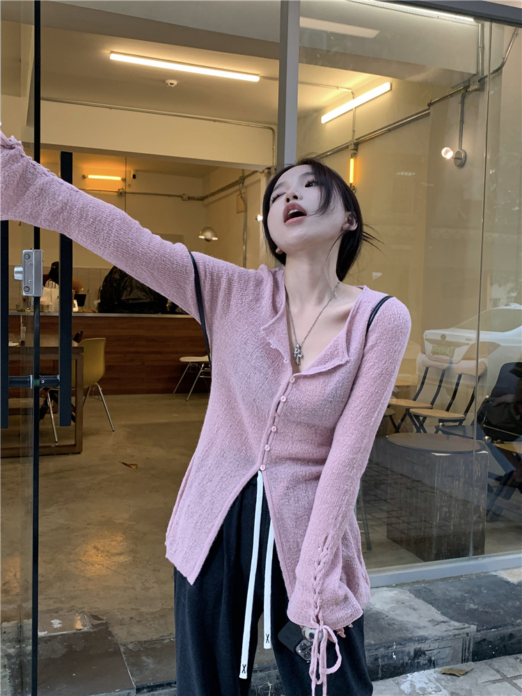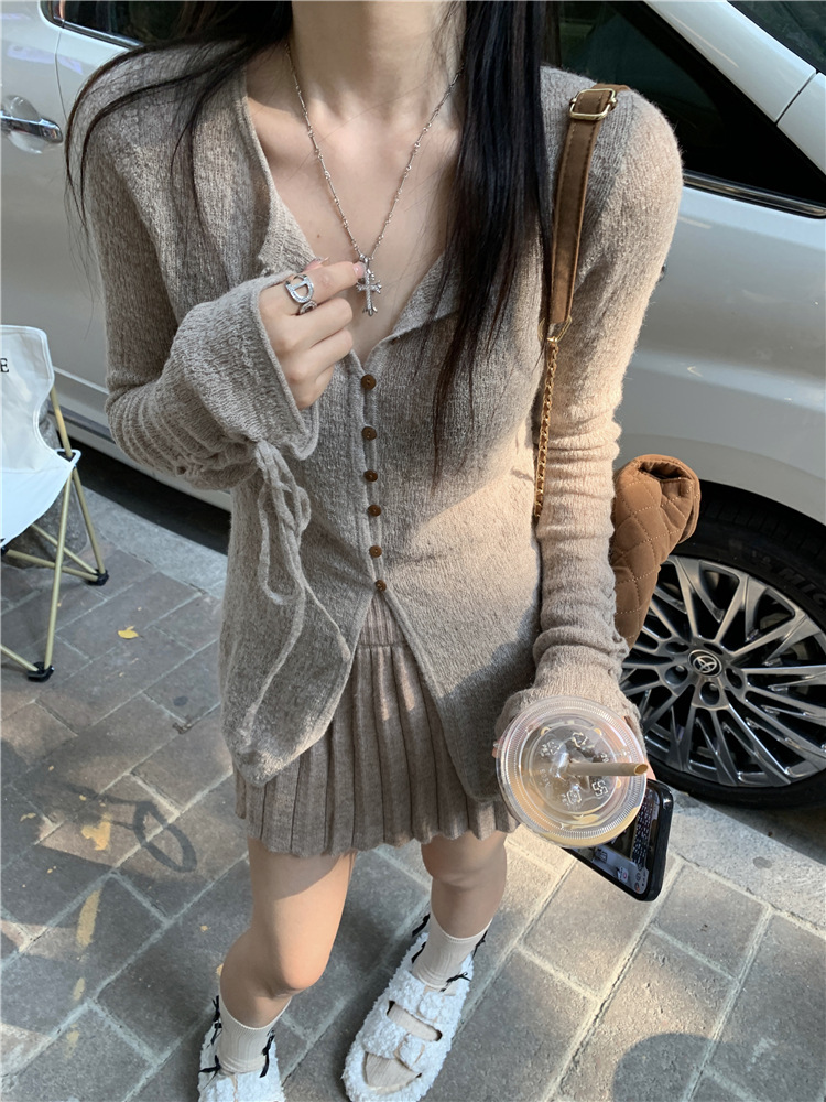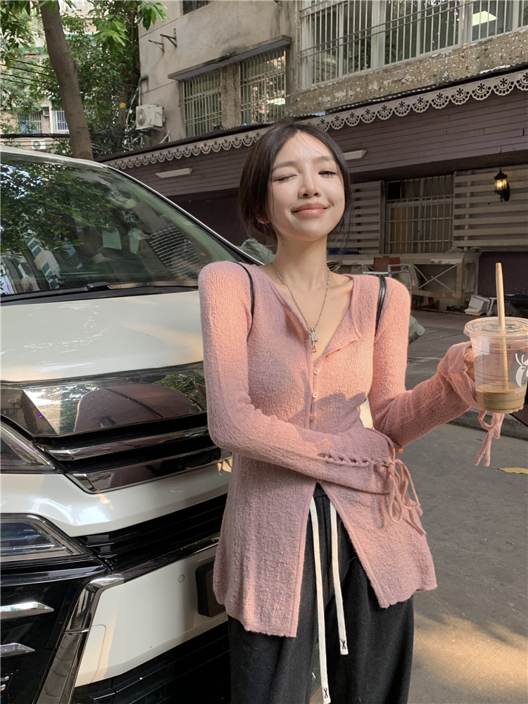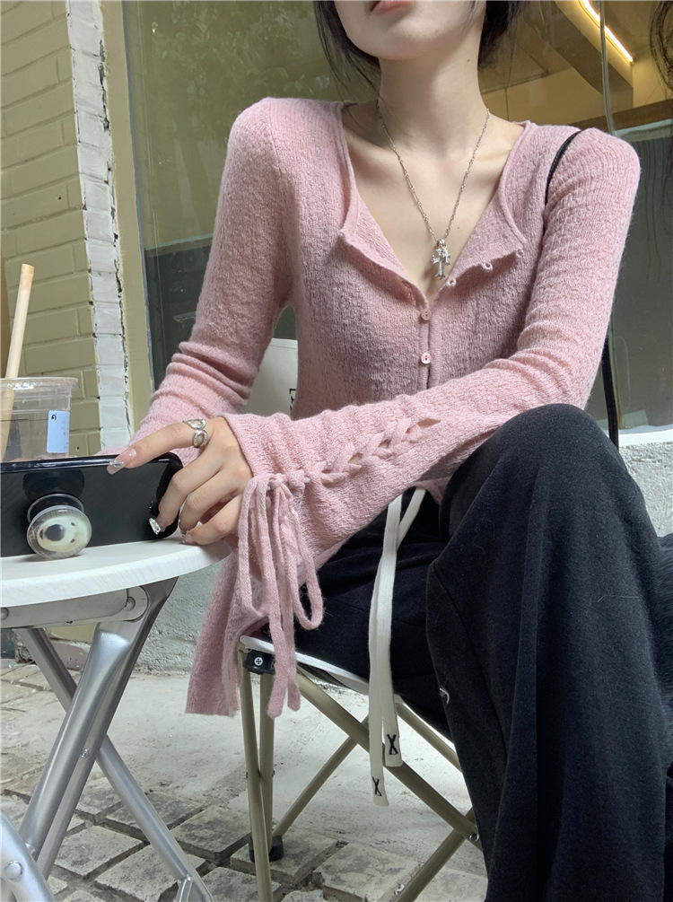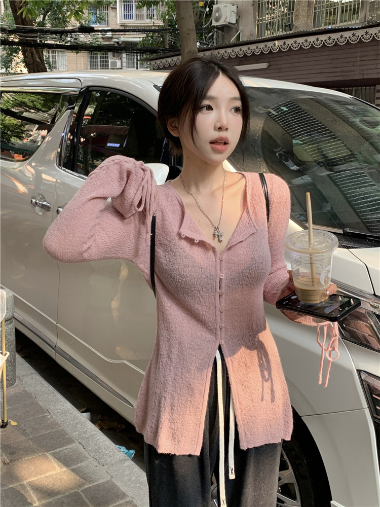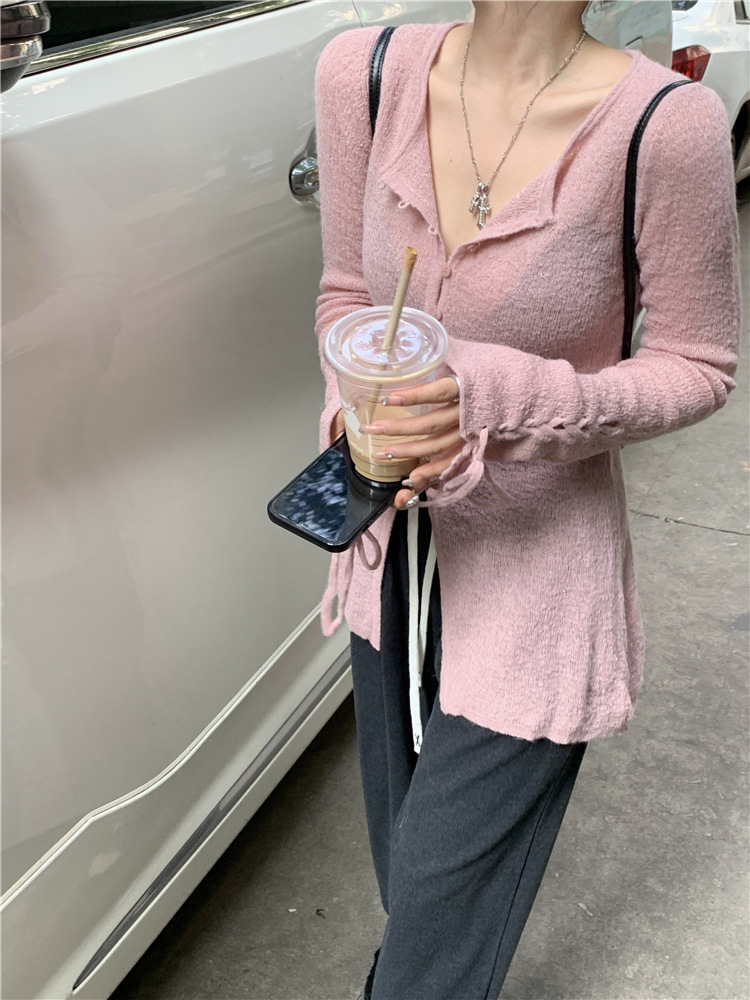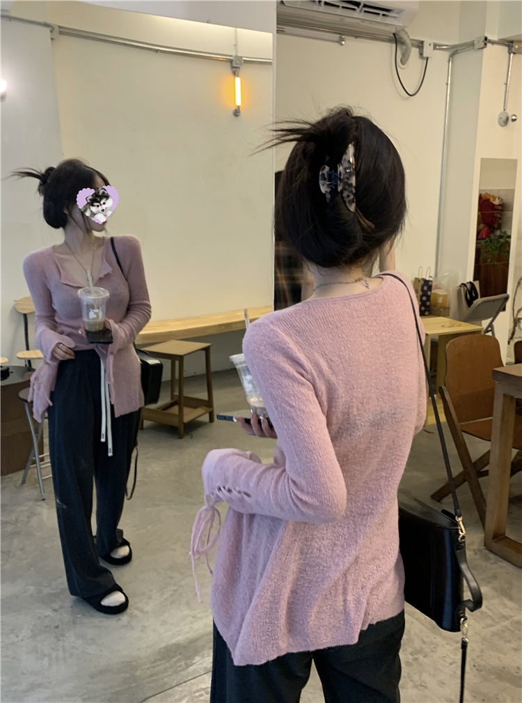 JMA-332 实拍 慵懒甜心薄款针织开衫女2023秋季设计感软软糯糯簿毛衣外套