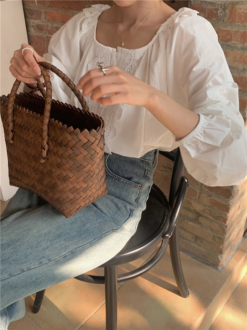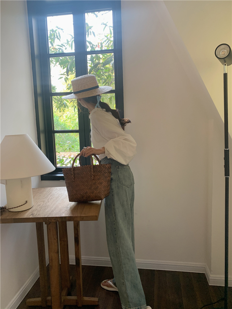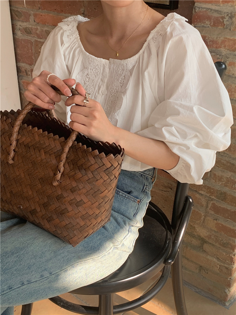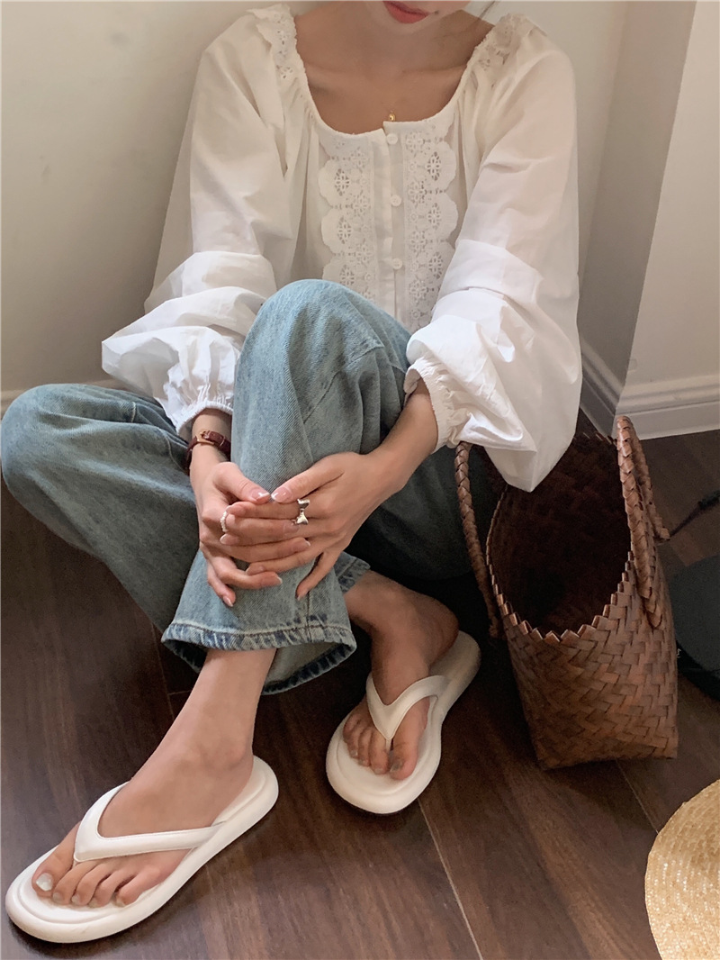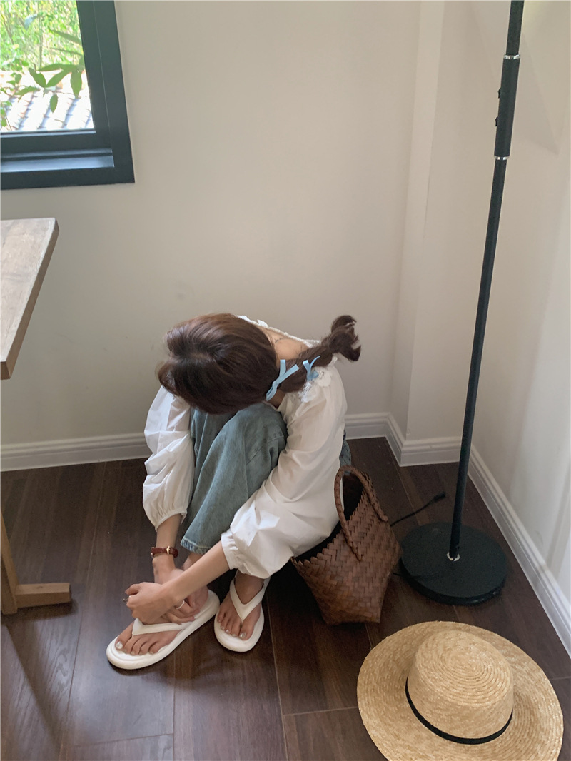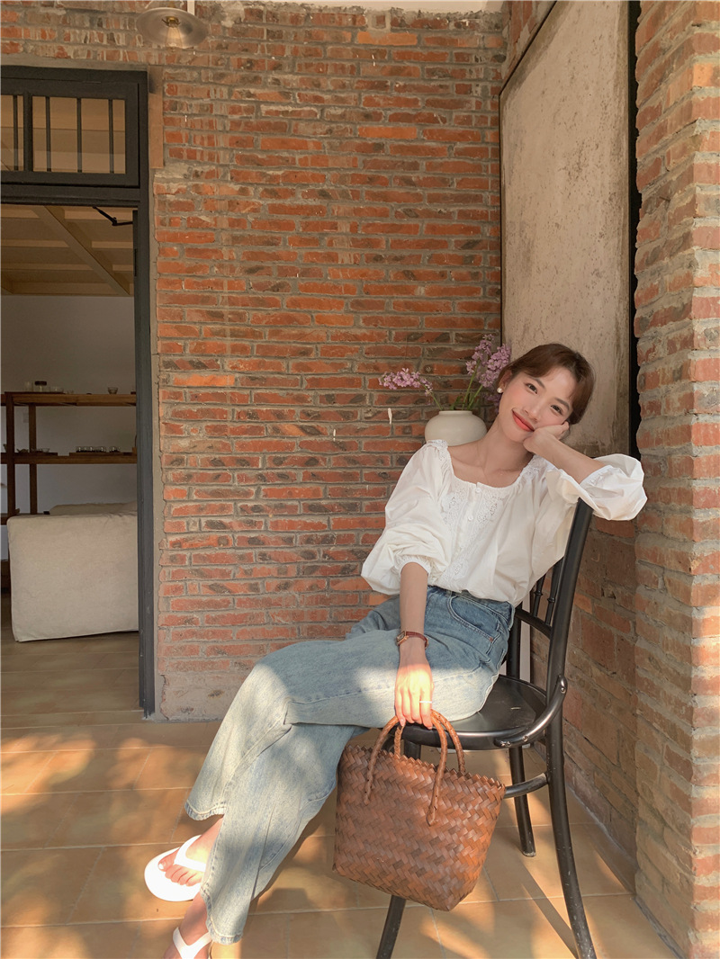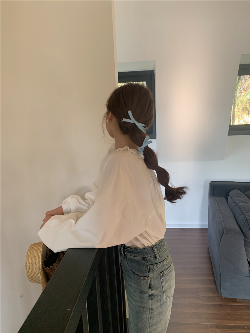 JMA-337 实拍2023秋季新款韩国甜美蕾丝边上衣减龄少女风方领白色长袖衬衫