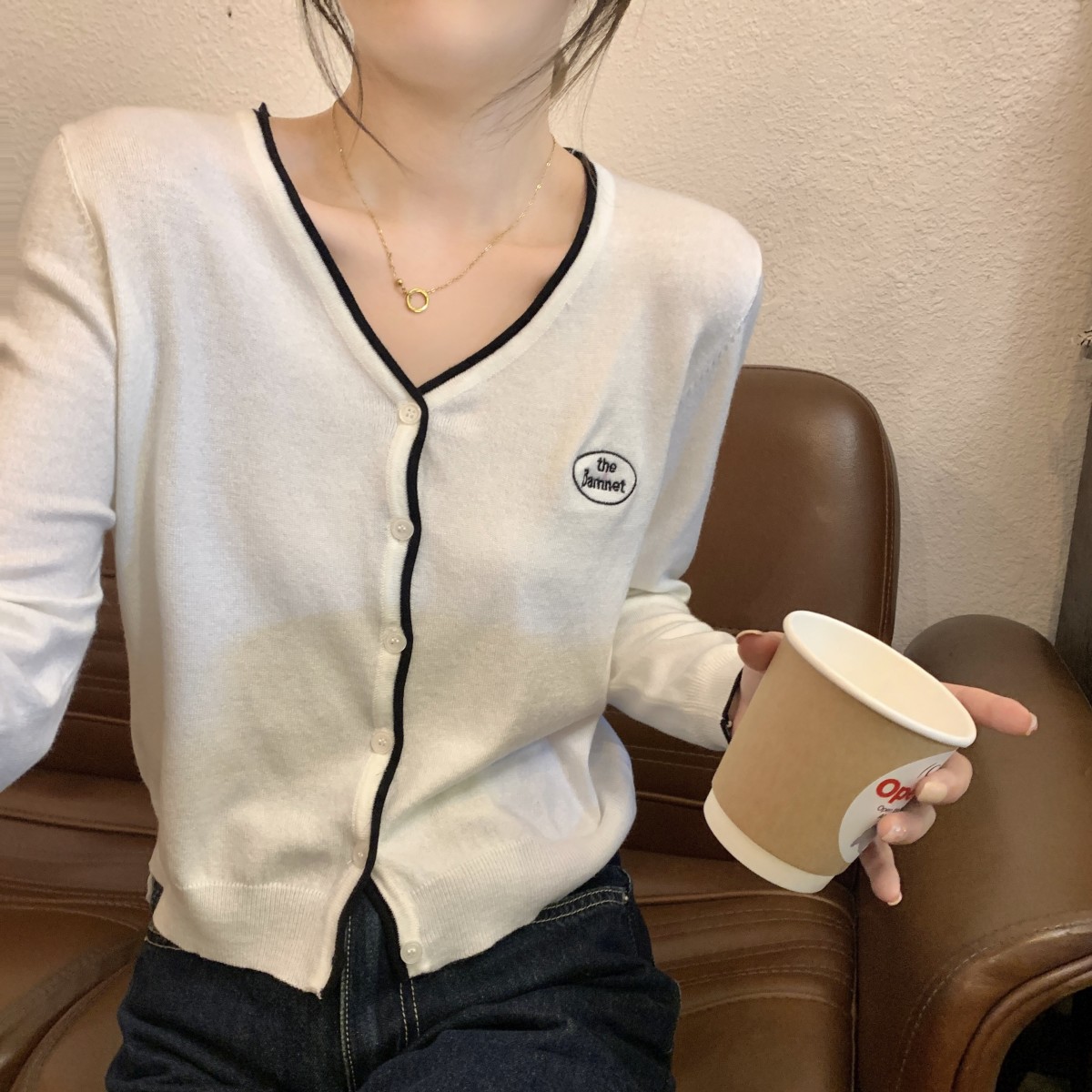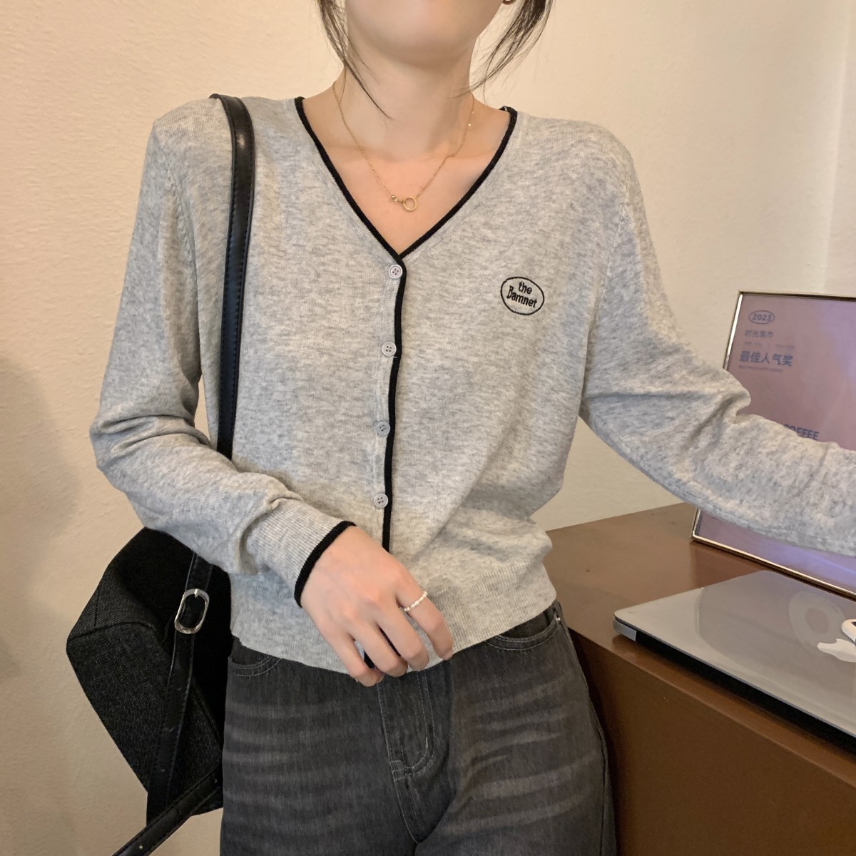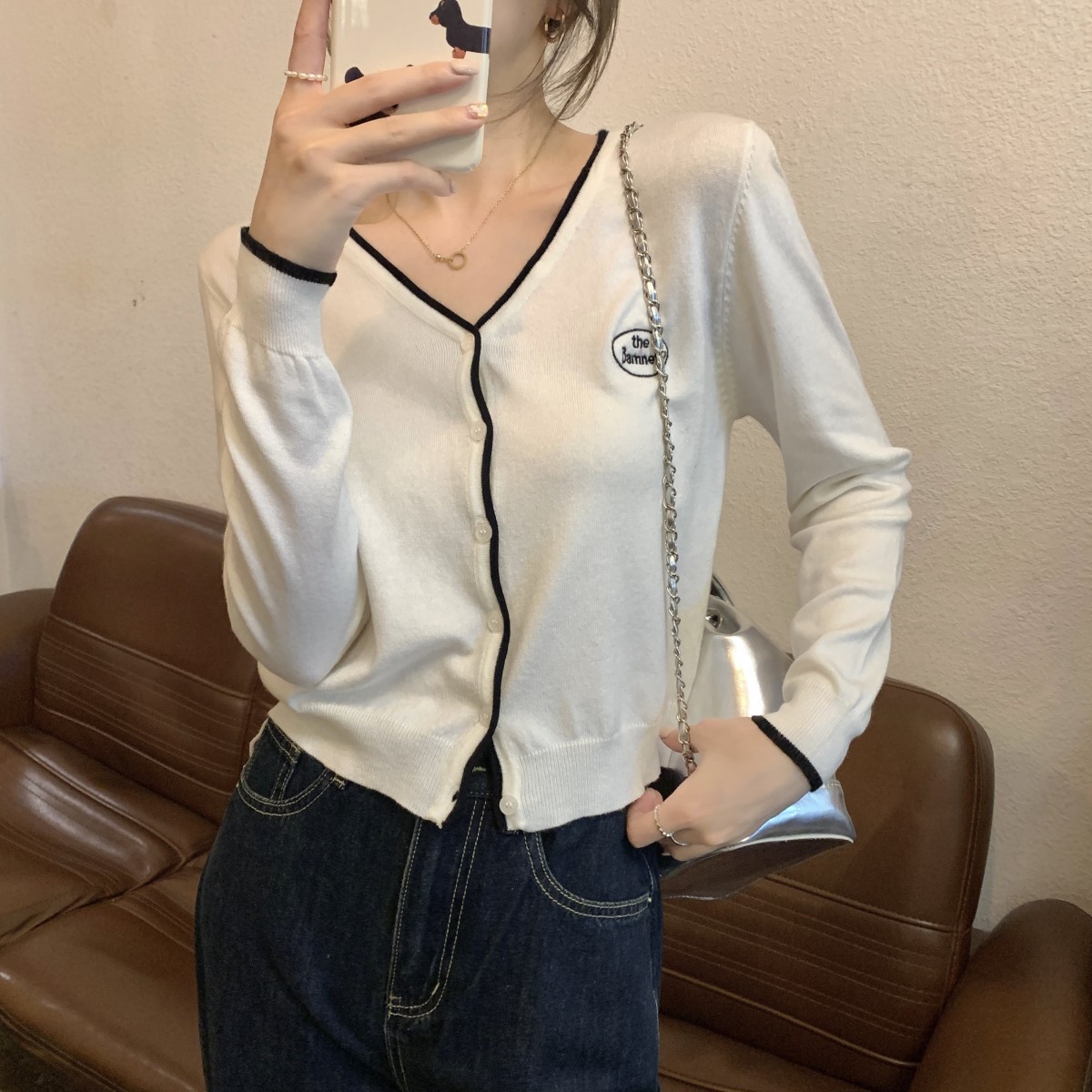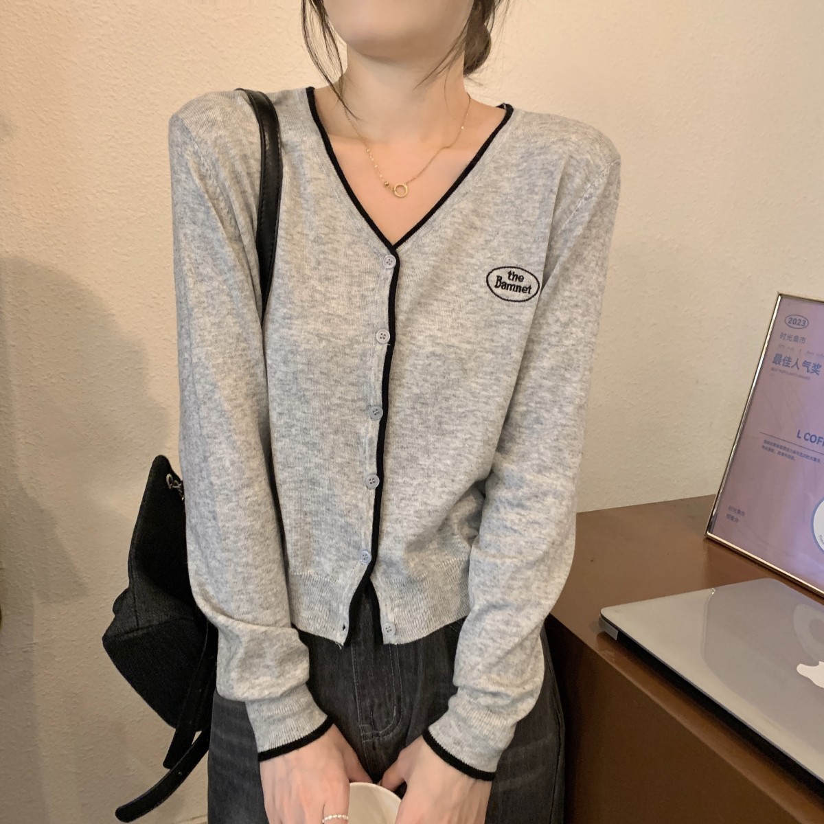 JMA-338 实拍 2023秋季新款韩版v领撞色气质V领针织长袖开衫女簿毛衣外套