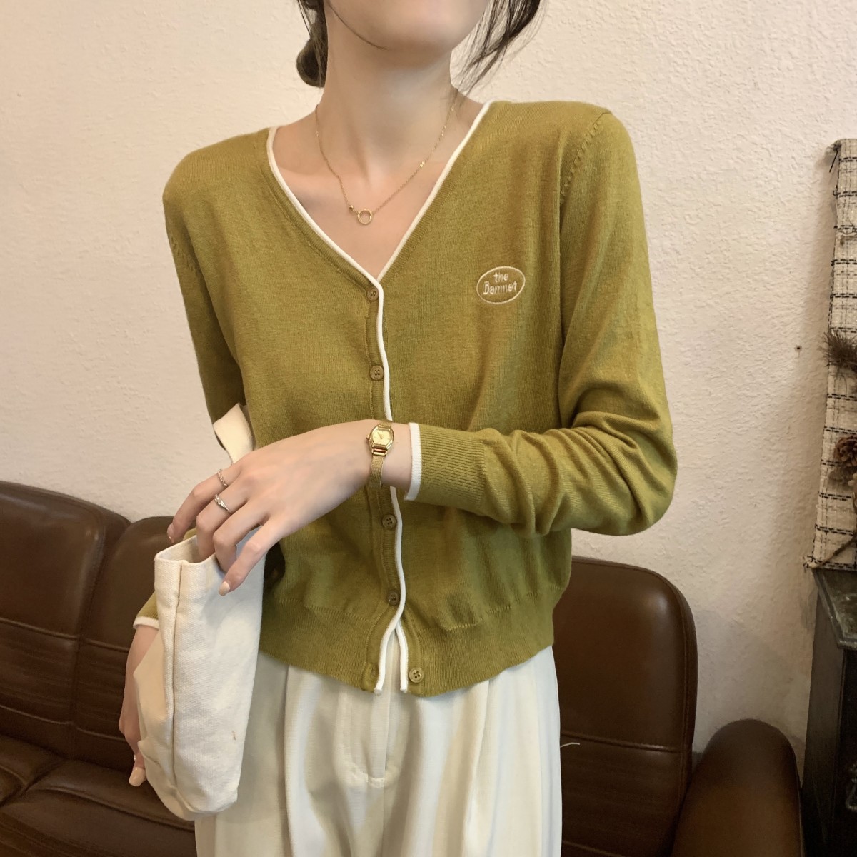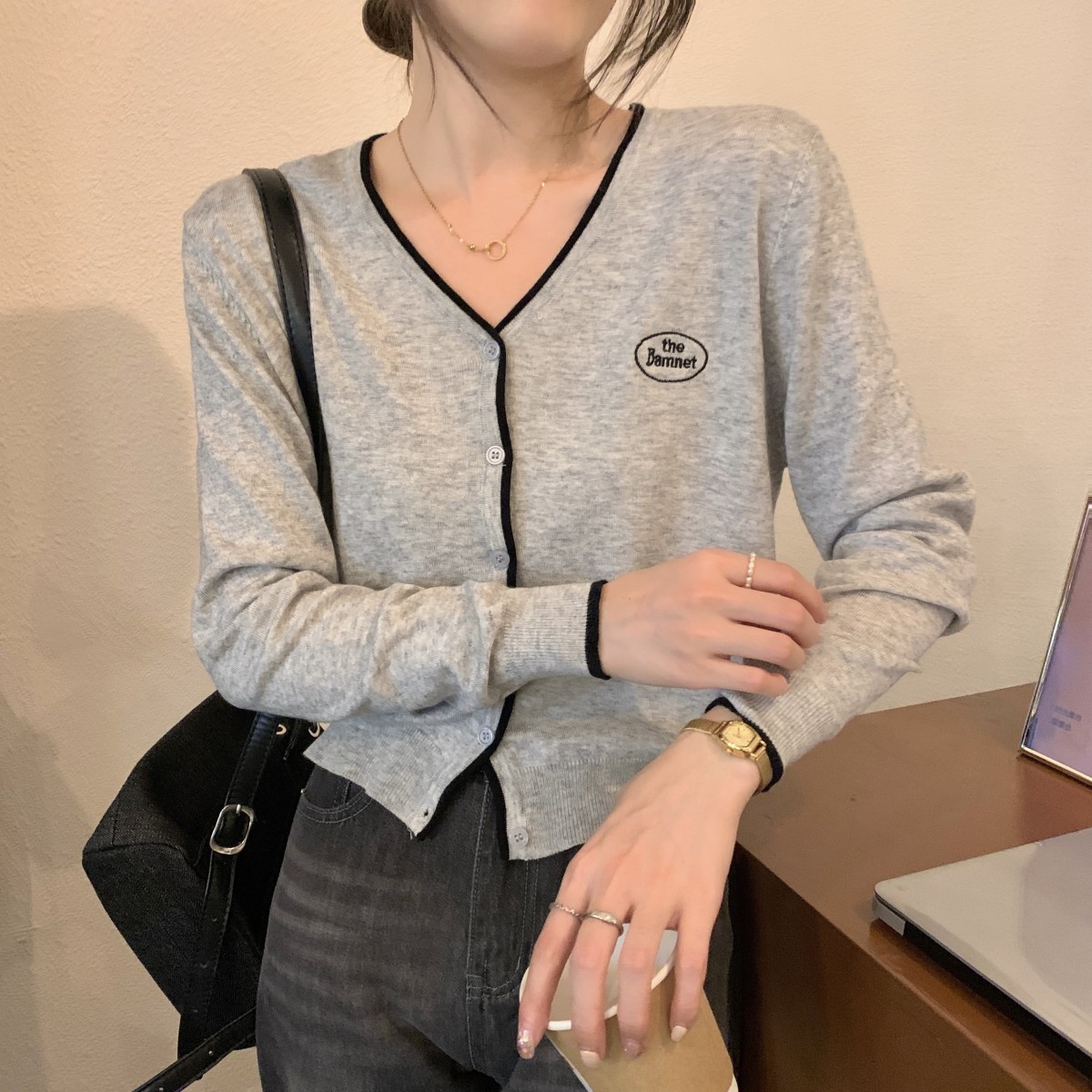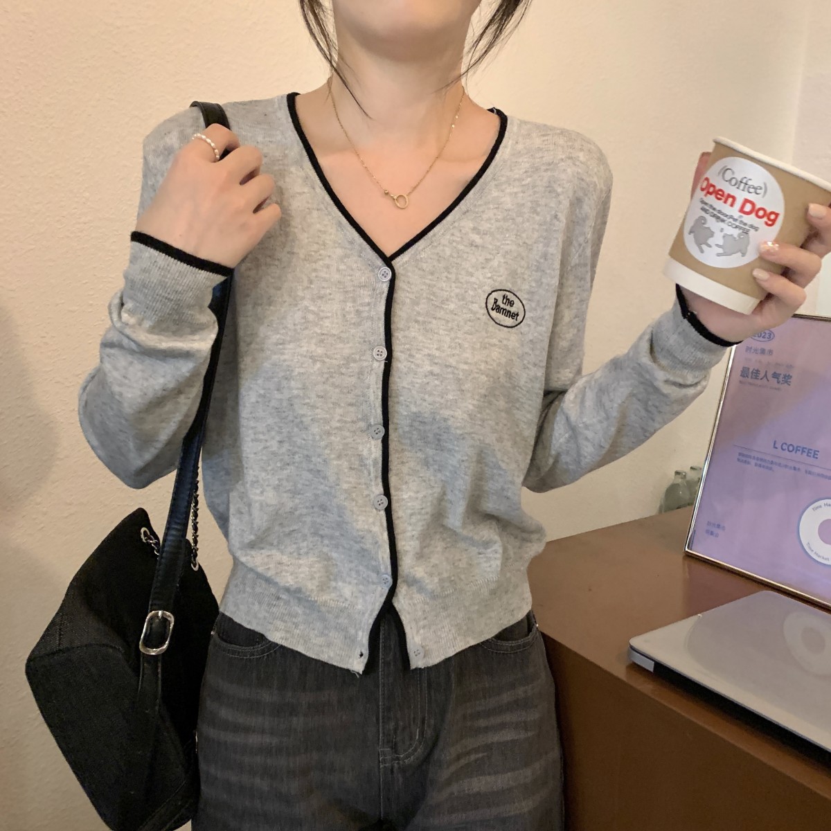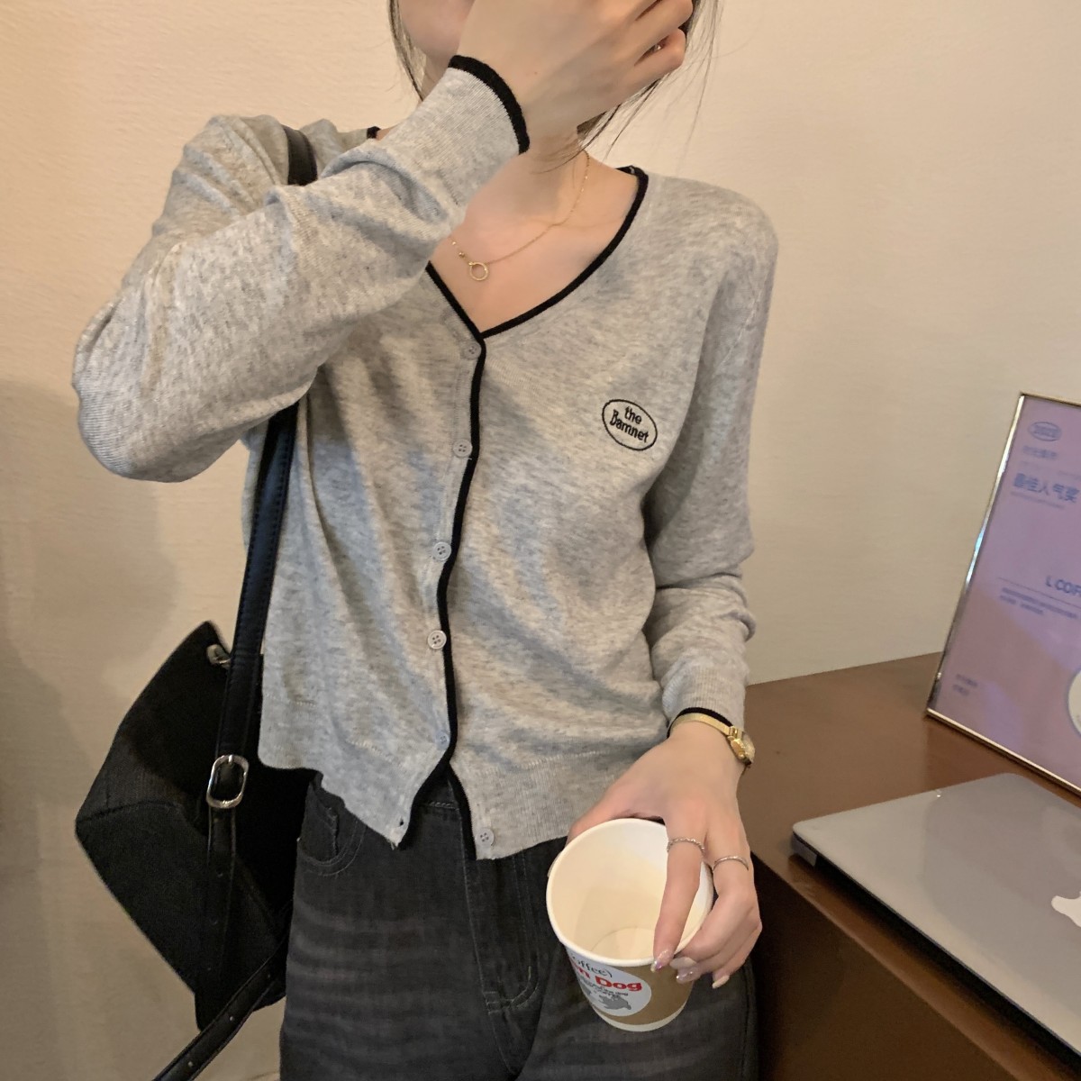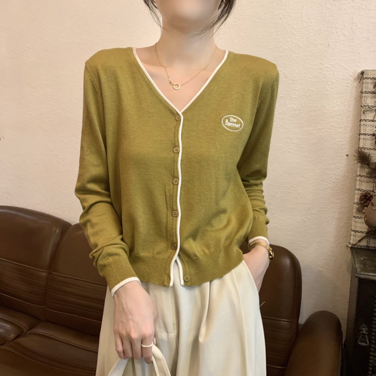 JMA-338 实拍 2023秋季新款韩版v领撞色气质V领针织长袖开衫女簿毛衣外套