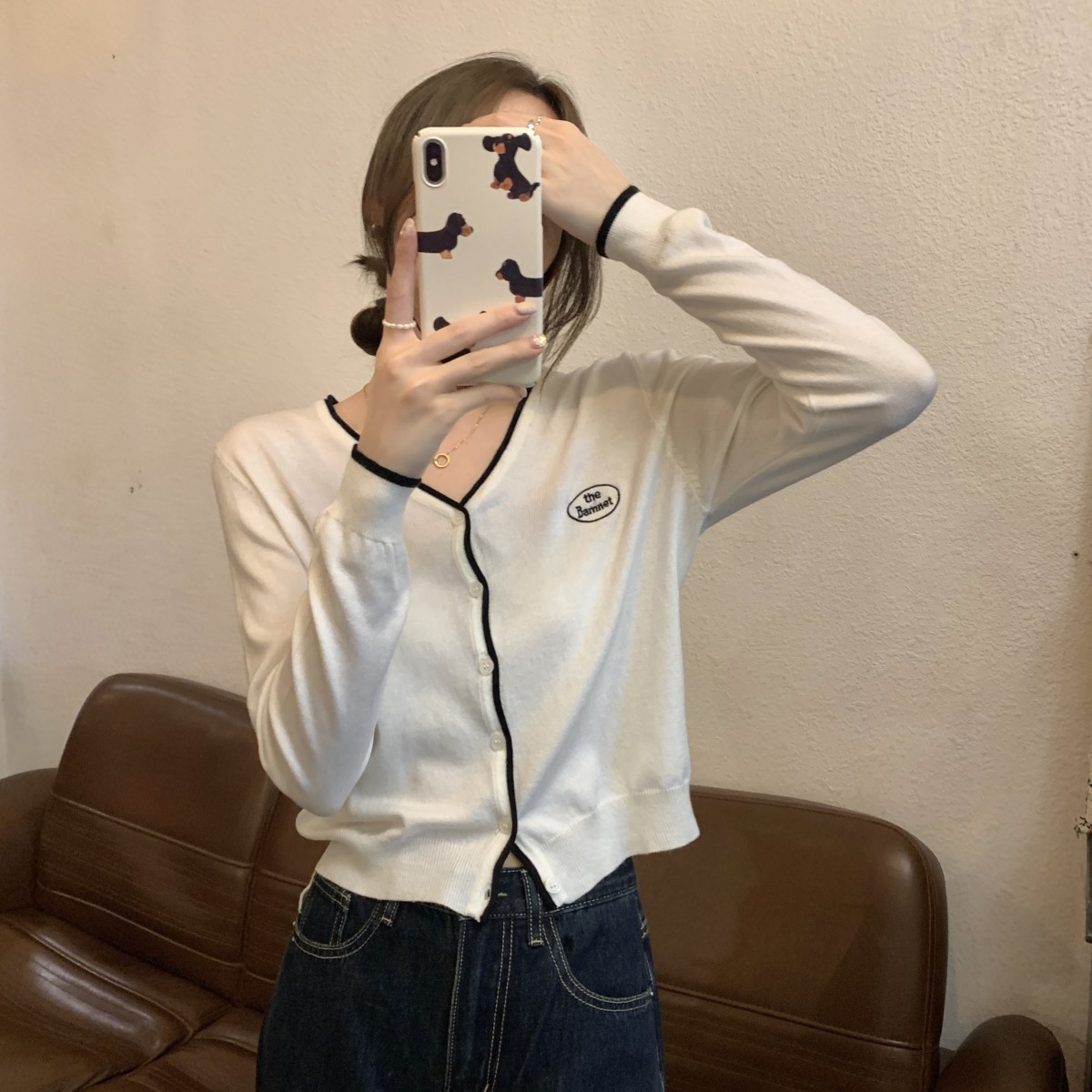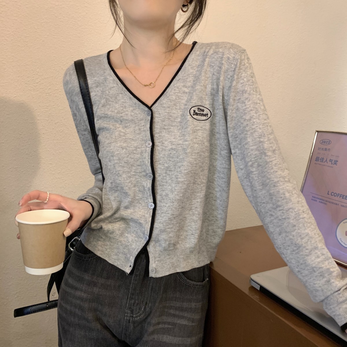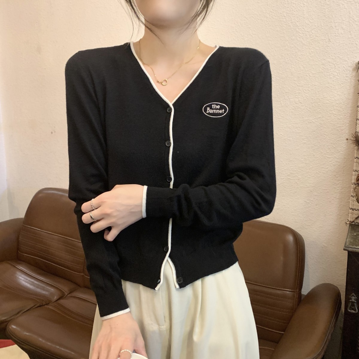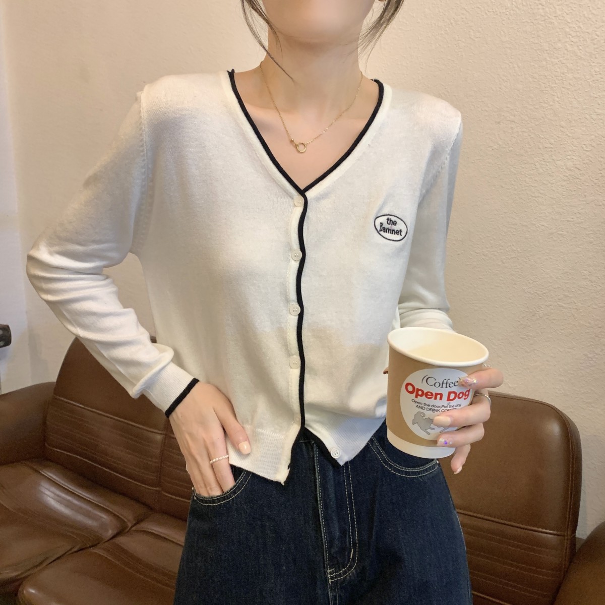 JMA-338 实拍 2023秋季新款韩版v领撞色气质V领针织长袖开衫女簿毛衣外套