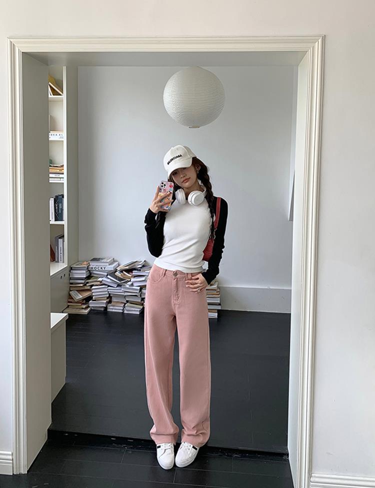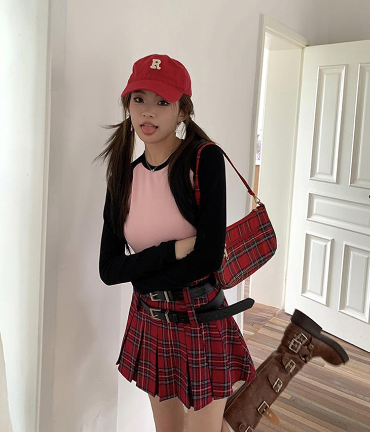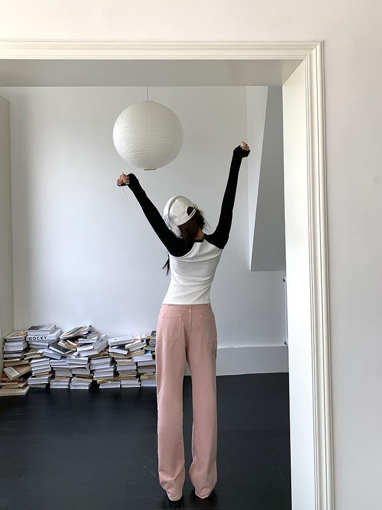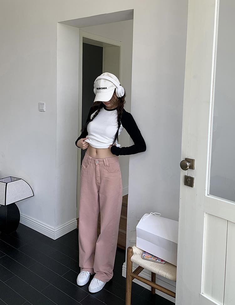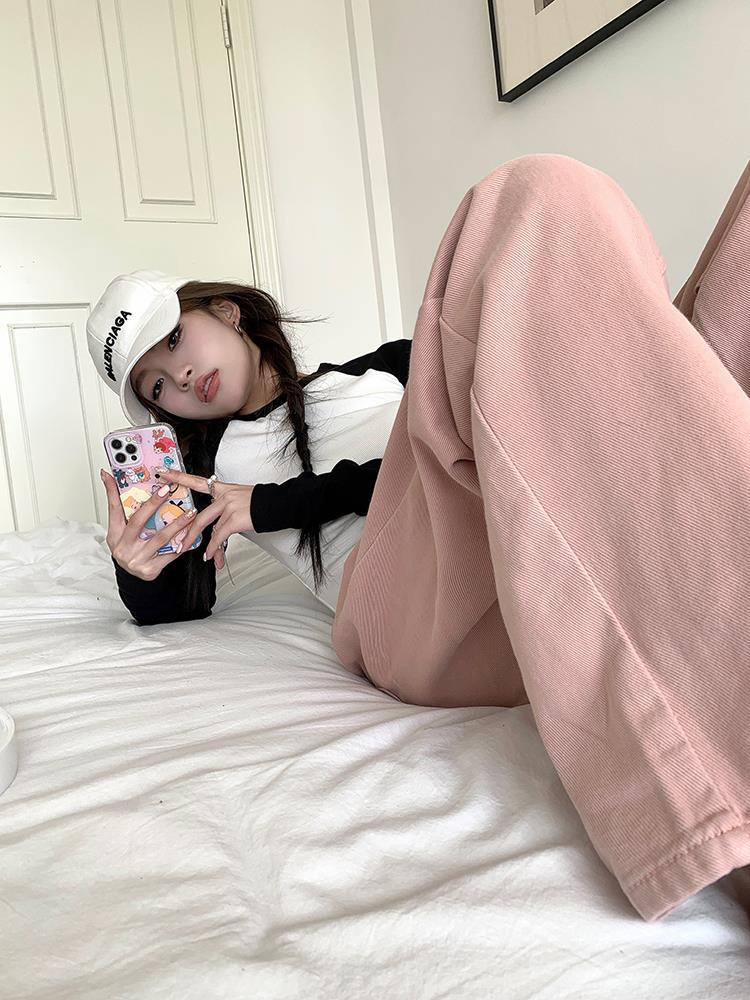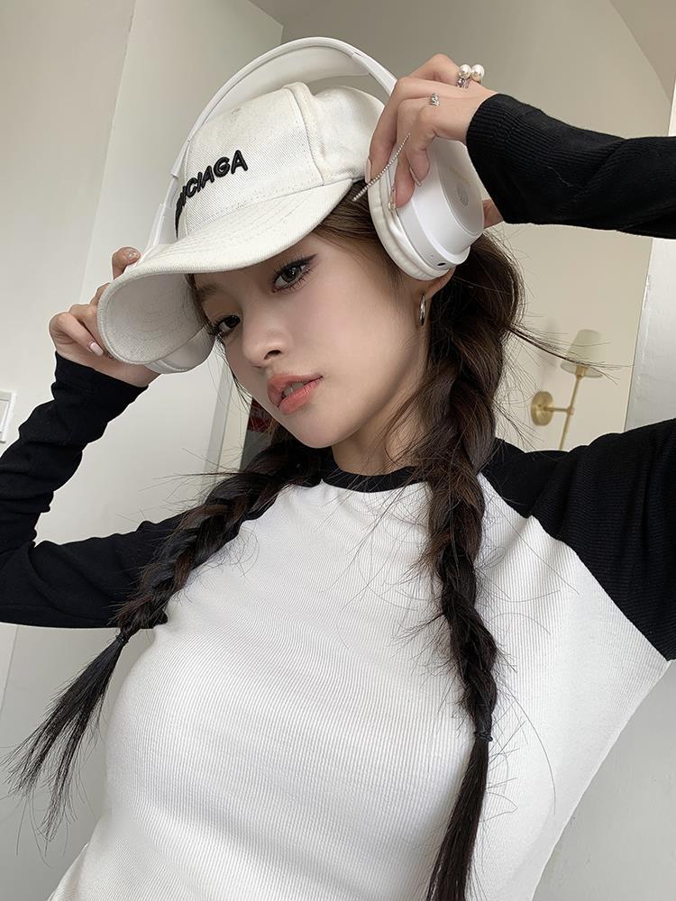 JMA-339 实拍 初秋韩系圆领拼色休闲插肩袖长袖T恤甜辣风休闲撞色百搭上衣