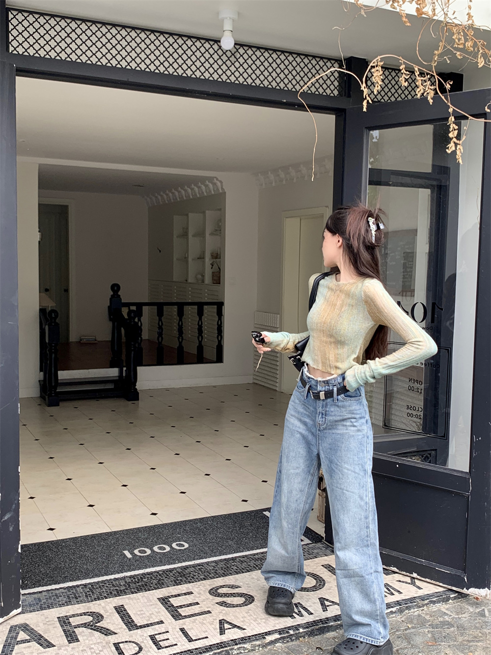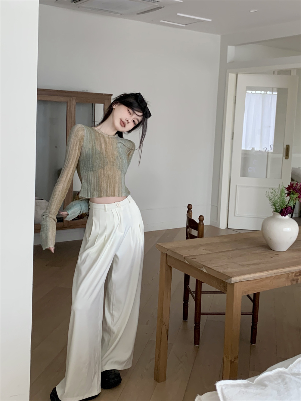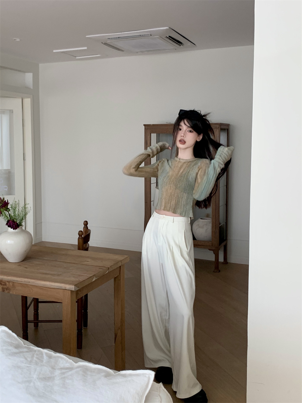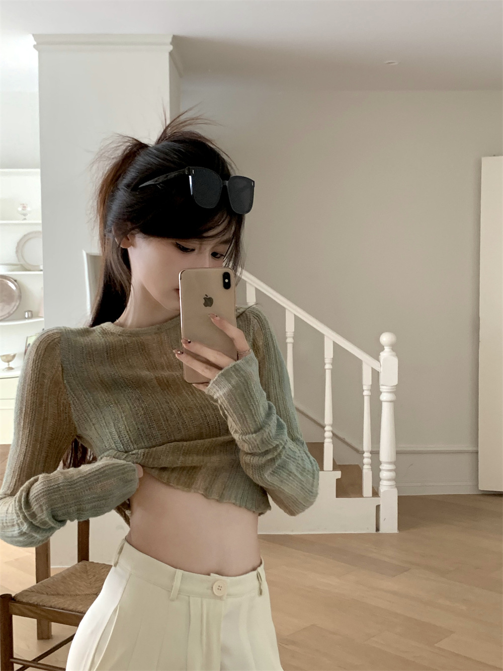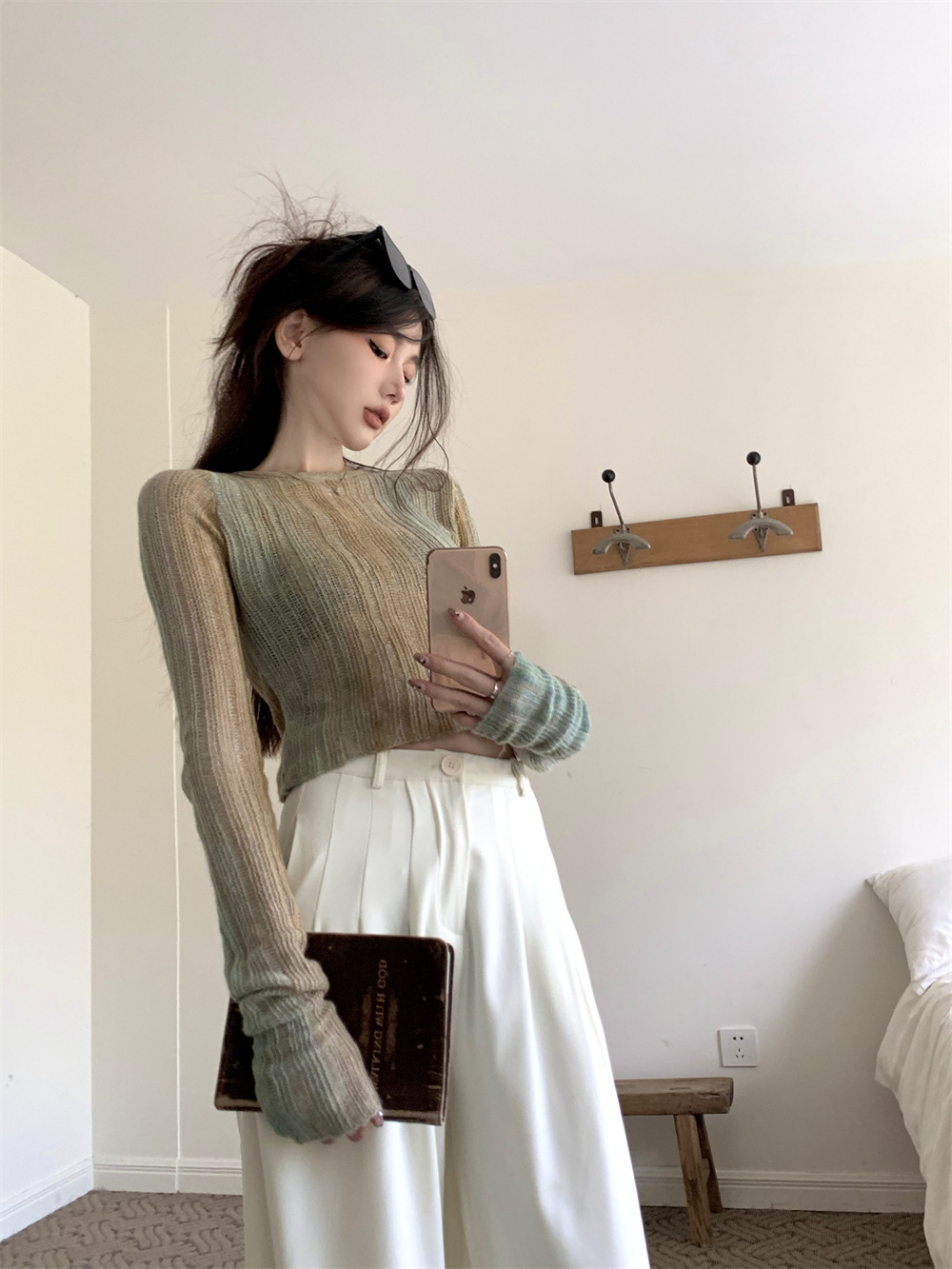 JMA-342 初秋季韩版设计感小众圆领渐变短款甜辣风修身显瘦百搭长袖针织衫