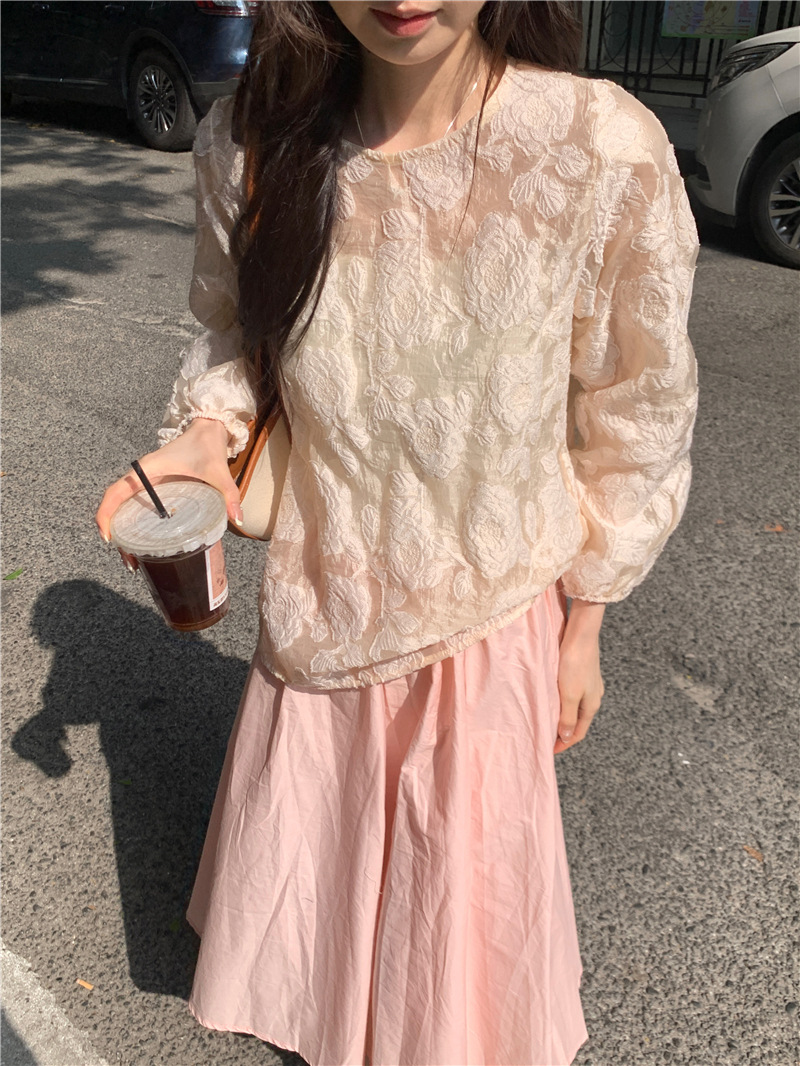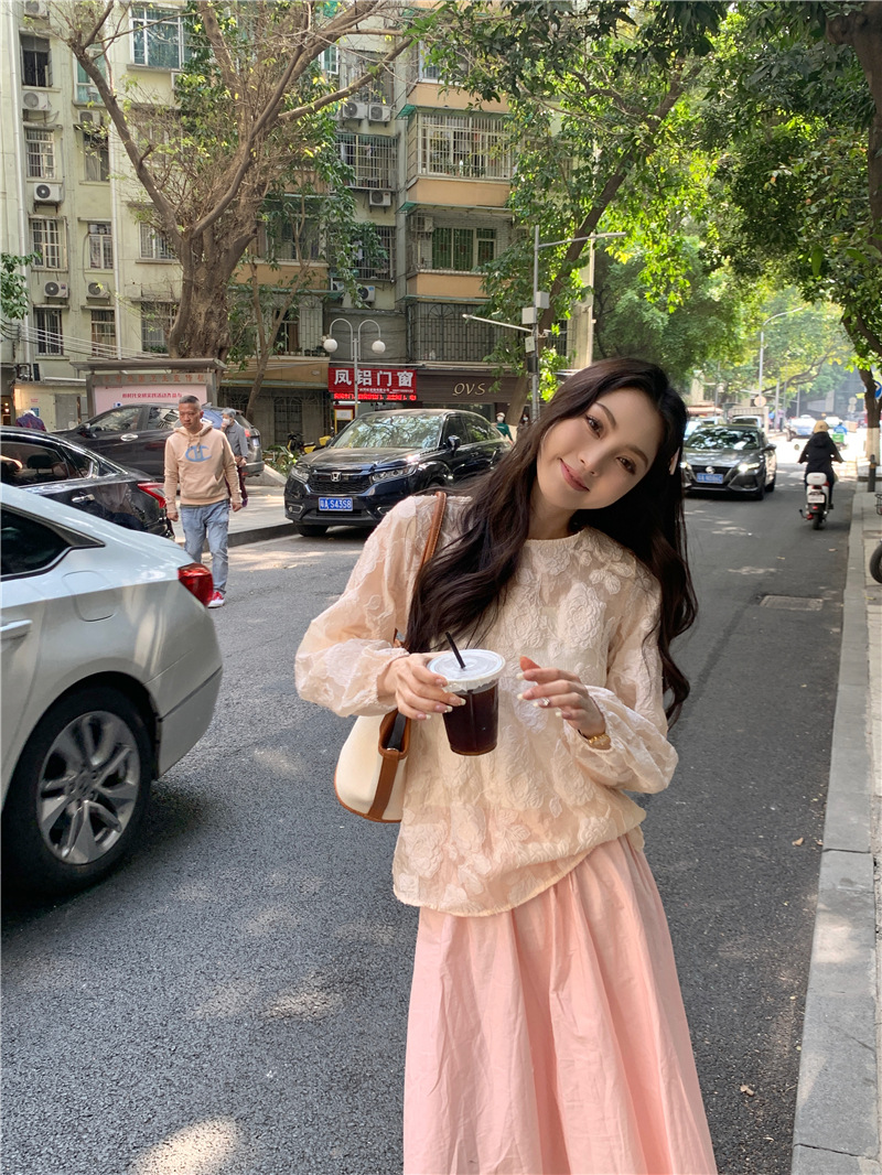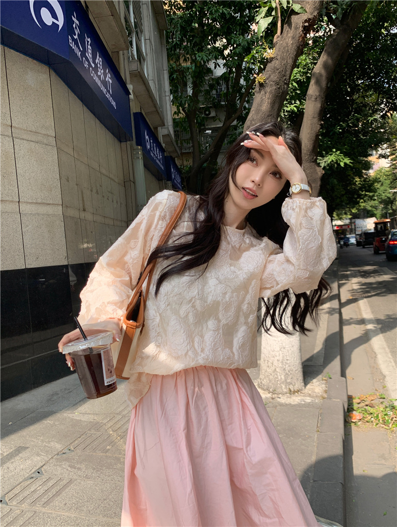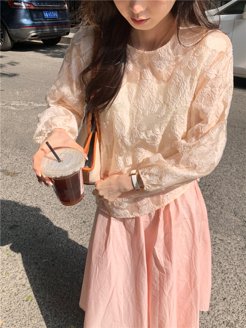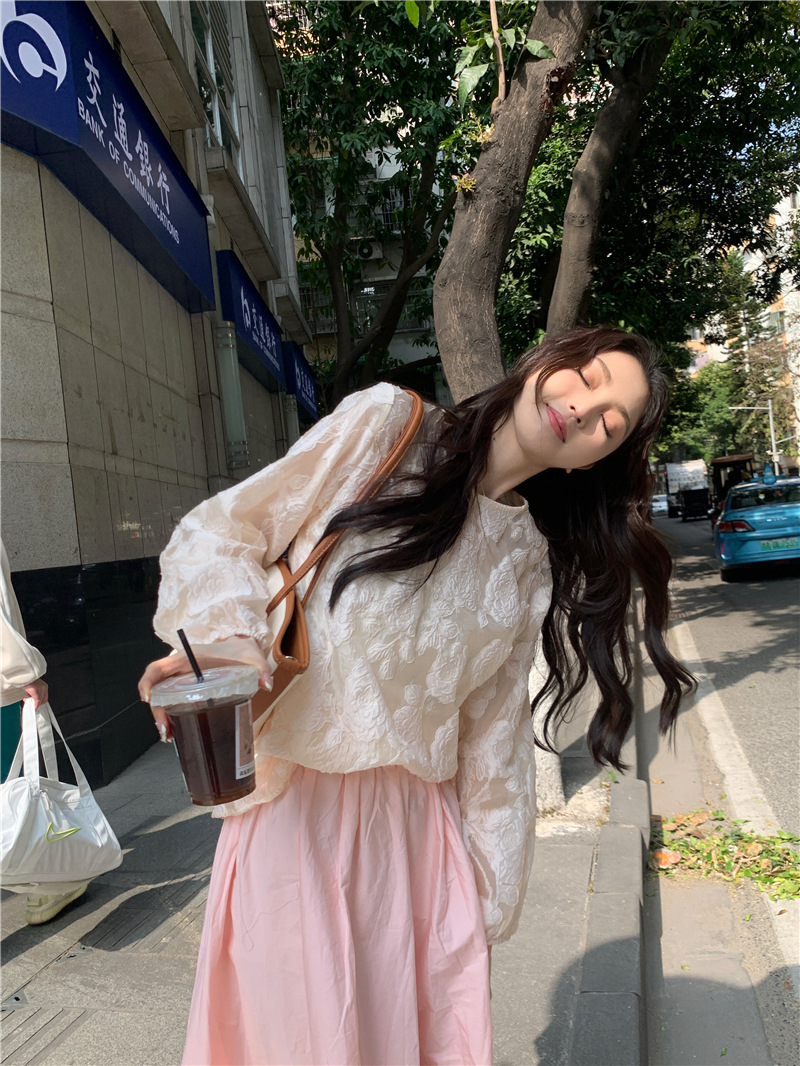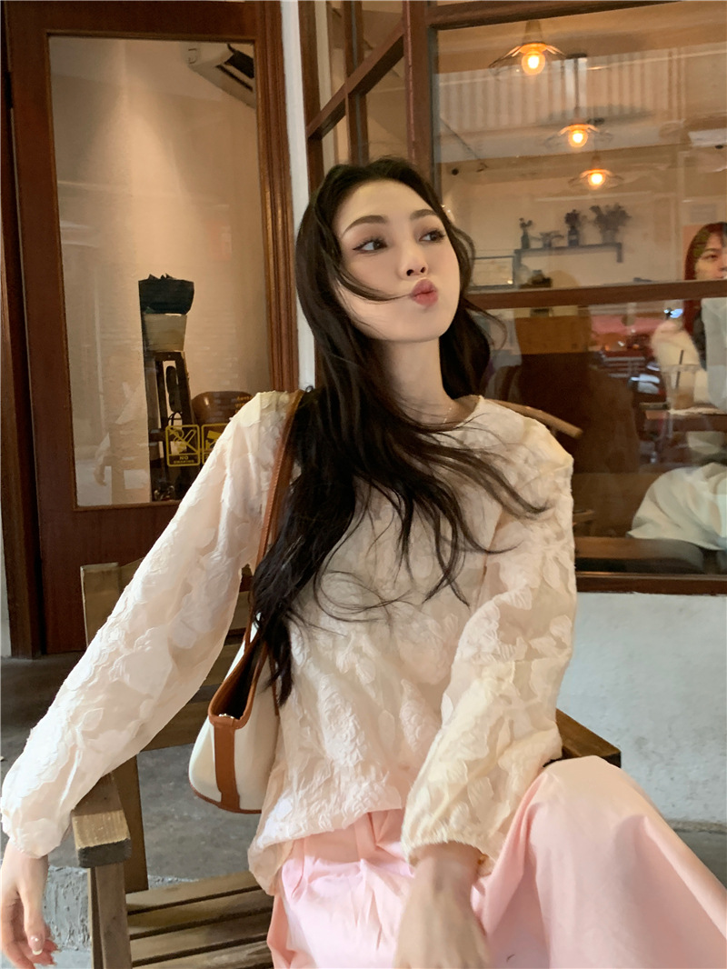JMA-347 实拍 2023秋季韩版温柔气质立体雕花设计感小众别致套头长袖衬衫