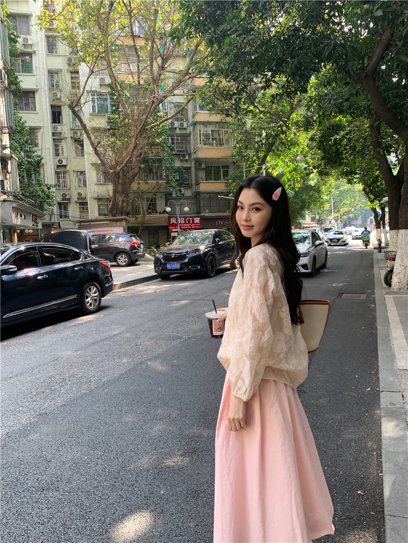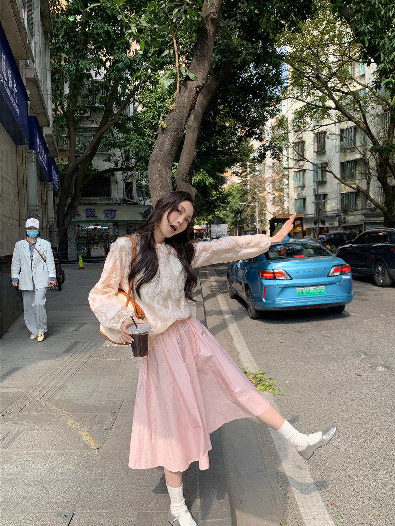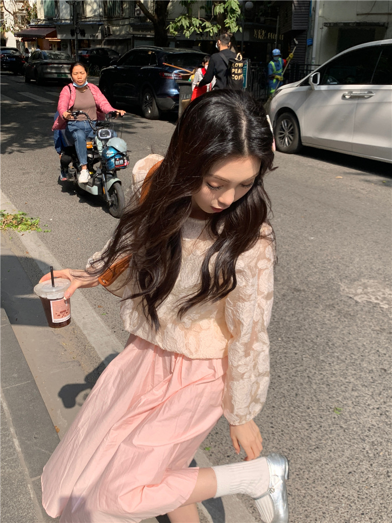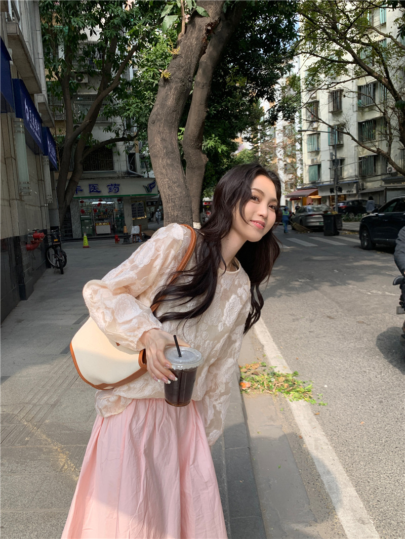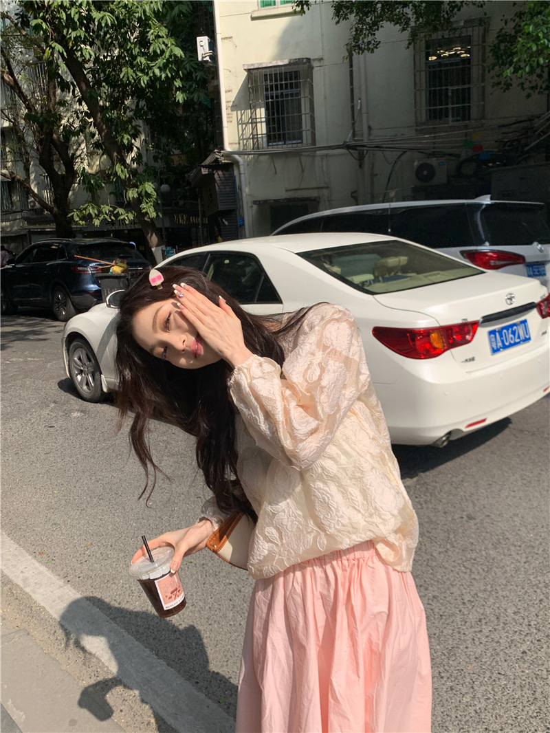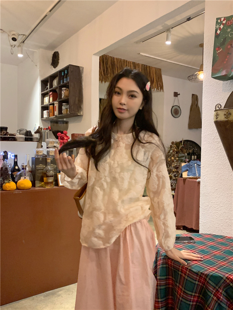 JMA-347 实拍 2023秋季韩版温柔气质立体雕花设计感小众别致套头长袖衬衫