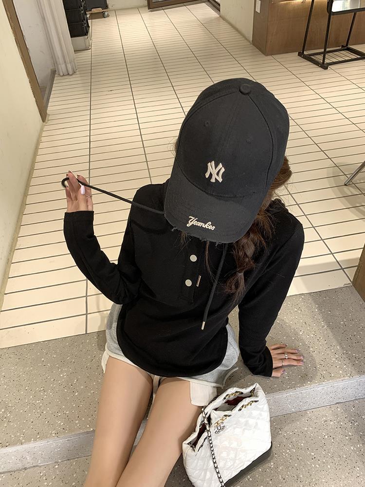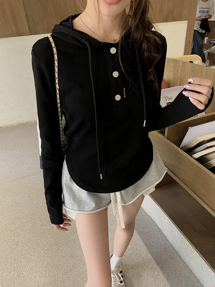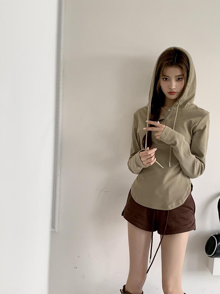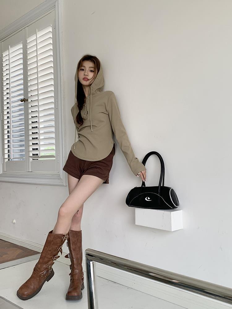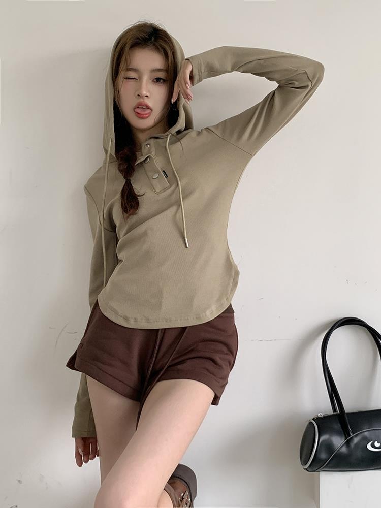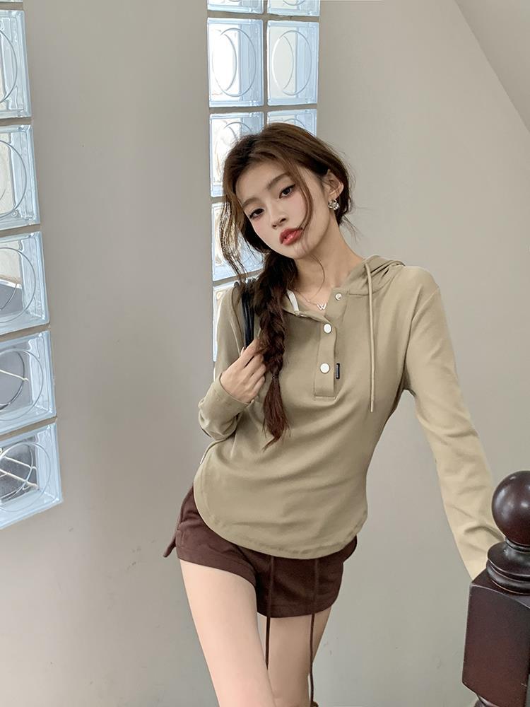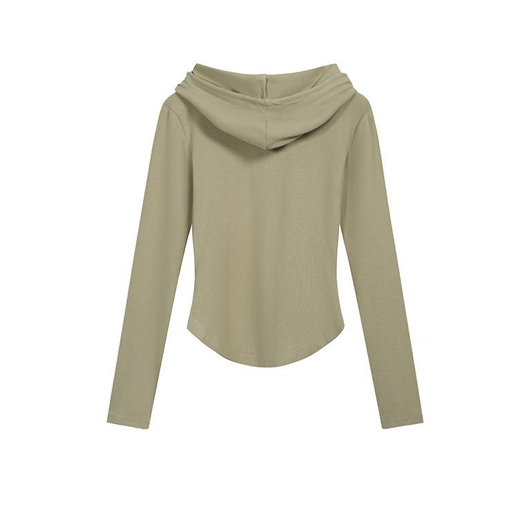 JMA-349 实拍 2023秋装新款韩系休闲卫衣女气质打底上衣短款修身连帽t恤潮