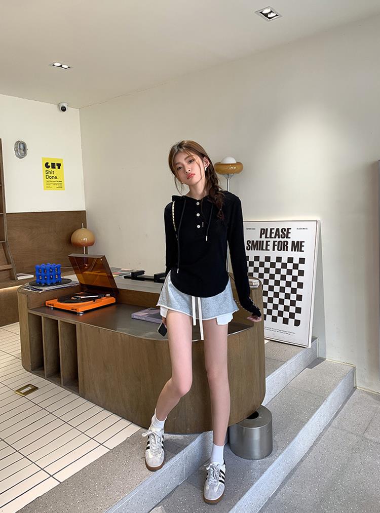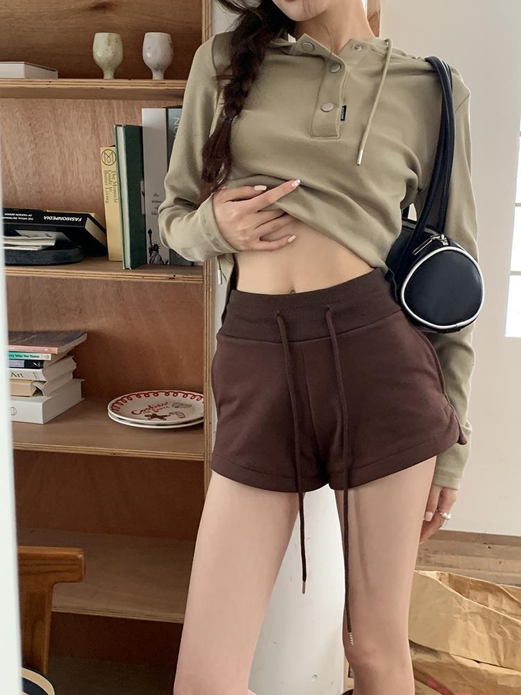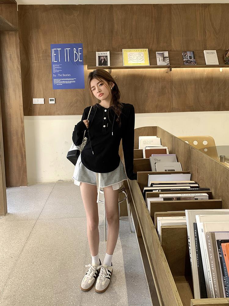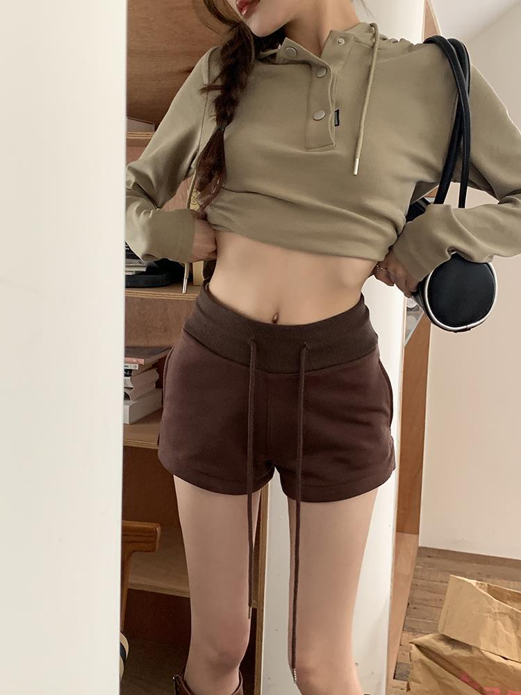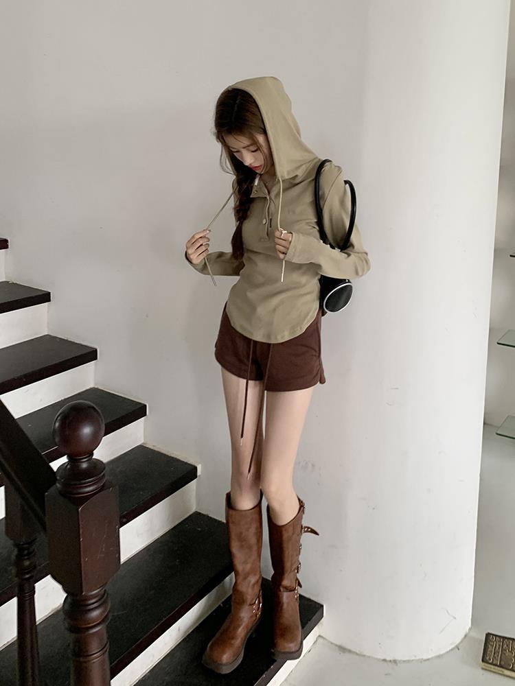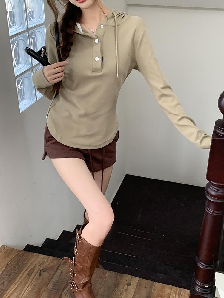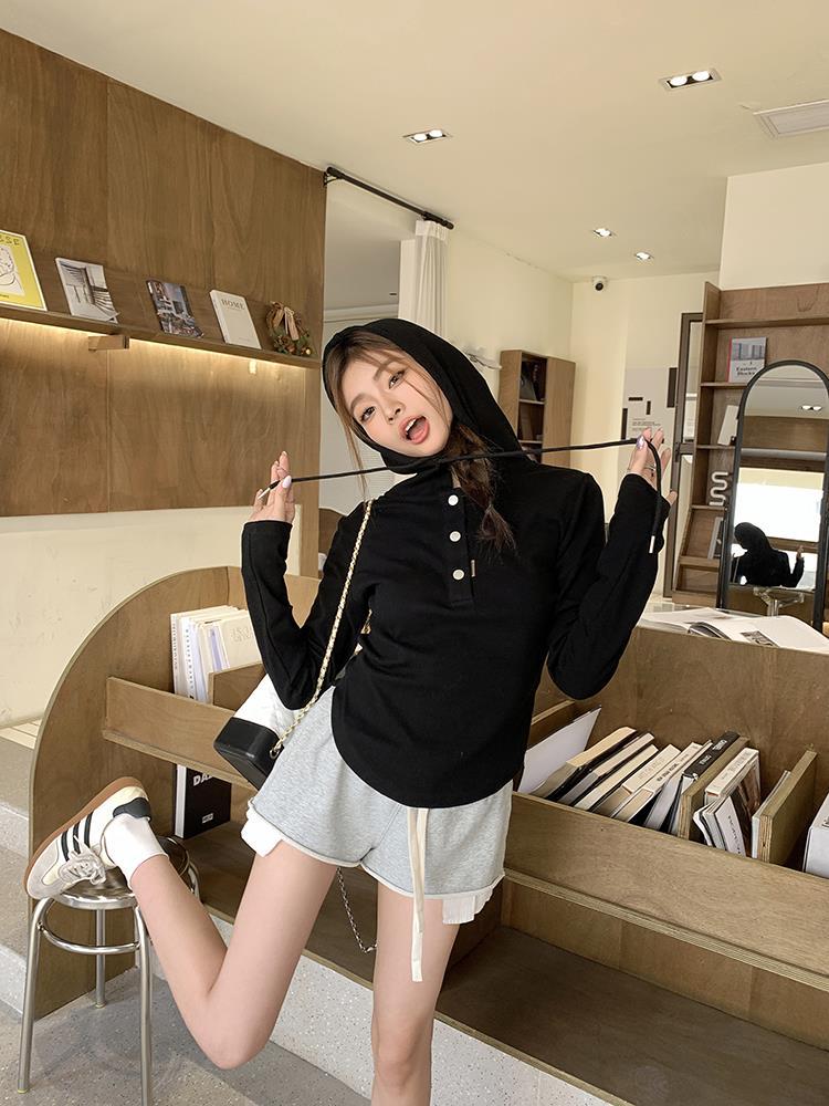 JMA-349 实拍 2023秋装新款韩系休闲卫衣女气质打底上衣短款修身连帽t恤潮