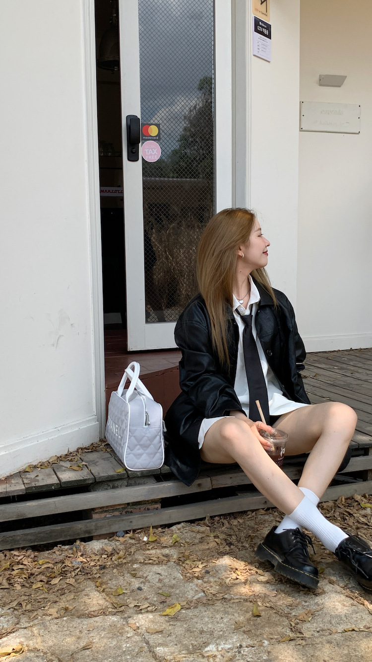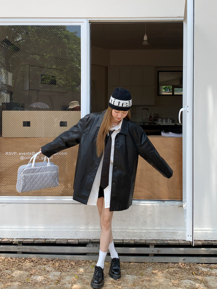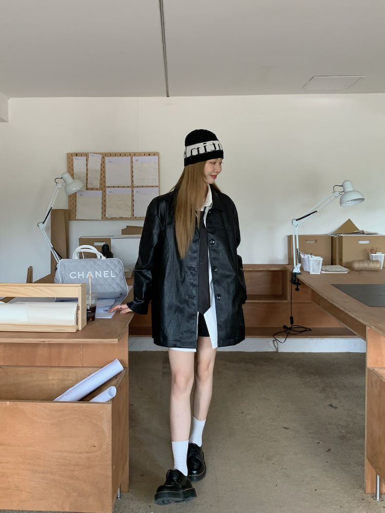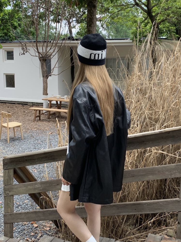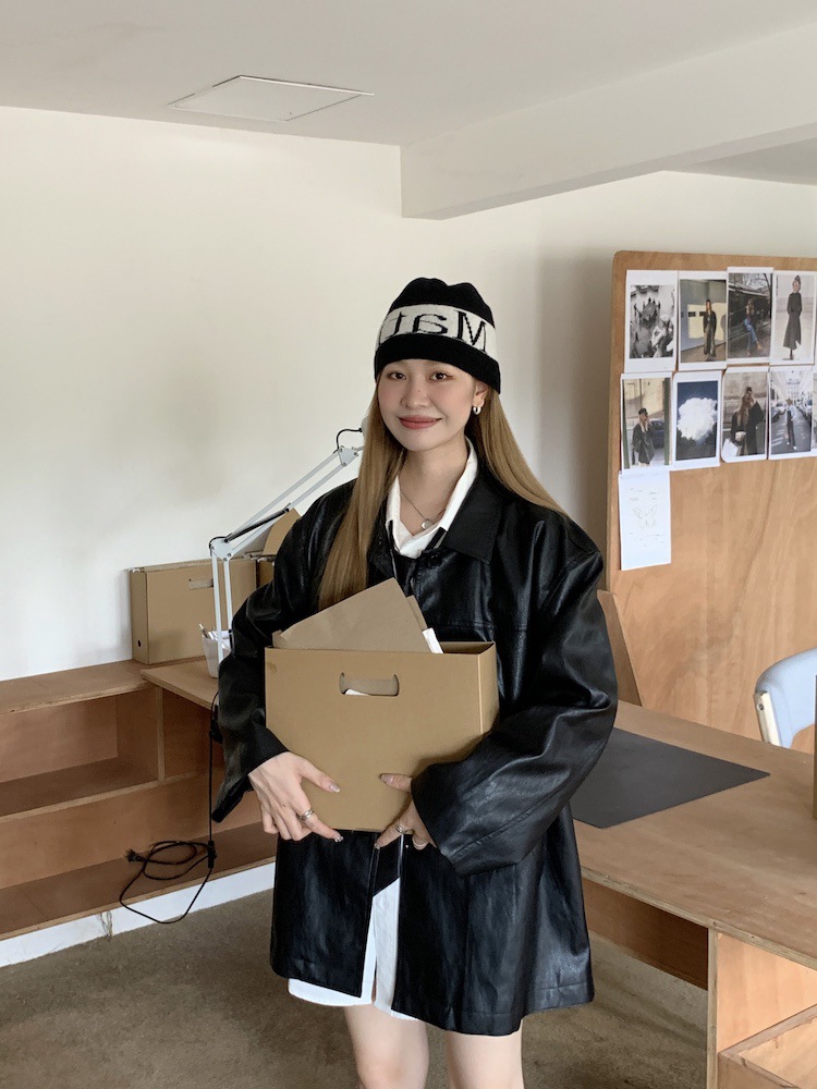 JMA-357 实拍 2023秋季新款韩系中长款pu皮外套女甜苦学姐风皮风衣上 衣潮