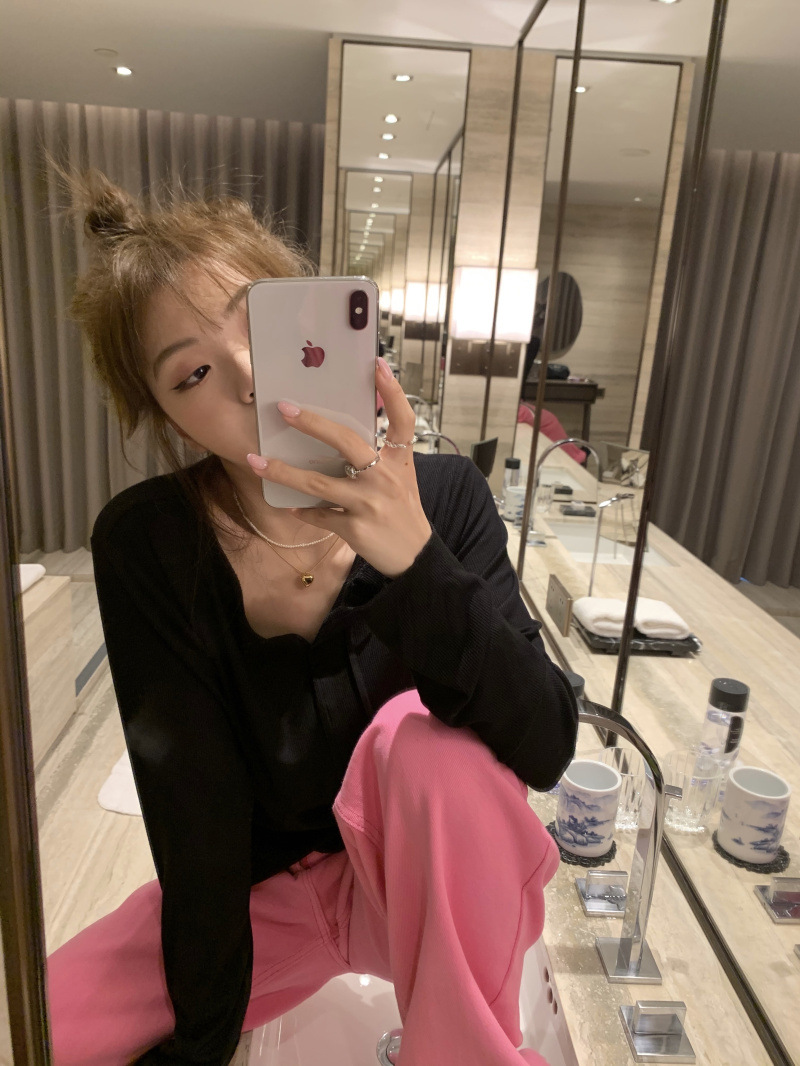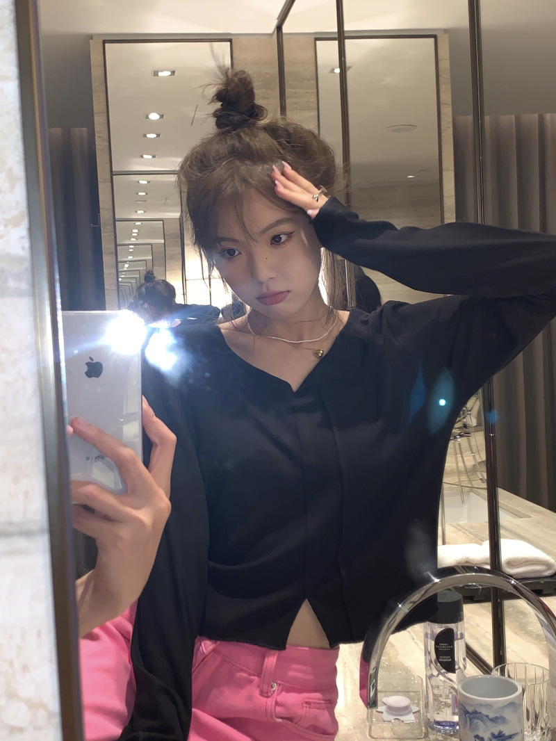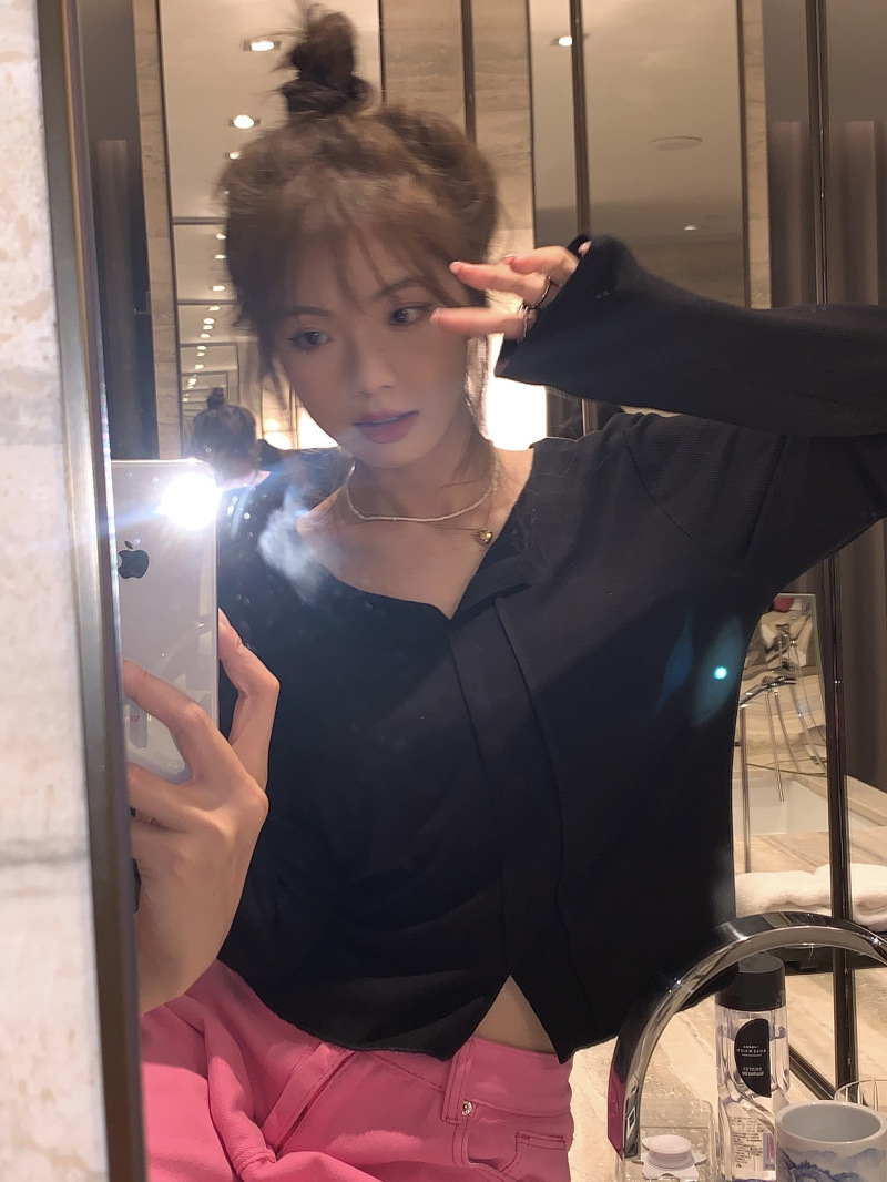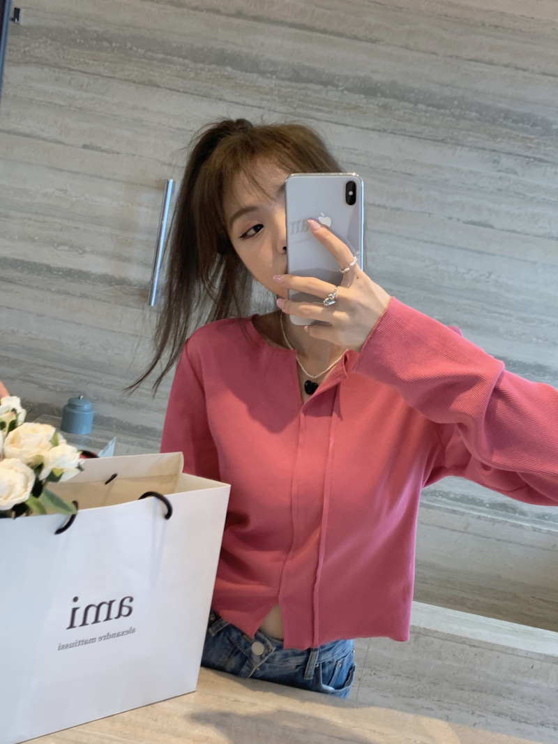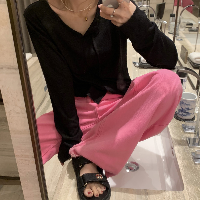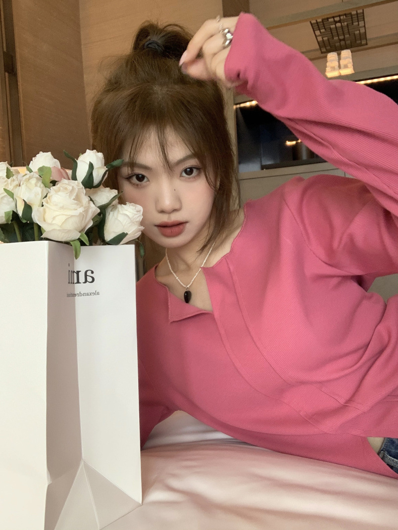 JMA-364 实拍2023秋季新款韩版小V领鱼骨长袖t恤女设计感亲肤休闲小衫上衣