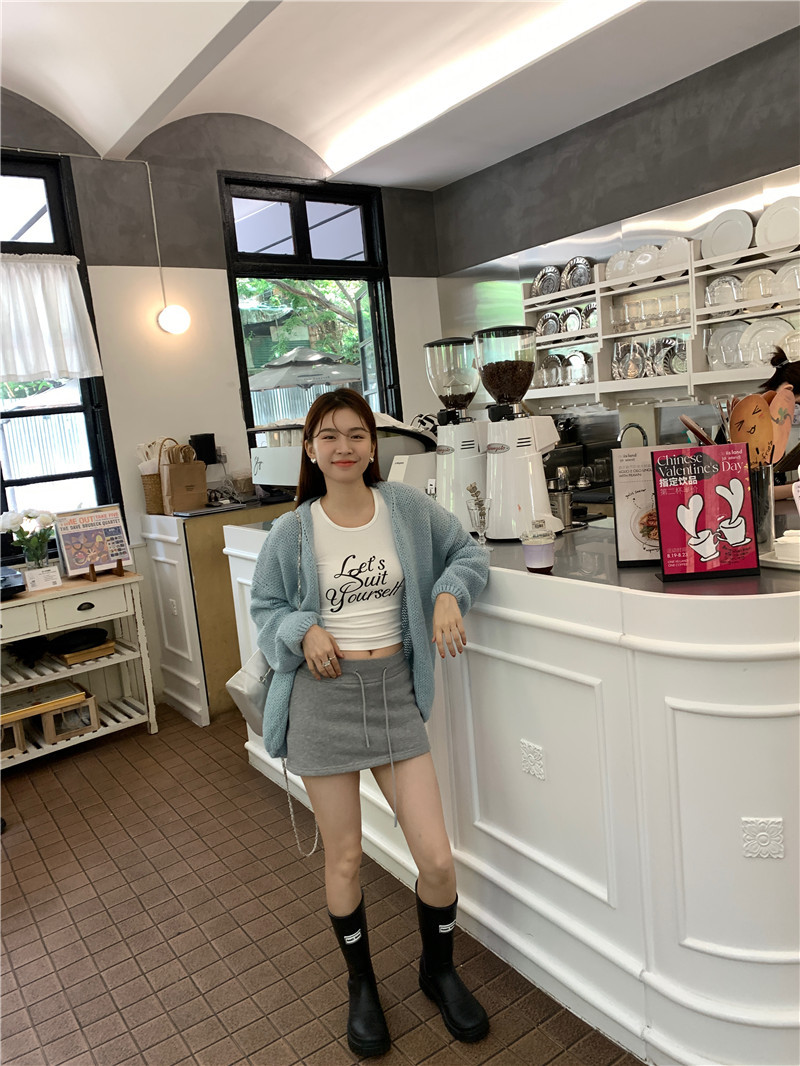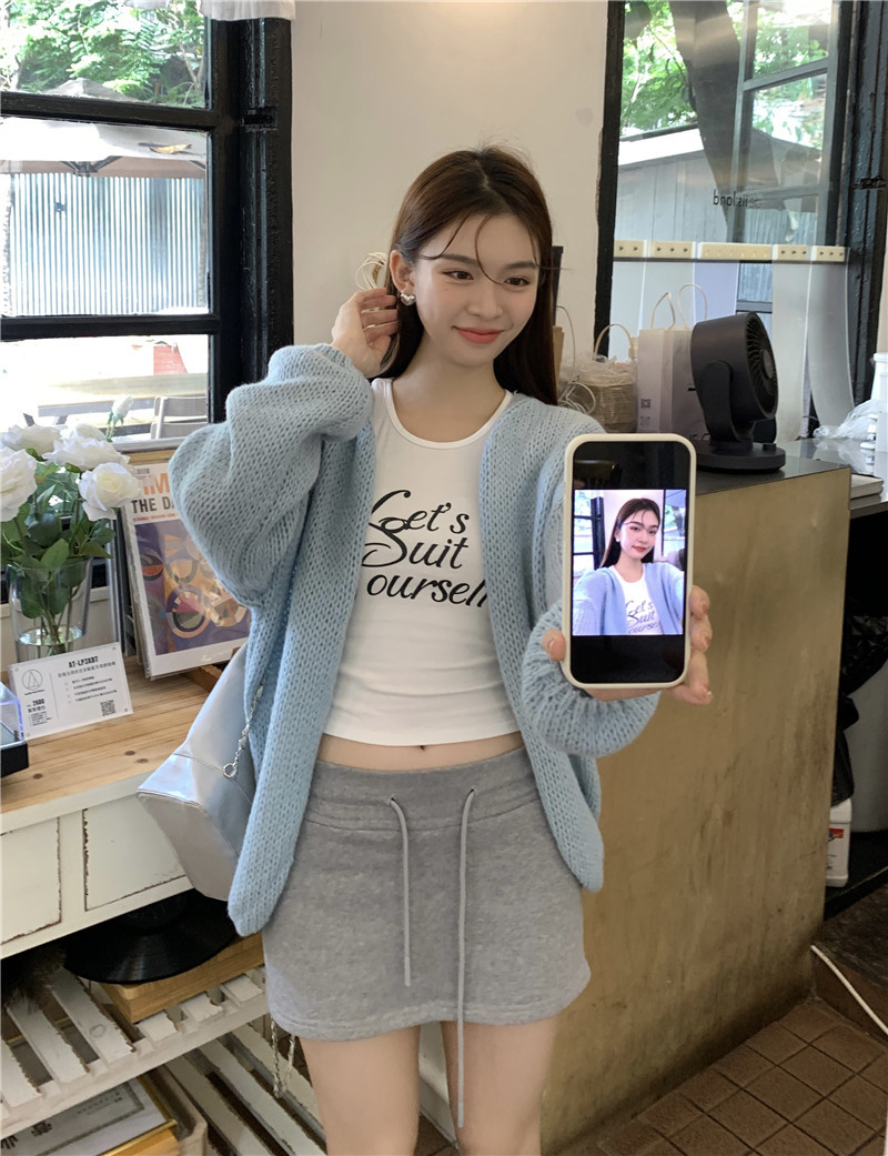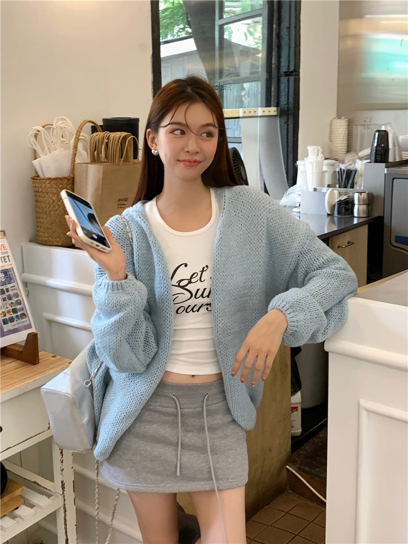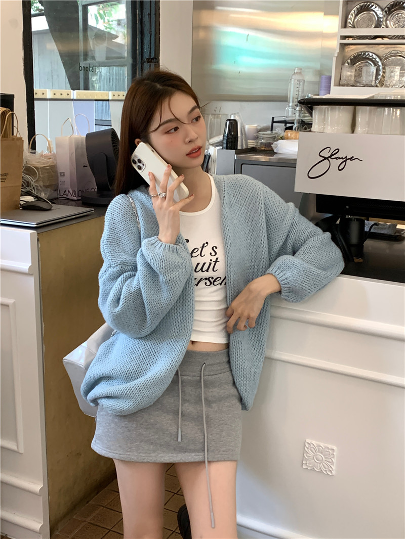 JMA-374 实拍 2023秋冬季新款韩系针织衫开衫软糯毛衣外套+半身裙两件套装