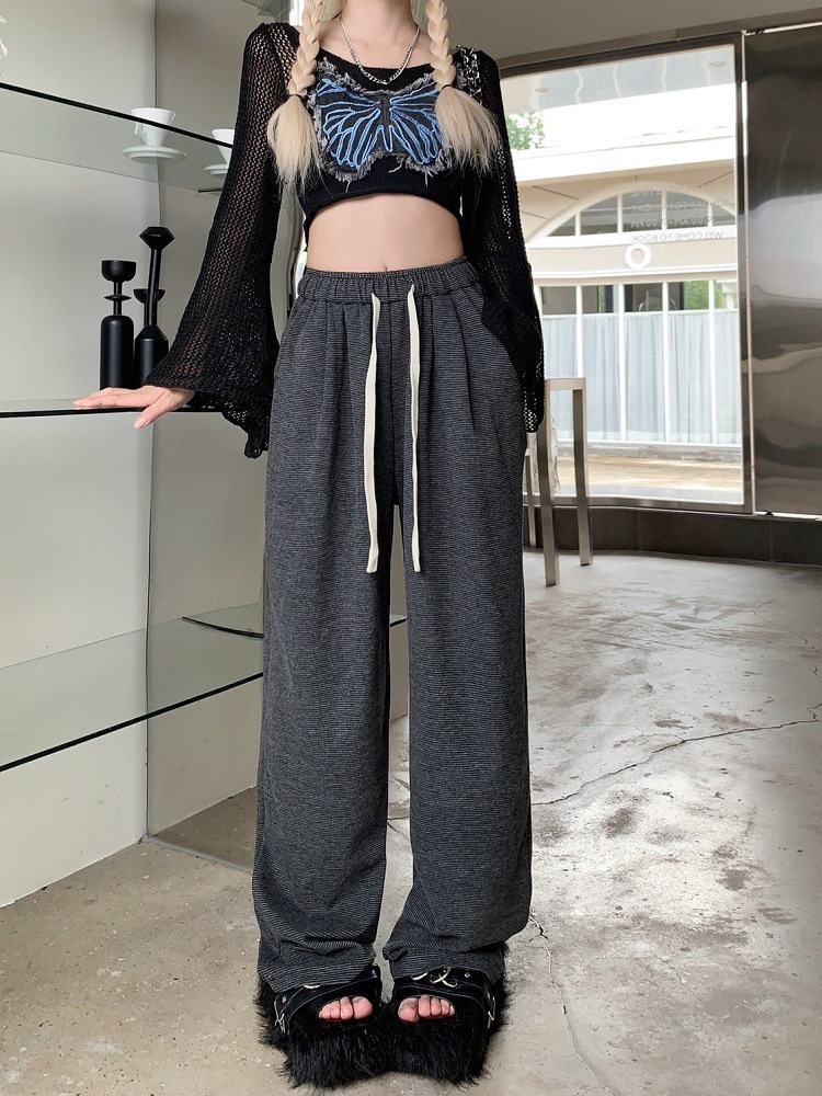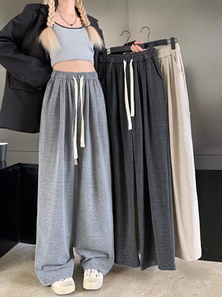 JMA-381 实拍 条纹垂感糯米裤2023秋季宽松显瘦阔腿裤直筒长裤抽绳休闲裤