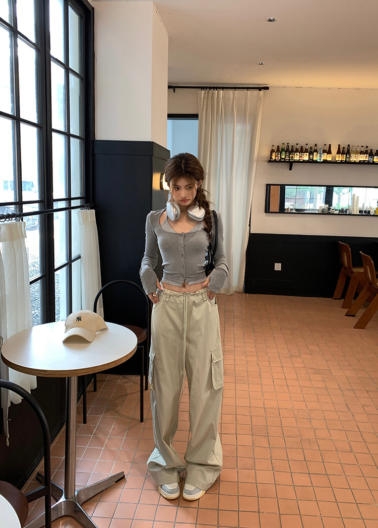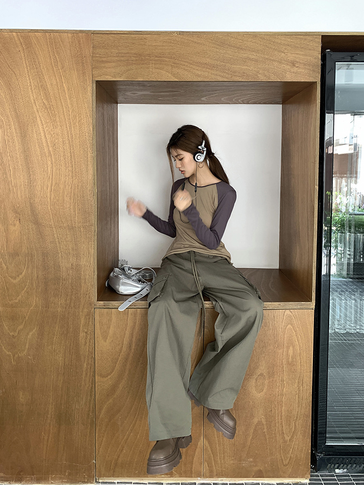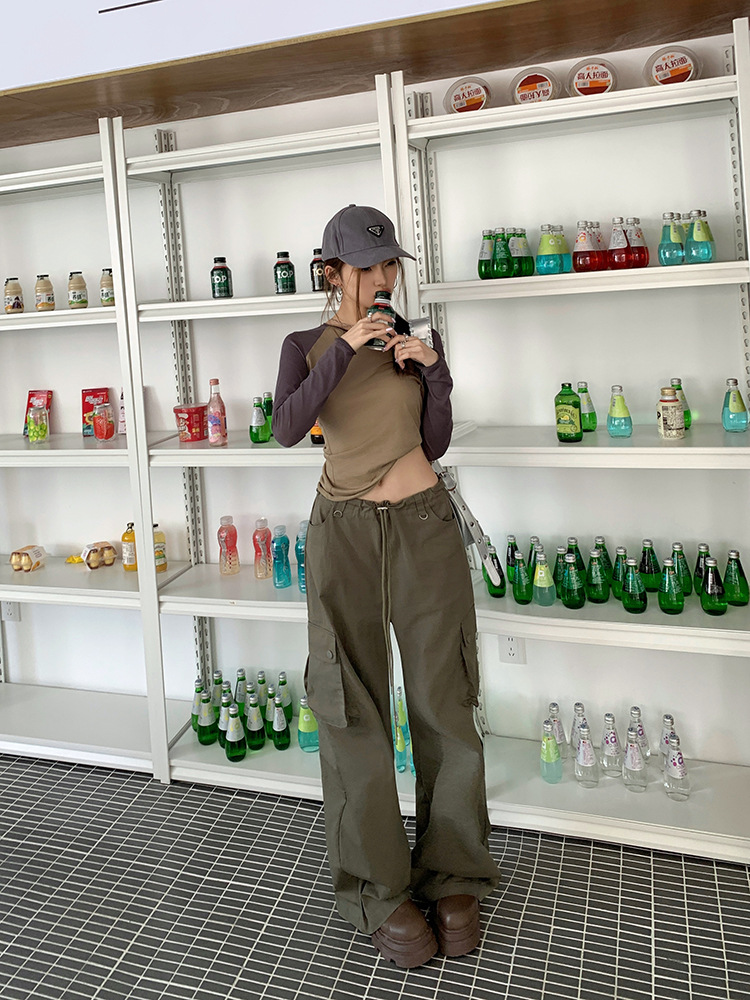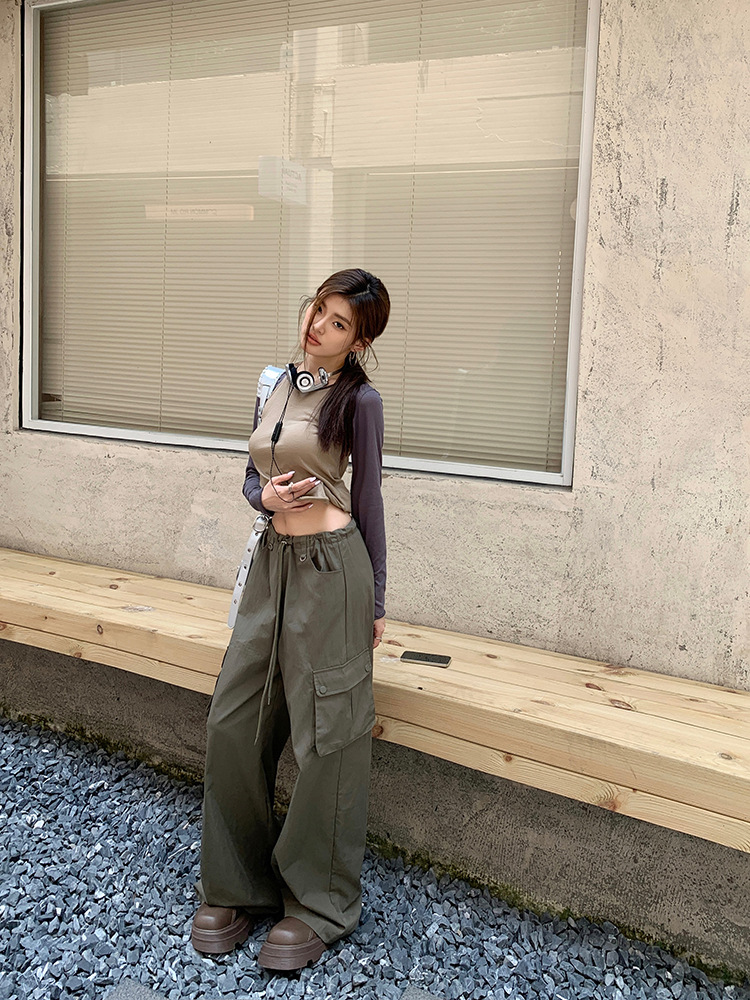 JMA-382 实拍2023秋装新款美式工装裤女复古休闲百搭高腰阔腿裤直筒宽松裤