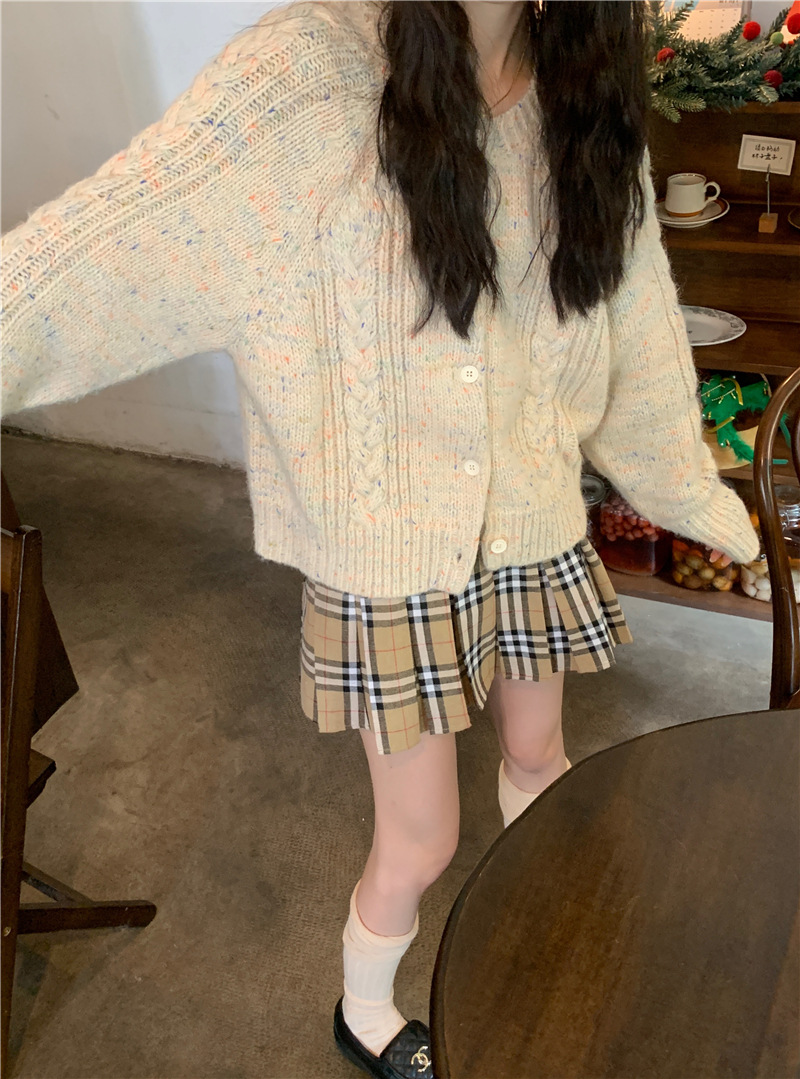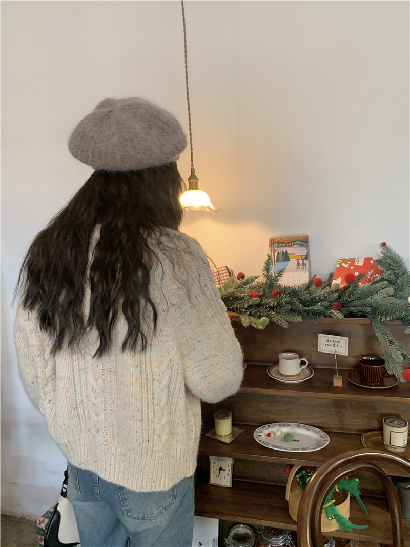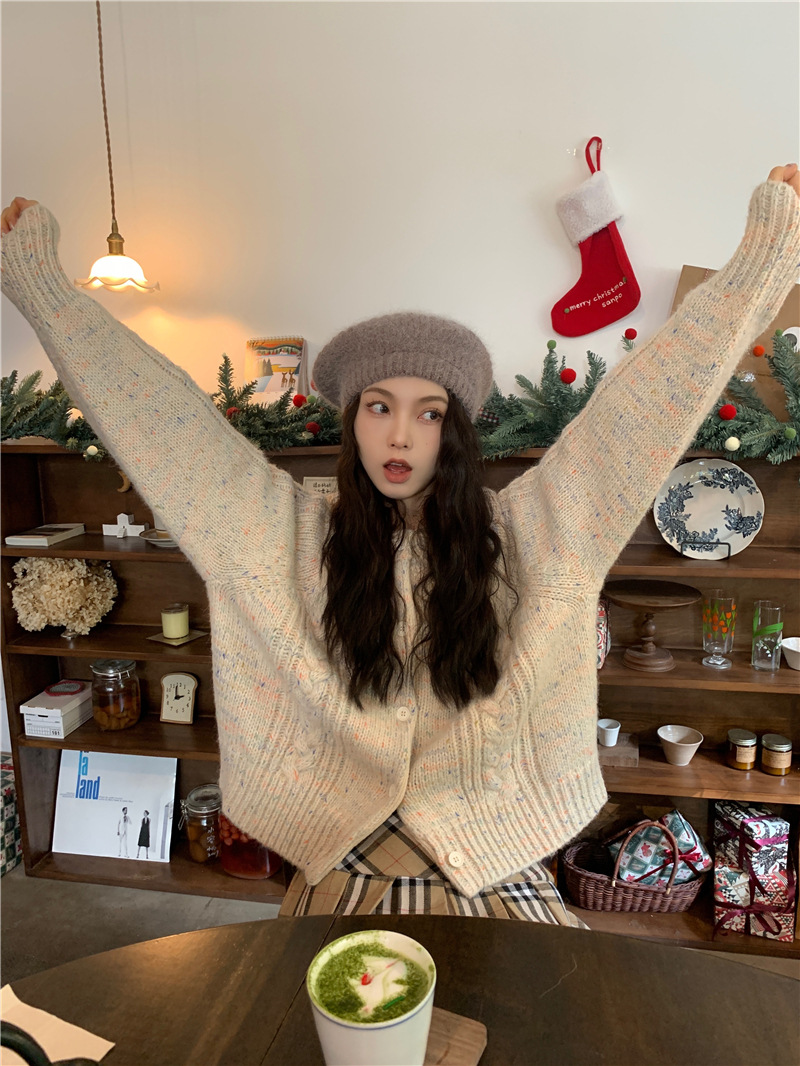 JMA-385 实拍 韩国杂色设计感麻花针织开衫2023秋冬季慵懒风加厚毛衣外套