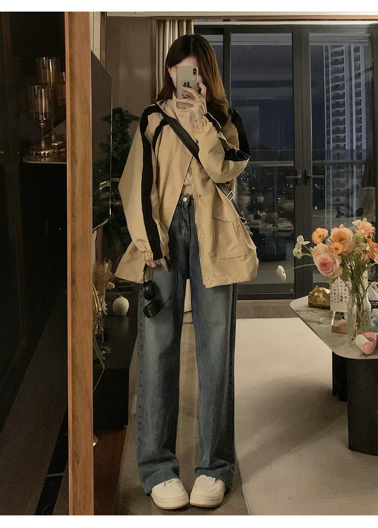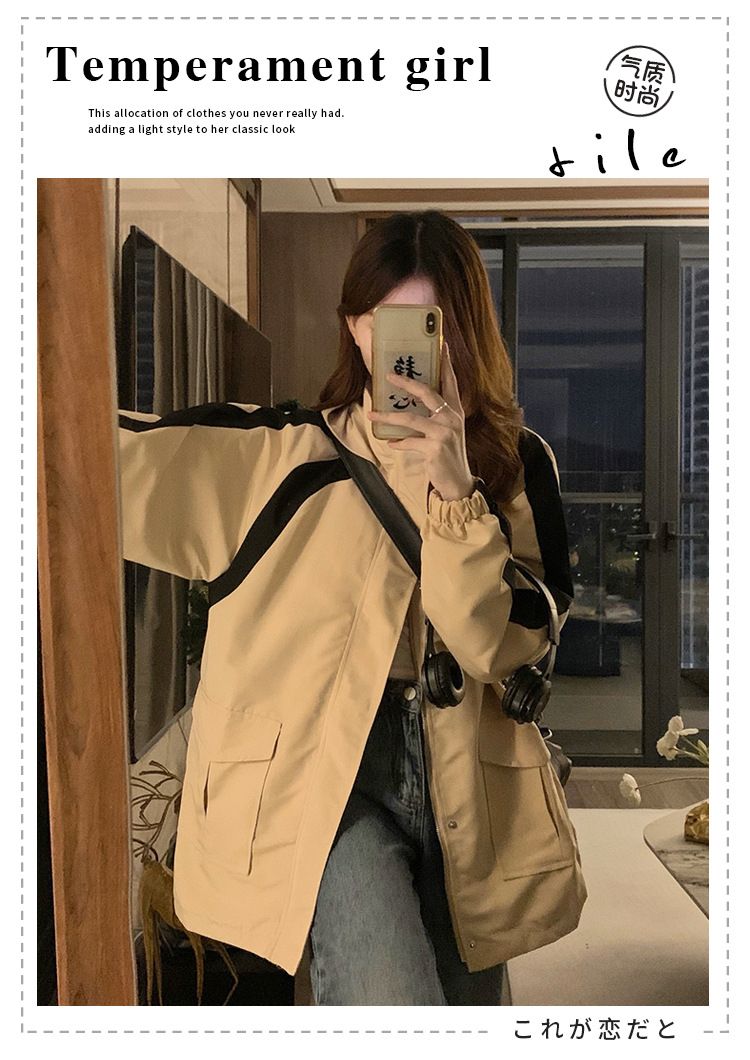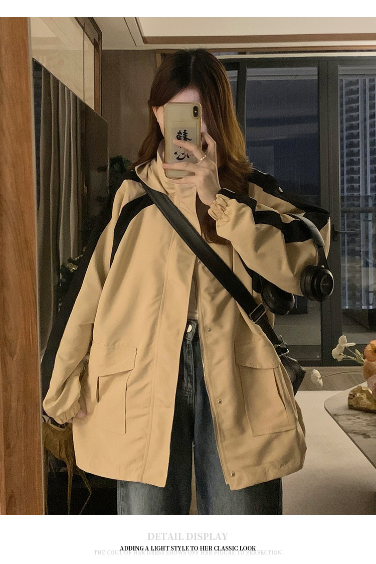 JMA-402 实拍 2023秋季开学季ins韩版宽松bf休闲慵懒风百搭夹克上衣冲风衣