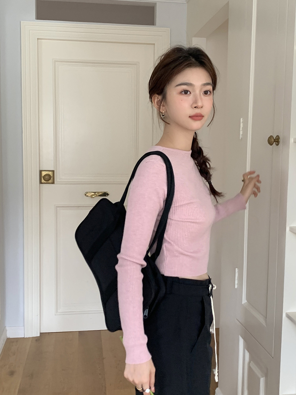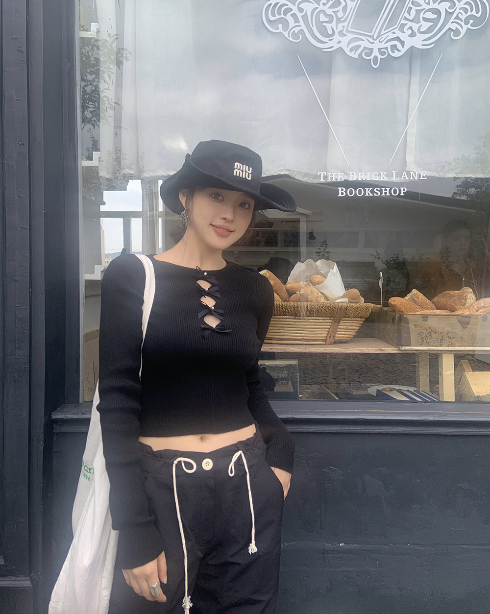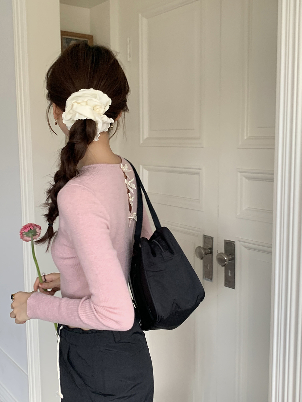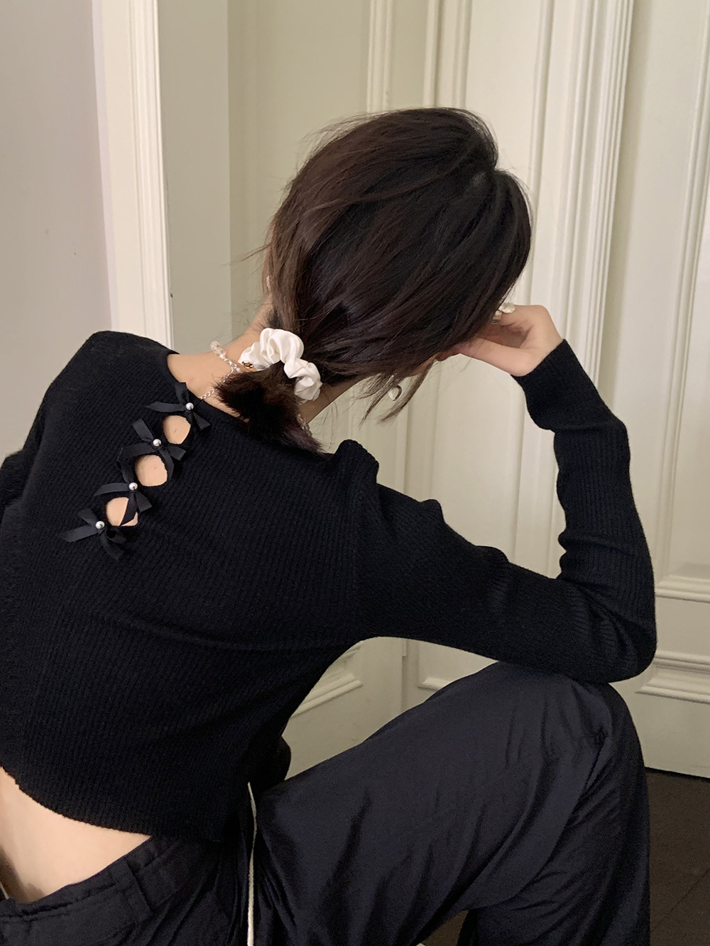 JMA-403 秋季韩版少女心事小众蝴蝶结点缀两面穿修身内搭长袖短款针织衫女