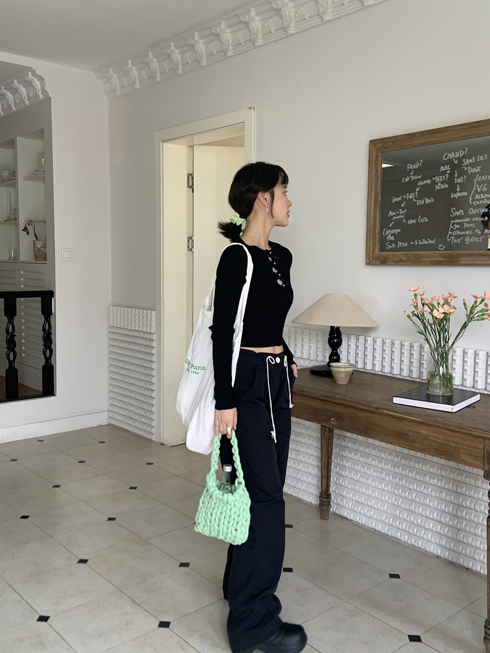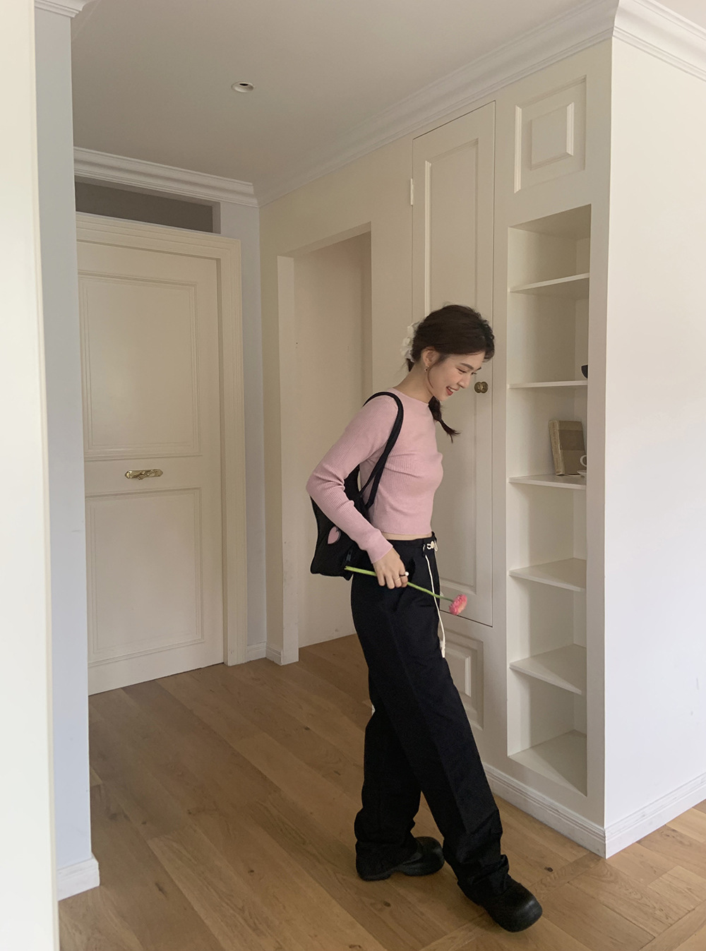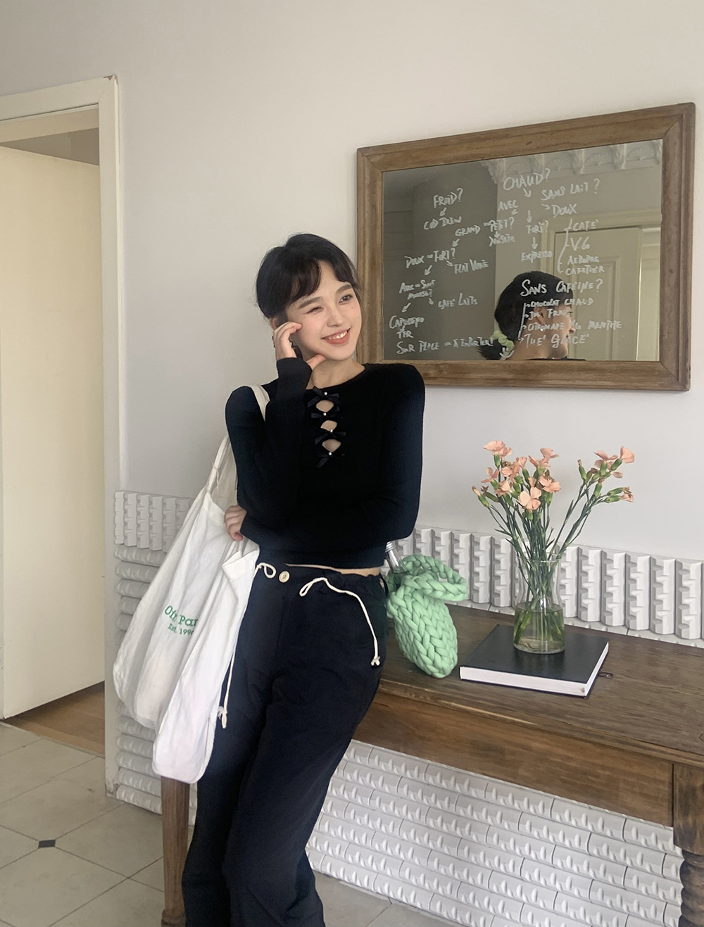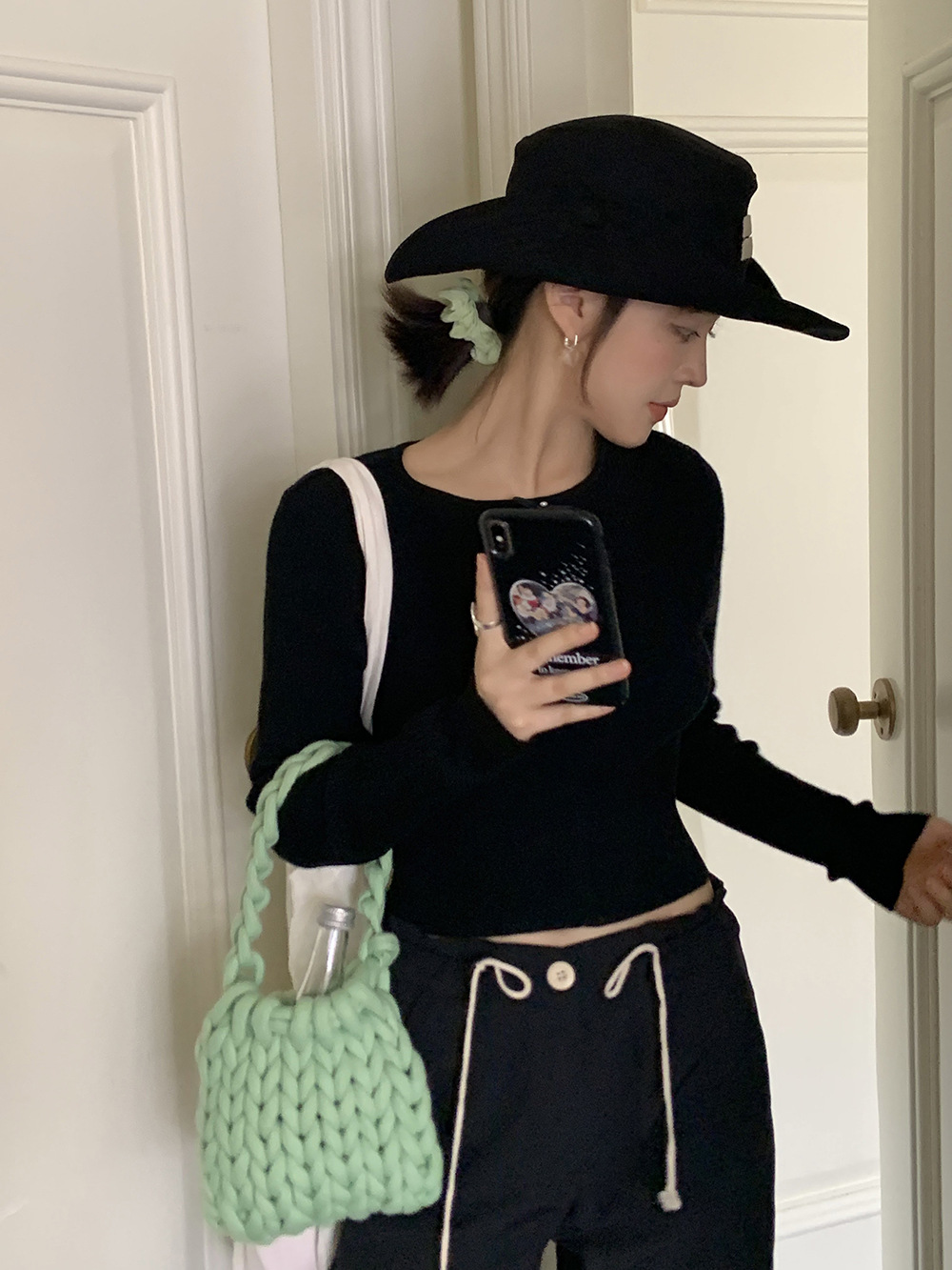 JMA-403 秋季韩版少女心事小众蝴蝶结点缀两面穿修身内搭长袖短款针织衫女