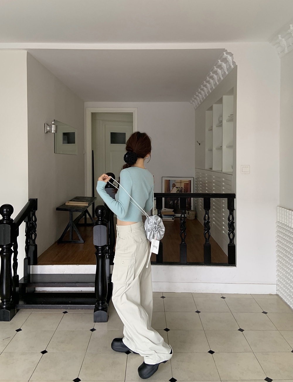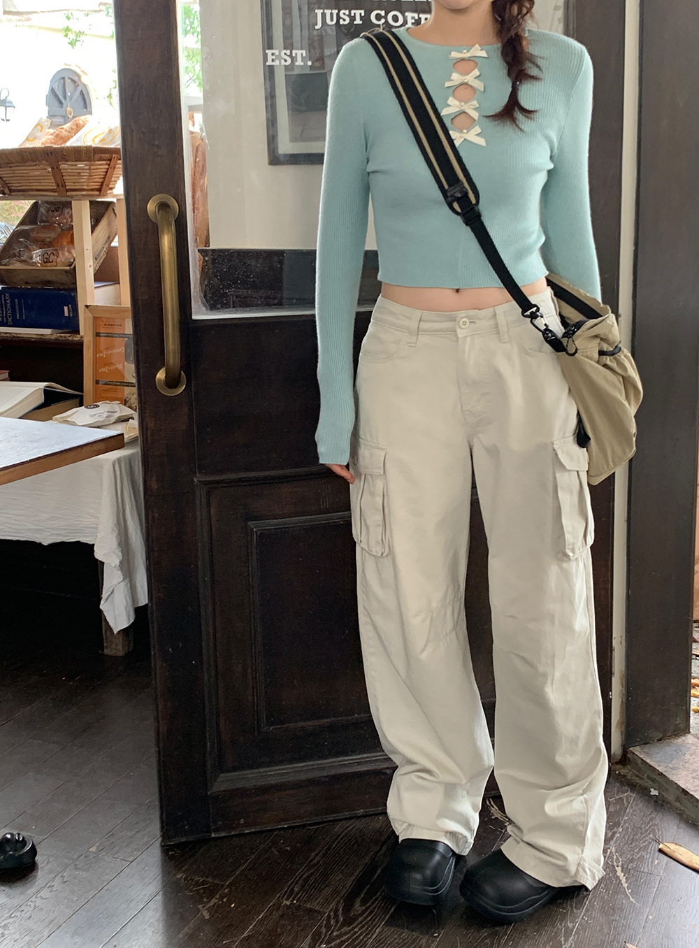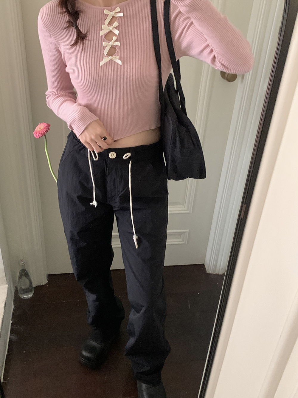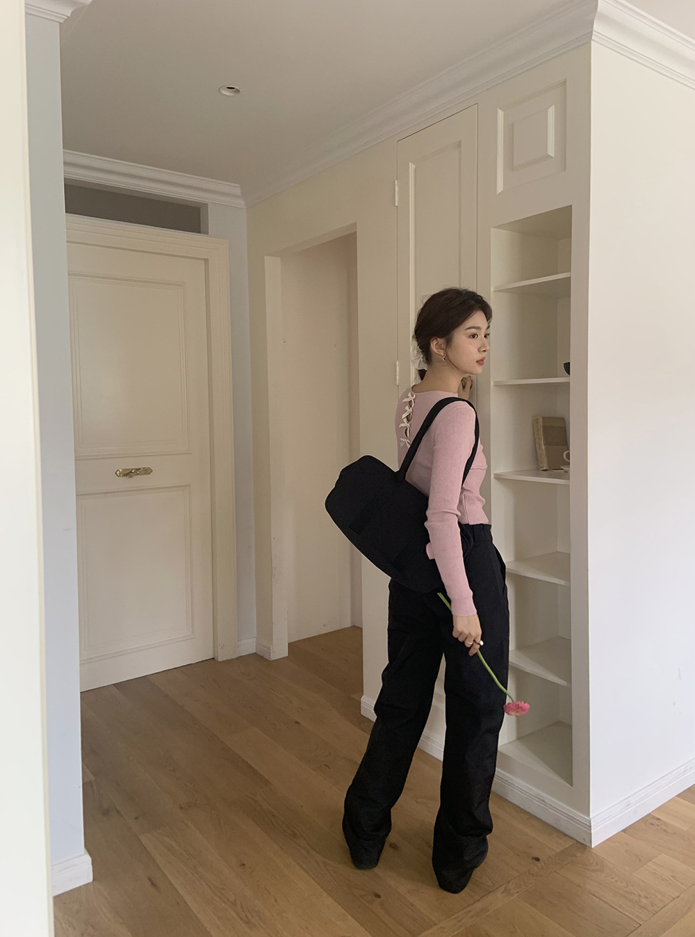 JMA-403 秋季韩版少女心事小众蝴蝶结点缀两面穿修身内搭长袖短款针织衫女
