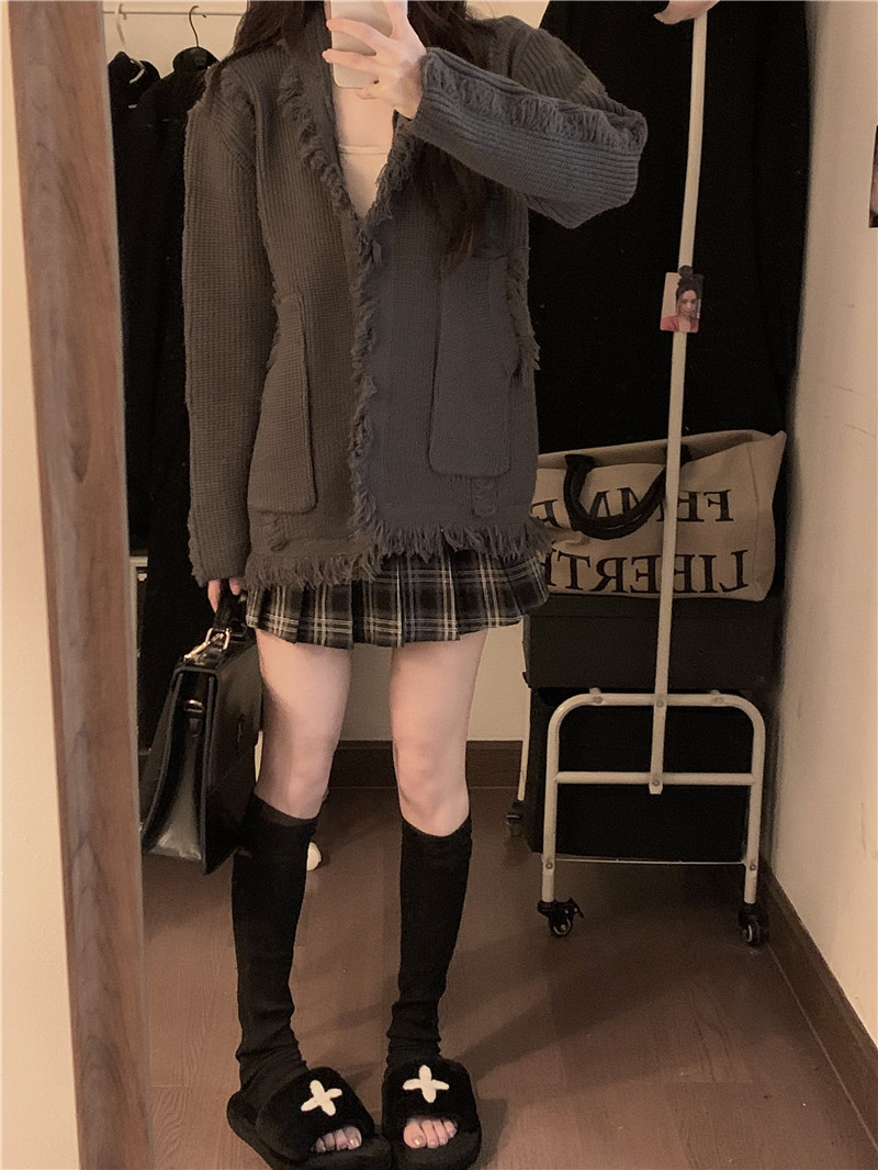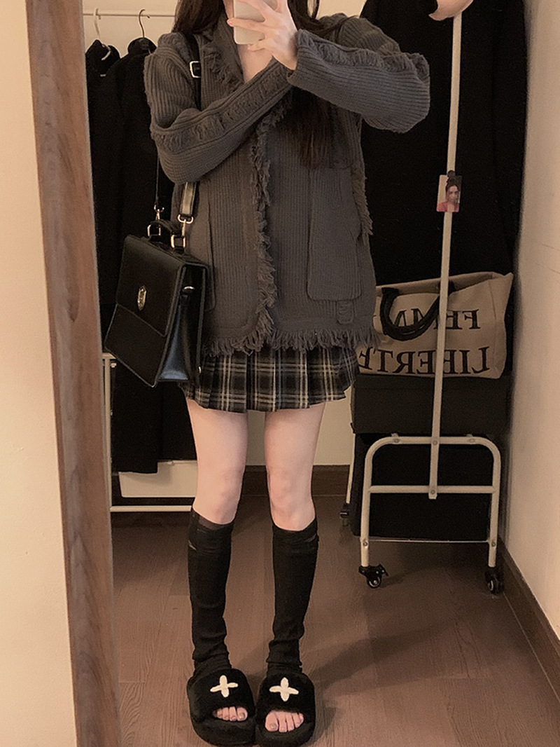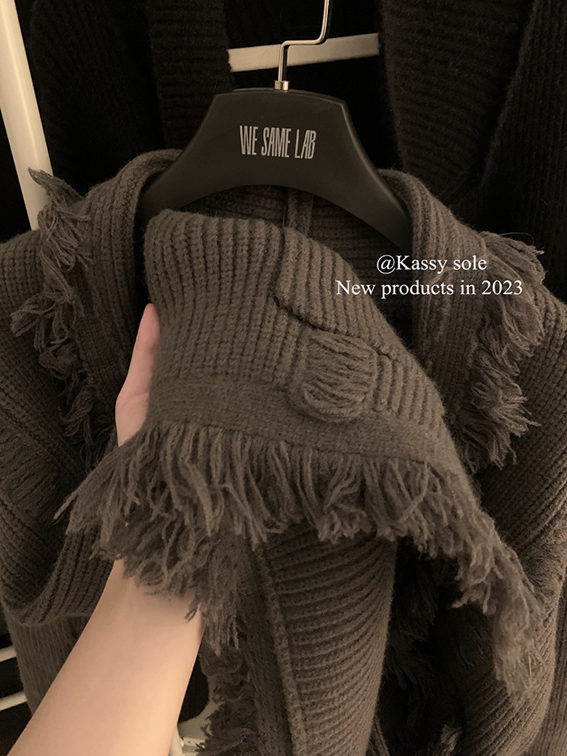 JMA-406 实拍2023秋冬季新款韩版宽松慵懒风设计感流苏针织毛衣开衫外套女