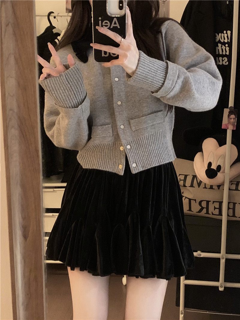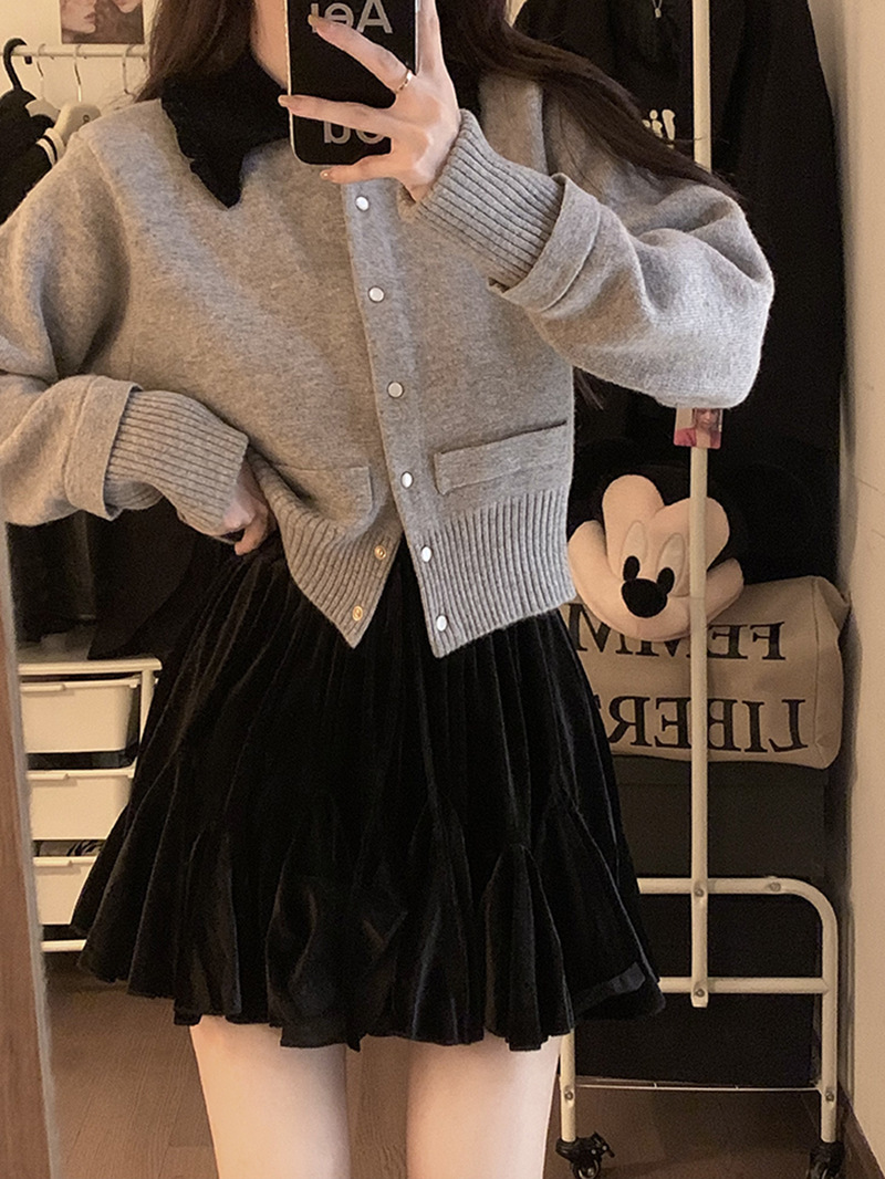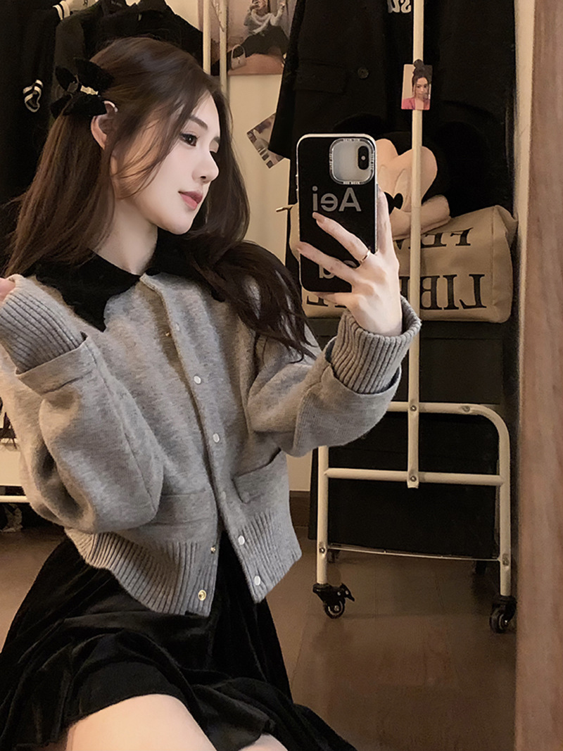 JMA-407 实拍 2023秋冬季新款韩版百搭小香风撞色翻领针织毛衣开衫外套女