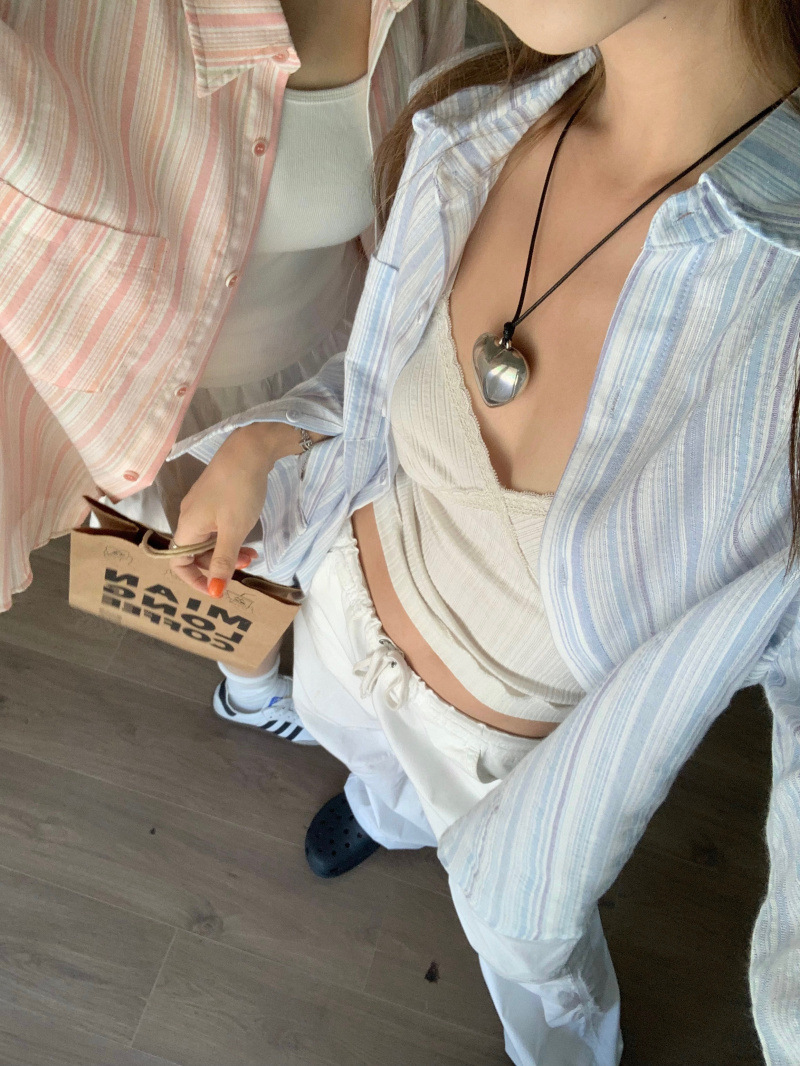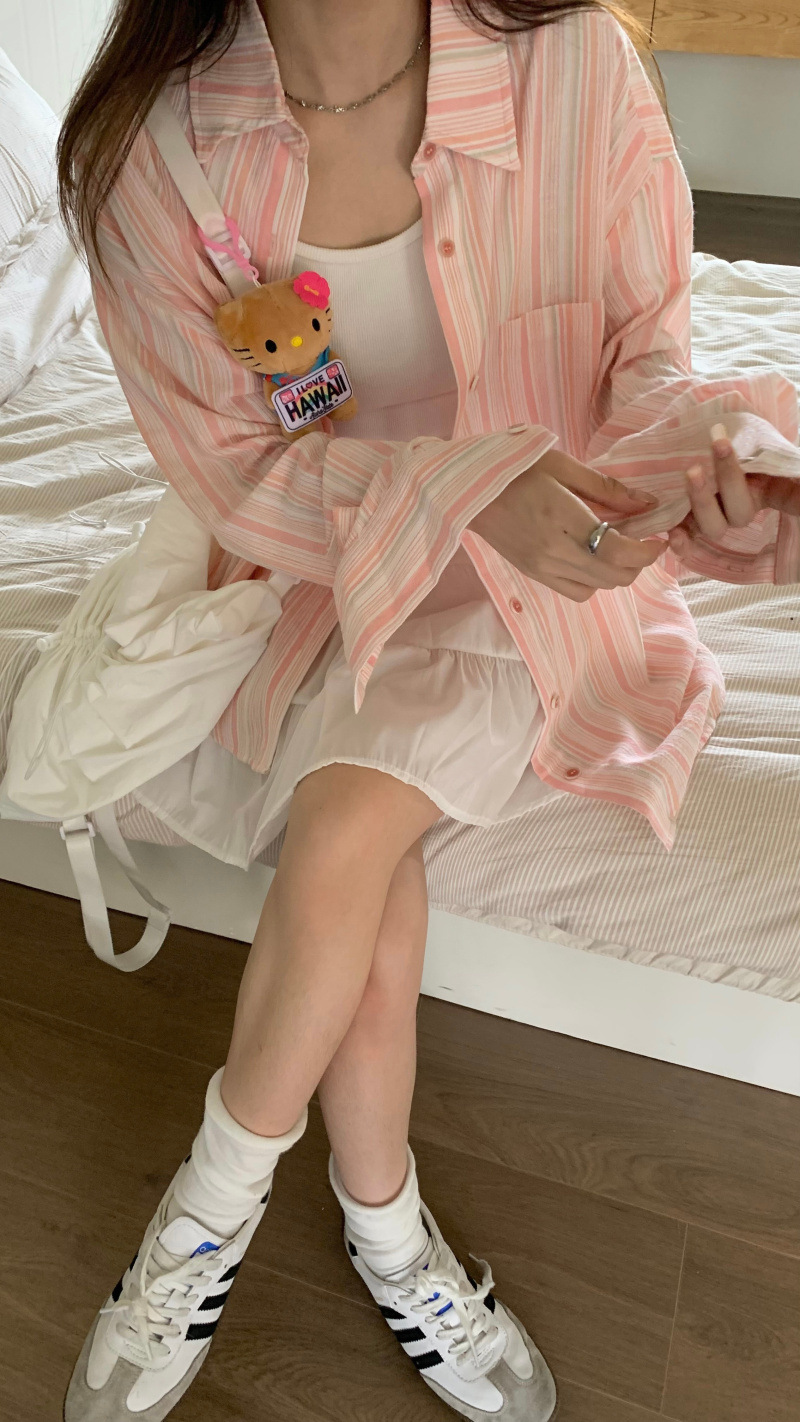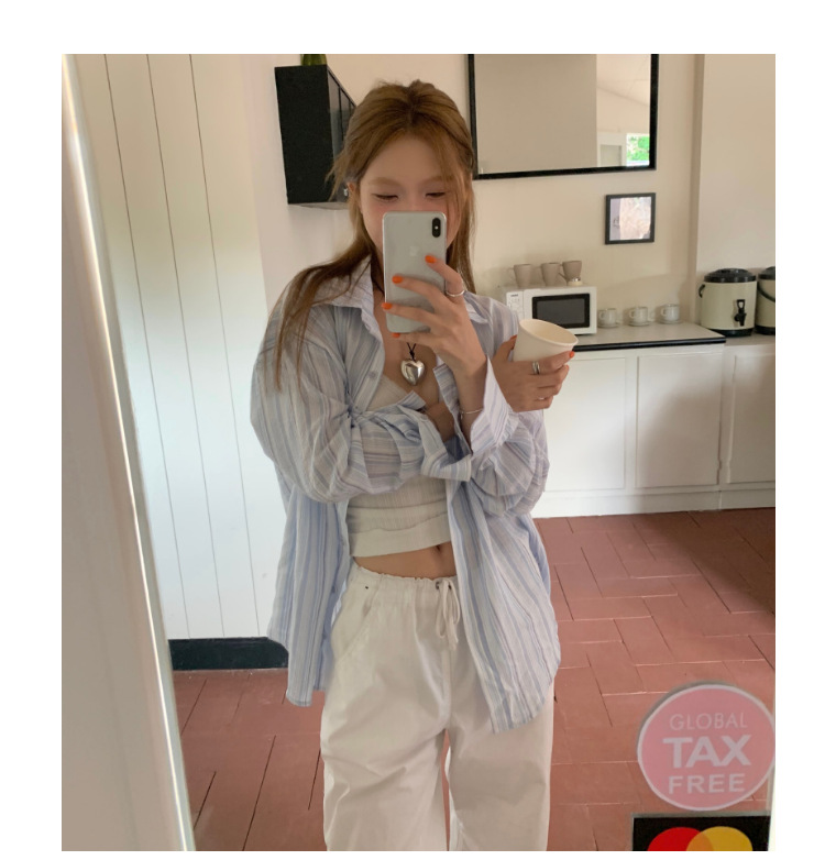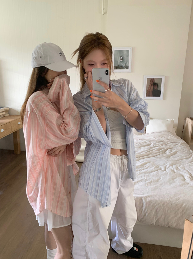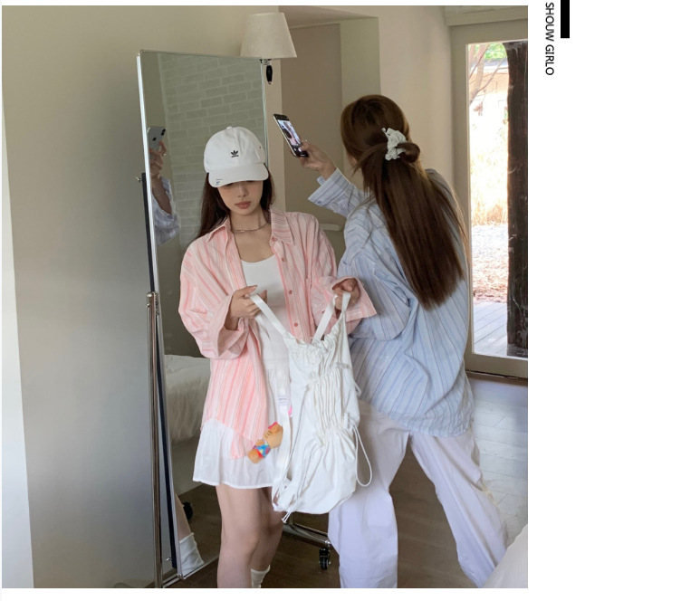 JMA-414 薄款防晒衬衫上衣初秋韩版宽松设计感宽松慵懒长袖条纹休闲衬衣