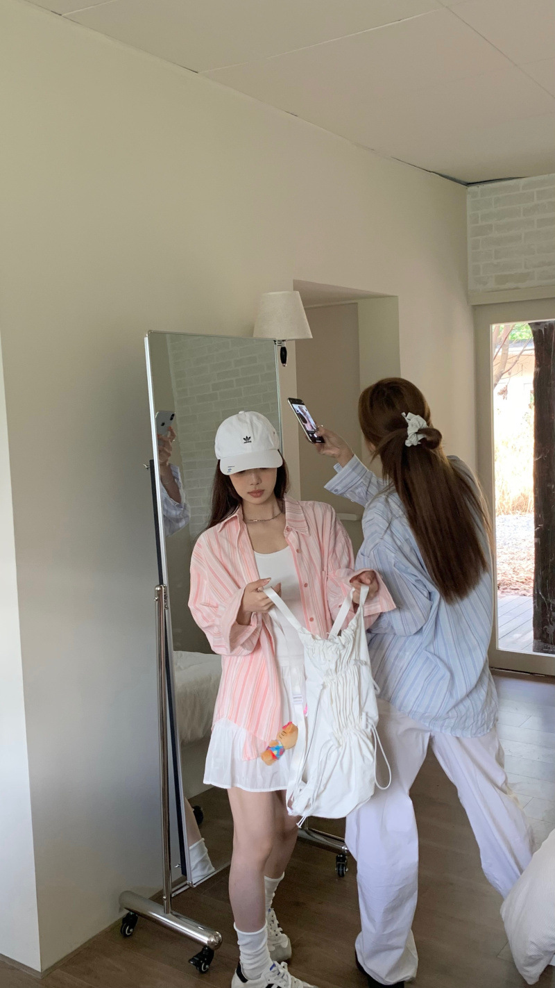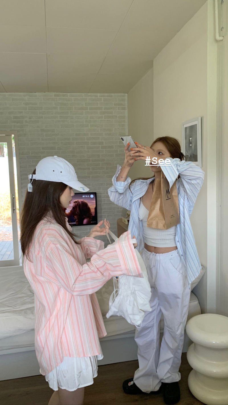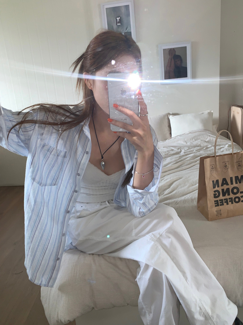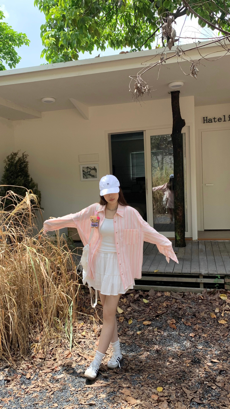 JMA-414 薄款防晒衬衫上衣初秋韩版宽松设计感宽松慵懒长袖条纹休闲衬衣