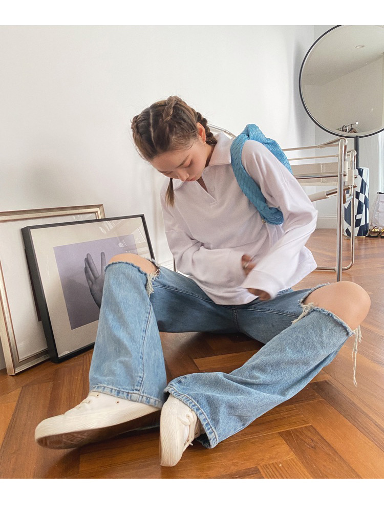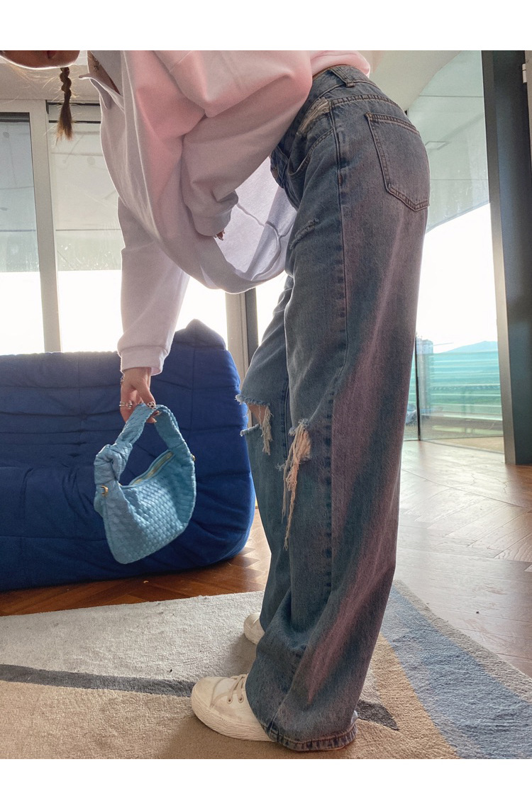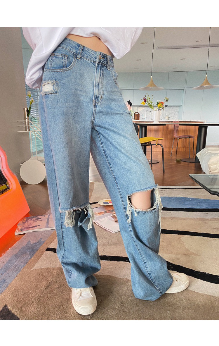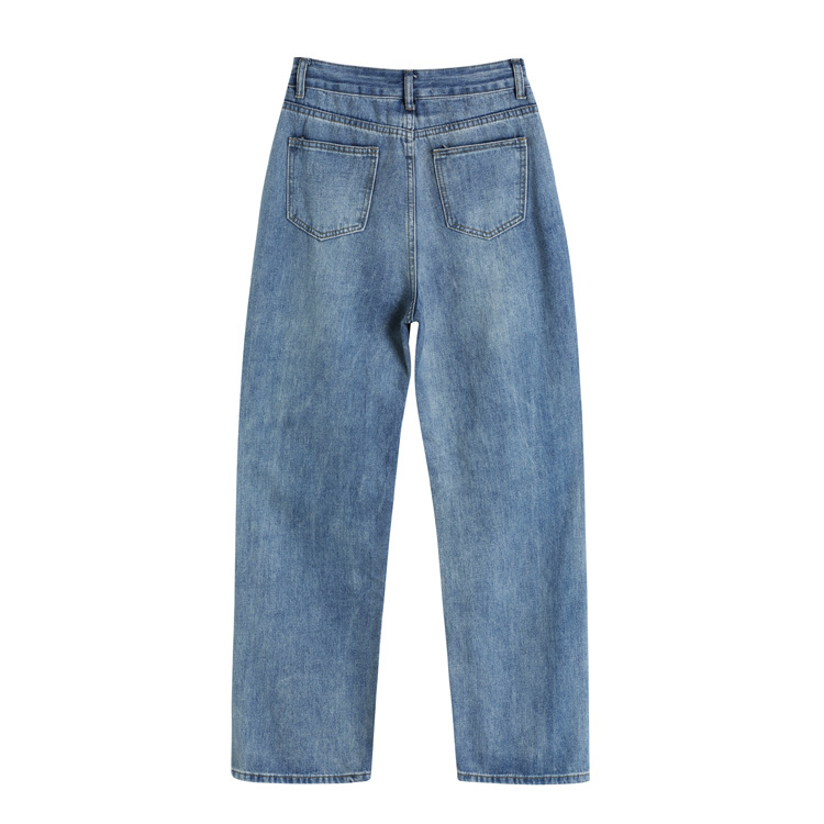 JMA-416 实拍2023秋装新款破洞牛仔裤直筒宽松高腰显瘦阔腿拖地裤老爹裤女